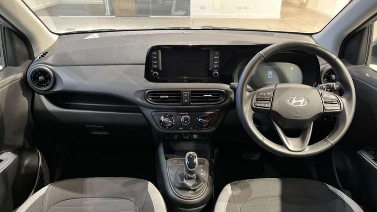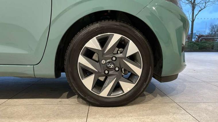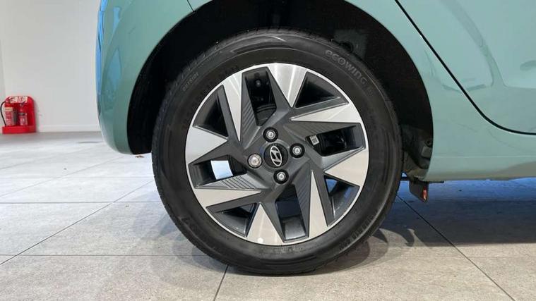 Apple car play/Android Auto, Bluelink mobile remote connectivity, Bluetooth connectivity with voice recognition, Cruise control, Driver attention alert system, eCall emergency call system, Forward Collision-Avoidance Assist (FCA) - Pedestrian/Cyclist, Front USB-C charging and USB-A data, Full-width 4.2" LCD instrument cluster, Intelligent speed limit assist, Lane departure warning system with lane keep assist - LKAS, Lane follow assist, PAS, Rear parking sensors, Rear view camera with guidelines, Roadside assistance, Start/Stop function, Tailgate, Trip computer, 2 front/2 rear speakers, Rear USB-C device charger, Steering wheel audio, phone and cruise controls, 1 speed non intermittent rear windscreen wiper, Black finish on B pillars, Body colour door handles, Body coloured bumpers, Body coloured door mirrors, Electric front windows, Electric rear windows, Electrically adjustable and heated door mirrors, Flat metal emblem, Front grille in matte black, Front intermittent wipers, Halogen daytime running lights, Halogen headlights, Headlights inner with Black Blade design, Heated rear window, High beam assist, Indicator light on door mirrors, Rear roof spoiler with integrated LED brake light, Rear side wing doors, 12v power outlet - front, 3 seat bench in 2nd row, 60/40 split folding flat to floor rear seats, Air conditioning, Auto light control, Bottle holders in front/rear doors + front centre console, Cabin and luggage compartment interior lighting, Cloth upholstery, Driver + passenger vanity mirrors, Driver's seat height adjustment, Driver/passenger sunvisors with ticket holders, Floor mats, Front door pockets, Front Head Restraints - Vertical and Horizontal Adjustment, Glove compartment, Height adjustable steering column, Isofix child seat preparation, Leather multifunction steering wheel, Rear door pockets, Single front passenger seat, Vertical adjustment rear head restraints, 3x3 point rear seatbelts, Airbags - front, front side and curtain airbags, Anti-lock brake system (ABS), Autonomous emergency braking (AEB) with forward collision warning system, Brake assist function, Childproof rear door locks, Electronic stability control, Front and rear seatbelt reminder, Front seatbelt pretensioners, Hill start assist control (HAC), Passenger airbag deactivate switch, Traction control, Tyre pressure monitoring system, Immobiliser, Perimeter alarm, Rear occupant alert, Remote central locking, Second remote key, Speed sensitive auto door locking, 15" Alloy wheels, Tyre repair kit,