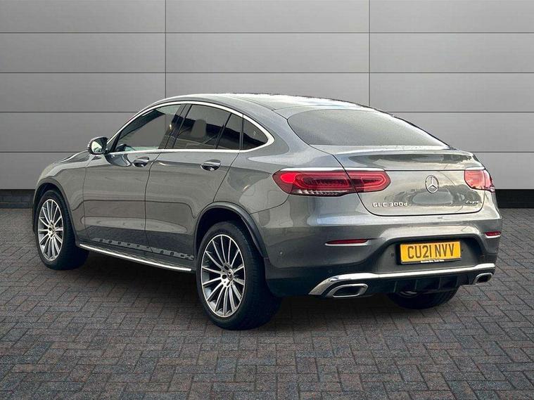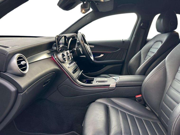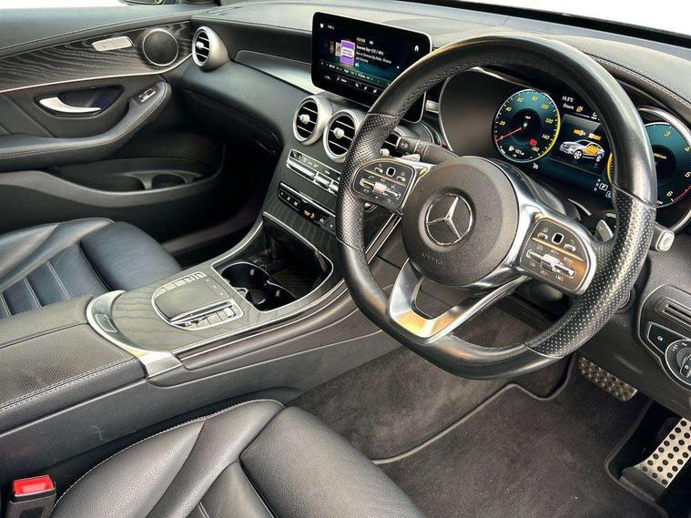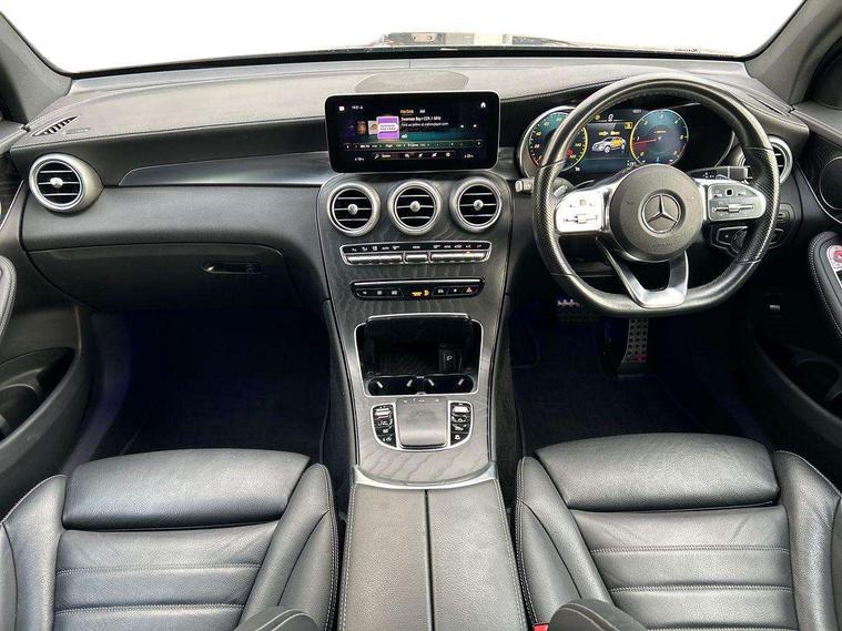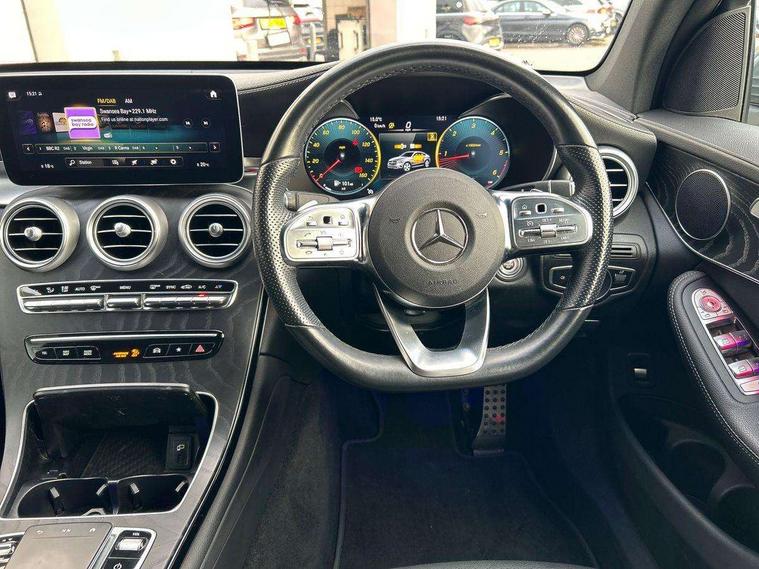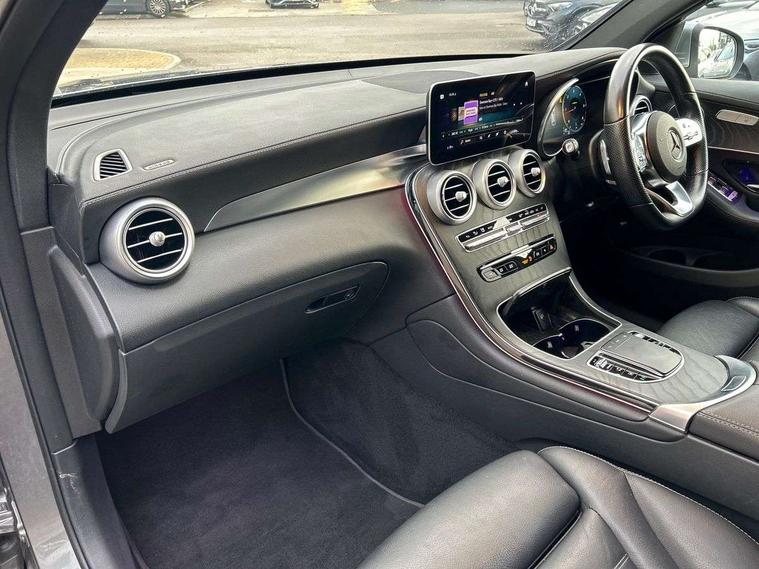 Open pore black ash wood trim, Interior lighting pack - GLC, Mirror pack - GLC, Storage pack - GLC, 20" AMG multi spoke design alloy wheels painted in titanium grey with high sheen finish and tirefit, Alarm system/interior protection/immobiliser, Automatic door locking, KEYLESS-GO starting function, Remote central locking, Hard disk navigation, Media display 10.25-inch touchscreen display, Mercedes benz sound system (225w) includes mid-range sound system, Pre installation for Mercedes Benz Link, USB ports x 2 in centre console, 3 rear 3 point seatbelts, Active bonnet, Adaptive brake system with HOLD function and brake drying in the wet, ASR, Black seat belts, Brake calipers with Mercedes-Benz lettering + perforated brake discs, Child proof door locks, Dual-stage airbags - driver and front passenger, driver knee bag and window bags for driver, front passenger and rear passengers, Electronic parking brake, Electronic stability programme (ESP) with curve dynamic assist and cross wind assist, Front and rear seatbelt reminder, Front passenger seat occupancy sensor, Hill hold function, Tyre pressure monitoring system, Warning triangle and first aid kit, Adaptive brake lights, AMG bodystyling AMG front apron with sporty air intakes and chrome trim element, AMG diffuser-look rear apron with insert in black, Body colour door mirrors, Body coloured bumpers, Electric windows one touch open/close, Electrically adjustable and heated door mirrors, Front, side and rear exterior chrome trim, Headlamp assist automatic headlamp activation, LED tail lamp, Motor way mode function and locator lighting, Multi beam LED headlamps with 84 indiviually control LED, daytime running lamps, Active Light, cornering light, enhanced fog lamp, adaptive Highbeam Assist, Privacy glass with dark glass from B pillar backwards, Radiator diamond grille, Rain sensor windscreen wipers, Range adjustable headlights, Rear wiper, Running boards, Tinted glass all round with single layer safety glass, Two chrome plated tailpipe trim elements, 2 way rear head restraints, 3-spoke multifunction sport AMG steering wheel in black nappa leather with flattened bottom section, chrome insert and perforated leather in grip area, 40:20:40 split folding rear seats, Ambient lighting, AMG floor mats with edging and embroidered AMG lettering, AMG sports seats, Artico man-made leather upper dashboard with contrast topstitching, Automatic child seat recognition sensor, Black roof lining, Dividing net - rear, Double cup holder in centre console, Easy-pack removable load compartment cover, Front armrest with storage box, Front door sills with Mercedes benz lettering, Front head restraints, Front seats with electric adjust (backrest, height and seat cushion inclination) with 4 way electric lumbar support and manual cushion depth adjust, Heated front seats, Height/reach adjustable steering column, Illuminated and lockable glove compartment, Leather upholstery, Rear top tether child seat ISOFIX attachment, Sports pedals with stainless steel surfaces and rubber studs, Steering wheel with touch control buttons, THERMOTRONIC 3 zone automatic climate control, Attention assist, Bluetooth interface for hands free telephone, Collision prevention assist plus, Cruise control with speedtronic variable speed limiter, Direct steer speed sensitive steering, DYNAMIC SELECT with a choice of driving modes (ECO, Comfort, Sport, Sport+ and Individual), Easy pack automatic powered tailgate, ECO start/stop function, Hey Mercedes Voice activation, Instrument cluster with12.3-inch digital instrument cluster display. High esolution instrument cluster screen with choice of three display styles, MBUX augmented reality for navigation, MBUX Interior assistant, MBUX multimedia system with DAB digital radio and touchpad including satellite navigation, Mercedes connect me with remote online services, Multi function trip computer, Outside temperature display, rear seatbelt status indicator, Parktronic system with rear cross traffic alert and drive away assist, Remote boot release, Reversing camera, Service indicator (ASSYST), Smartphone integration with Apple CarPlay and Android auto, Traffic sign assist, Wireless charging, 4MATIC permanent four wheel drive, 66 litre fuel tank, 9G TRONIC plus automatic transmission with steering column gear selector, DIRECT SELECT steering wheel gearshift paddles, Diesel particulate filter, Sports suspension tuned for improved handling and driving dynamics,