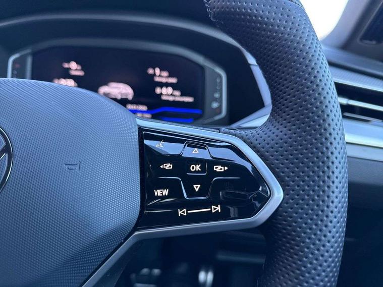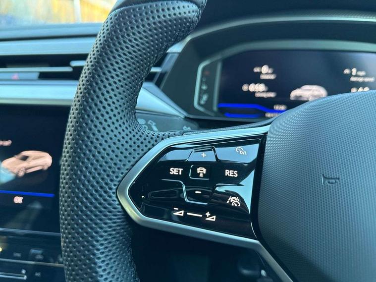 Adaptive cruise control (ACC) with speed limiter, front assist (reacting vehicles pedestrian and cyclists) and follow to stop, App connect including wireless Apple CarPlay, Camera for warning system, Digital cockpit with 10.25" high resolution TFT display screen with customisable menus and information, Driver alert system with fatigue detection, Driver profile selection including ECO function, Dynamic road sign display, eCall - Emergency call service for SOS calls to emergency response, Emergency assist, Hands free boot opening, Press and drive key, Progressive steering, Speedo and rev counter, electronic odometer, trip, service interval display and exterior temperature gauge, Travel assist - Lane keeping assist and traffic jam assist, Voice activation for telephone and navigation, Start/stop function with battery regeneration, Premium USB cable in choice of either Apple or Android smartphone compatibility, Auto dimming interior rear view mirror, Automatic headlights, Body colour door handles, Body colour side skirt, Body coloured top and matt black lower door mirrors with integrated indicators, Chrome plated radiator grille inserts and light switch surrounds, Chrome side window surrounds, Dynamic headlight range control, Electric folding door mirror, adjustable, heated with front passenger exterior mirror lowering function, Front and rear electric windows, Front and rear stainless steel door sill protection, Front windscreen washers and wipers with 4x interval delay, Heat insulating side and rear windows, Heated rear windscreen, Heated windscreen washer jets, High level 3rd brake light, LED rear combination lamp with dynamic indicators, LED rear number plate lights, Panoramic sunroof with tilting and sliding including integrated roller blind, R Line design body coloured bumpers, Rain sensor, Rear fog lamp on one side and reversing lamp on both sides, Rear side wing doors, Rear tinted glass from B pillar backwards, approx 65% tinted, Rear windscreen washer and wiper with interval delay, Tailpipes behind rear bumper, 12V socket in front centre console, 12V socket on rear of front centre armrest, 3 rear head restraints, 3 seat bench in 2nd row, 30 colours interior ambient lighting, 60:40 split folding rear seat backrests with centre armrest, Air care climatronic 3 Zone electronic air conditioning with automatic air recirculation, Black roof lining, Chrome trim on upper and lower air vents extending across cockpit, Driver and front passenger sunvisor with vanity mirror, Front + rear carpet mats, Front cupholders x 2, Front footwell illumination, Front sports comfort seats, Glovebox, Heated front seats, Height/reach adjust steering wheel, Isofix child seat preparation easy fit for two outer rear seats, Luggage compartment lighting, Removable luggage compartment cover, Single front passenger seat, Split folding front seat backrest with front centre armrest, Stainless steel pedals, Two LED front reading light, 3 rear three point seatbelts, ABS+EBD+Brake assist, Child locks on rear doors, Driver airbag and front passenger airbags with deactivation switch including driver knee airbags, Electronic parking brake, Electronic stability control (ESC) and Electromechanical brake booster, Front disc brakes, Front side airbags with curtain airbags, Hill start assist, Pro active occupant protection to detect critical situations with elevated accident potential from the front, Rear disc brakes, Three point height adjust front seatbelts + pretensioners, Two tone horn, Tyre pressure loss indicator, Warning buzzer for seatbelts if unfastened, Warning triangle, Alarm with interior protection with deactivation via infotainment system, Electronic engine immobiliser, Keyless entry system including start/stop button on centre console, Aluminium decorative inserts, Chrome trim on lower doors in front and rear, Leatherette insert on door and side trim panel in foam film, Piano black decorative inserts in centre console,