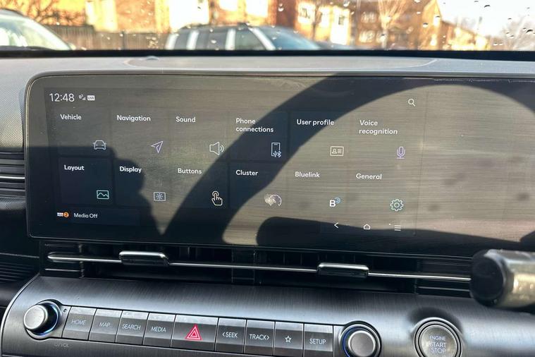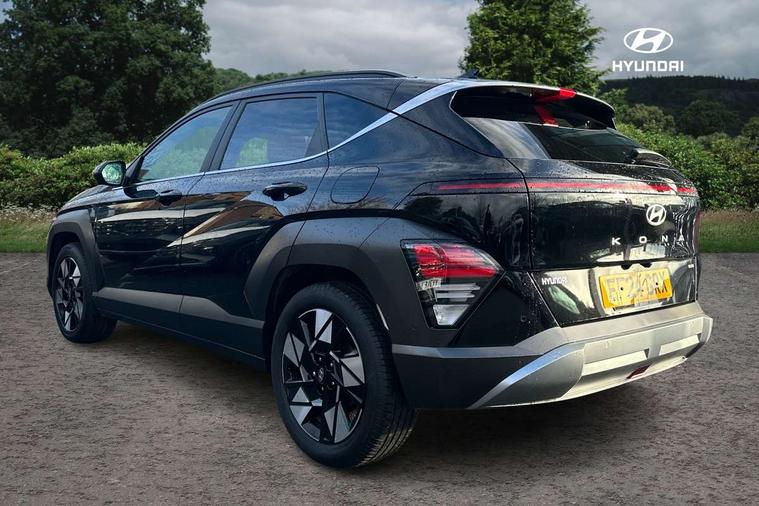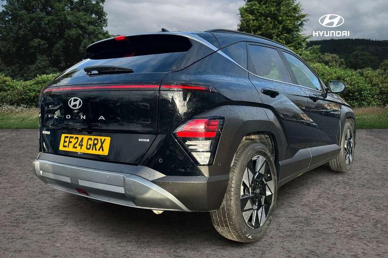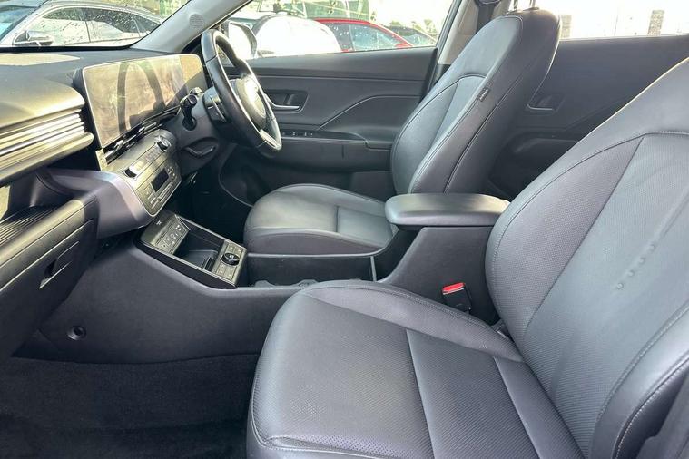 12.3" touchscreen centre console display satellite navigation with bluelink, live services and mapcare, Blind spot collision avoidance assist, Blind spot view monitor, Bluetooth connectivity with voice recognition, Digital clock, Driver status monitor (DSM), Driver supervision instrument cluster with 12.3" LCD display, eCall emergency call system, Feature on demand - Enabled, Forward collision avoidance assist (FCA 1.5) - Car, pededstrian, cycle and junction turning, Front parking sensor, HDA - Highway Drive Assist Level 1.5, Height adjustable power tailgate, Intelligent speed limit assist, Lane follow assist, Lane keep assist, Leading vehicle departure alert (LVDA), Parking Collision Avoidance Assist-Reverse (PCA-R), Parking distance warning - side, Parking system with rear camera and guidance system, PAS, Rear cross traffic collision avoidance (RCCA), Rear parking sensor, Roadside assistance, Safe exit warning (SEW), Smart cruise control with stop and go functionality, Surround view monitor, Windscreen washer fluid sensor and warning indicator, Wireless phone charging pad, Wireless Smartphone Integration includes Apple CarPlay and Android auto, 2 front USB C and 2 rear USB C charging points, Bose Premium Audio system with 7 premium speakers + subwoofer, DAB Digital radio, Steering wheel audio, phone and cruise controls, Auto dimming rear view mirror, Automatic headlights with dusk sensor, Automatic windscreen wipers with rain sensor, Black painted wheel arch inserts, Body colour bumpers, Body colour exterior door handles, Body coloured door mirrors, Door mirror LED indicator lights, Electric front windows with anti-trap mechanism and one touch control, Electric rear windows, Electric sunroof, Electrically adjustable and heated door mirrors, Horizon centre LED DRL, LED projector headlights, LED upper and lower rear lights, Power folding door mirrors, Privacy glass - Rear windows and tailgate, Rear roof spoiler with integrated LED brake light, Rear side wing doors, Rear skid plate - silver, Rear wiper, Roof rails, Solar glass with front door glass and windscreen, Tinted glass in front and rear doors, Windscreen auto defog function, 12V power outlet in front console, 2 zone climate control, 3 seat bench in 2nd row, 40/20/40 split folding rear seat, Adjustable head restraints, Ambient lighting, Driver and passenger front seat pockets, Driver's seat electric adjustments, Driver's seat lumbar support, Driver/passenger sunvisors and illuminated vanity mirrors, Floor mats, Front passenger's seat electric adjustments, Heated front seats, Heated rear seats, Heated steering wheel, Height/reach adjustable steering column, Isofix rear child seat fastenings, Leather upholstery, Leather wrapped steering wheel, LED centre interior light, LED front interior light, Luggage compartment LED lighting, Luggage net, Luggage shelf, Metal paint effect interior door handles, Parcel shelf, Rear centre armrest with cupholders, Rear centre console with air vents, Shift by wire SBW, Single front passenger seat, Ventilated front seats, Vertical adjustment rear head restraints, Trailer wiring package - Kona, Airbag - front, front side, curtain and centre front airbag, Anti-lock brake system (ABS), Childproof rear door locks, Downhill brake control, EBD + Brake Assist, Electric parking brake, Electronic stability control, Fasten seatbelt reminder, Fixed 3 point for second row centre passenger seatbelt, Front seatbelt pretensioners, Height adjustable front seatbelts, Hill start assist control (HAC), Passenger airbag deactivate switch, Rear seat alert, Traction control, Tyre pressure monitoring system, Alarm/immobiliser, Deadlocks, Folding key, Locking wheel nuts, Rear occupant alert, Remote central locking, Smart key with keyless entry and start/stop button, Five year annual vehicle health checks, 18" Alloy wheels, Temporary mobility kit (TMK),