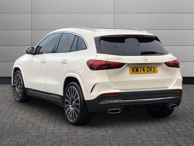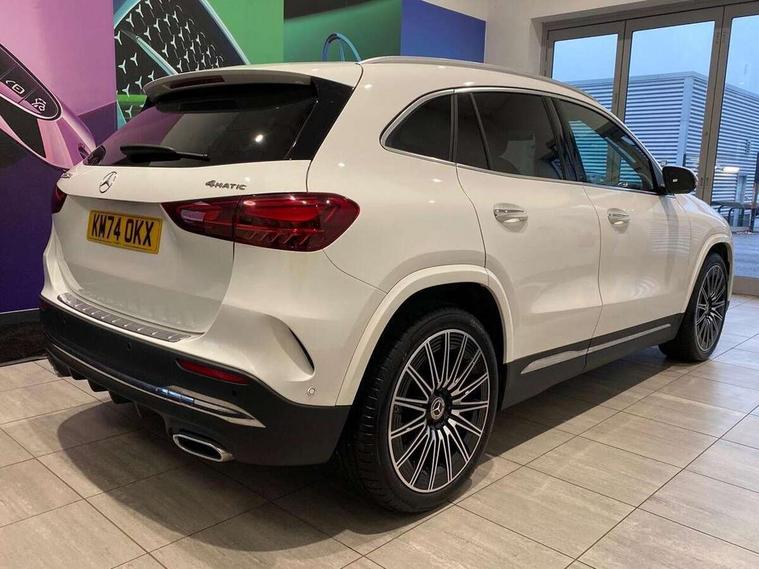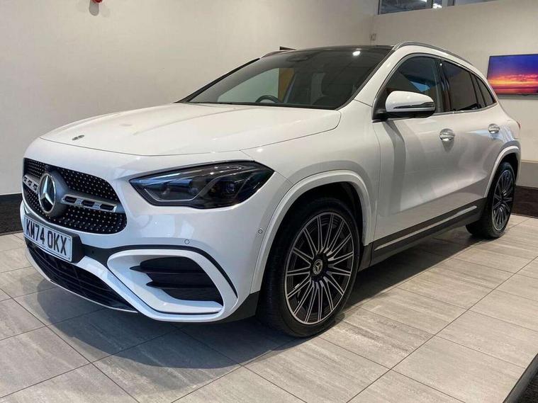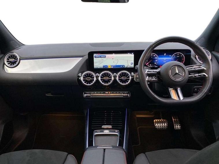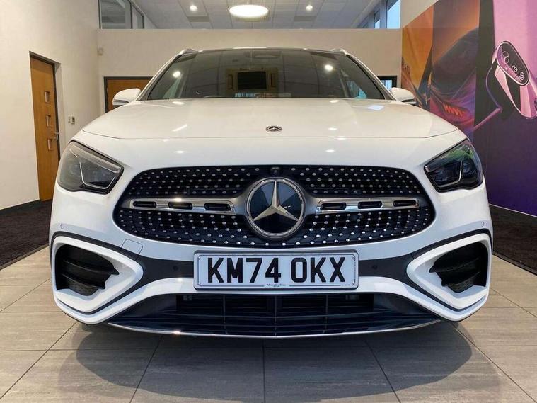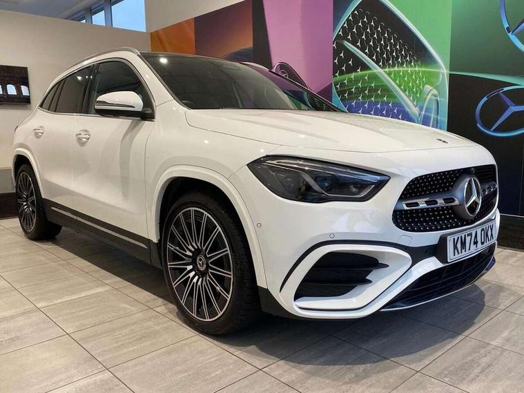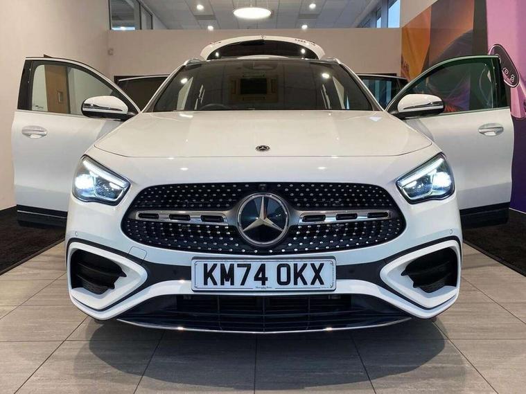 10.25 inch touchscreen central media display, 10.25" Digital instrument cluster display screen, Attention assist, Direct steering, DYNAMIC SELECT with a choice of driving modes (ECO, Comfort, Sport and Individual), Easy-pack tailgate, ECO start/stop function, Fingerprint scanner, Fluid level warning indicator for fuel, oil, coolant and washer fluid, Full color head up display, Hard-disk navigation, Hey Mercedes Voice activation, Lamp failure indicator, Lane keeping assist (LKA), Mercedes me connect including emergency call system, accident recovery, breakdown and maintenance management, Mercedes me remote services, Multi function trip computer, Outside temperature gauge, Owners manual and service booklet in English, Pre-installation of private car share, Radio aerial integrated into front and rear windshields, Service indicator (ASSYST), Smartphone integration with Apple CarPlay and Android auto, Traffic sign assist, Wireless charging, Lowered comfort suspension, Rear axle multi-link, Suspension with adaptive damping system, Bluetooth connectivity including audio streaming, DAB Digital radio, MBUX multimedia system, Mercedes-Benz (225w) sound system with 10 speakers, Adaptive brake lights, Adaptive full LED rear lights with automatic adjustment of light intensity to the surroundings, Aluminium roof rails, AMG front apron with front splitter in the colour of the vehicle with chrome trim element, AMG rear apron with visible tailpipe trim and chrome trim element, AMG specific/dual flow exhaust pipes in chrome (non-functional), Automatic headlamp activation, Beltline trim and window line trim strip in high gloss black, Black grained side sill trim with chrome inlay, Body coloured door handles with chrome insert for keyless entry, Car wash function, Cornering light function with activated high beam, Dark privacy glass from B-pillar backwards, Electric front windows, Electric rear windows, Electrically adjustable and heated door mirrors with integrated LED indicators, Exhaust system with 2 Visible tailpipe trim elements and rear apron with trim in chrome, Heat insulating dark tinted glass, Heated glass rear windscreen + timer control, Illuminated door sill panels with Mercedes-Benz lettering, Interior mirror with black reading lamps and frameless, LED daytime running lights, LED third brake light, Multibeam LED headlamps with adaptive highbeam assist plus, Panoramic sunroof, Rain sensor windscreen wipers, Rear fog lights, Rear side wing doors, Rear wiper, Wheel arch liners in the colour of the vehicle, 3 seat bench in 2nd row, 3 spoke flat bottom multifunction nappa leather steering wheel, 40:20:40 split folding rear seat backrests, Adjustable head restraints, Air conditioning - air vents with silver chrome surround, Air conditioning - Two zone thermotronic luxury automatic climate control with display, AMG floor mats, Auto Mercedes-Benz child seat recognition sensor, Black roof lining, Courtesy light in boot, Electrically adjustable front memory seats with four way lumbar support, Fluorescent jacket, Front centre armrest with stowage, Galvanished gear shift paddles on steering wheel in silver chrome, Heated front seats, Illuminated glovebox, Interior lighting - 64 colour Ambient lighting, Luggage net on driver/front passenger seat backrest, Manually height and reach adjustable steering column, Single front passenger seat, Sports pedals in brushed stainless steel with black rubber studs, Sports seats, Sports steering wheel, Stowage compartment in centre console, Stowage compartment with retractable cover, Sunvisors with illuminated vanity mirrors, Twin front cup holders, Two outer rear seat isofix and top tether child seat fixing points, Comfort seat pack - GLA Class, Driving assistance package - GLA, Interior lighting with light and sight pack - GLA, Keyless go comfort package - GLA, Mirror pack - GLA Class, Night package - GLA, Off road engineering pack - GLA, Parking package with 360-degree camera - GLA, USB package plus - GLA, 3 rear 3 point seatbelts, ABS with Brake Assist, Active bonnet pedestrain safety measure which detects an impact and raises bonnet by 65mm, Active brake assist includes forward collision warning system with autonomous braking, Adaptive brake assist with hold function and hill start assist, Black seatbelts, Bonnet with power domes, Brake pad wear warning indicator, Braking system with larger brake discs on the front axle, Childproof locks manually operated for rear doors and electrically operated for rear power windows, Crash responsive emergency lighting, Driver and passenger head and side airbags, Drivers knee airbag, Dual stage driver/passenger airbags, Electronic parking brake, ESP curve dynamic assist, ESP with ASR, Exit warning, Front and rear seatbelt reminder, Front brake callipers with Mercedes Benz logo lettering on front, Front brake discs internally ventilated and perforated, Front passenger seat occupancy sensor, Sports braking system, Tyre pressure monitoring system, Warning triangle and first aid kit, Window airbags, Alarm system with immobiliser and interior protection -Thatcham category 1, Guard 360 degree vehicle protection, Keyless Go starting function, Remote central locking and crash sensor with emergency opening function, Light longitudinal grain aluminium trim, 20" AMG multi spoke light alloy wheels aerodynamically optimised and painted in black with a high-sheen rim flangle RVT, Summer tyres, Tirefit tyre sealant kit,