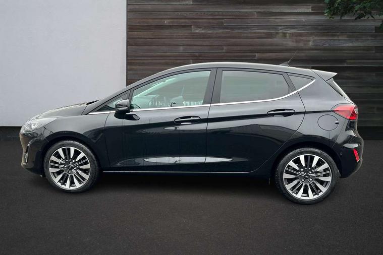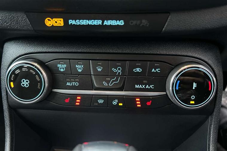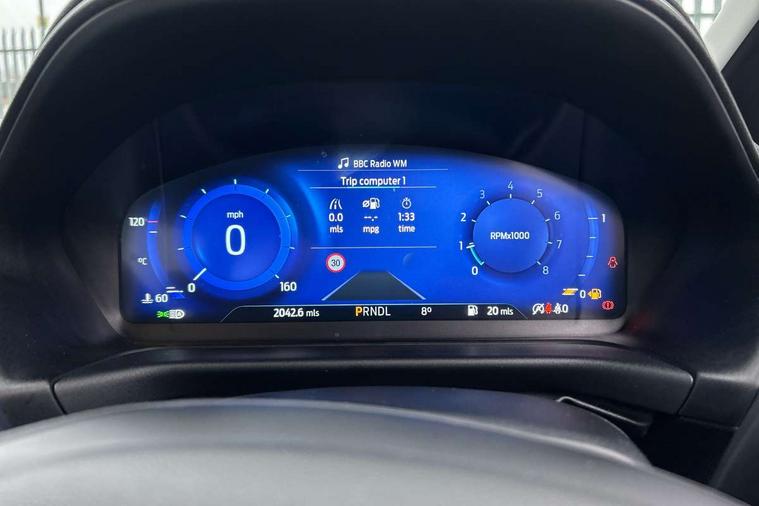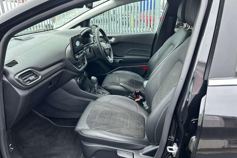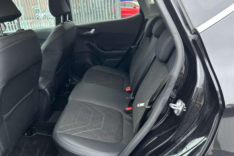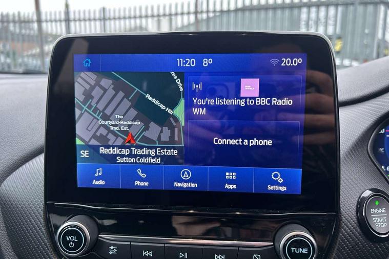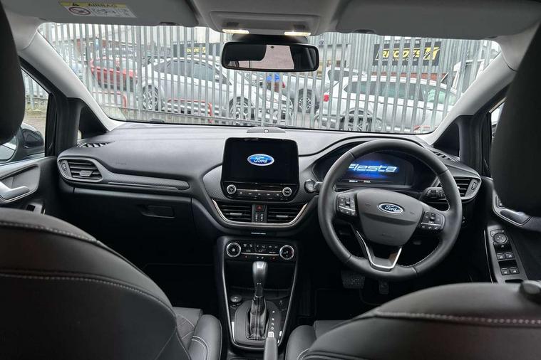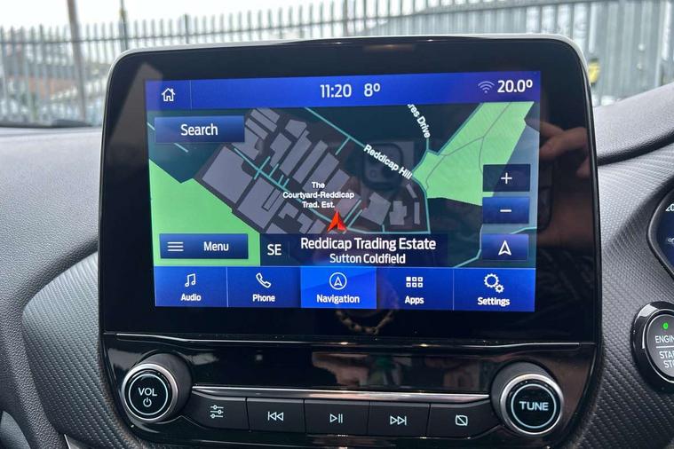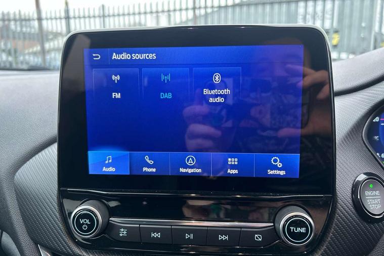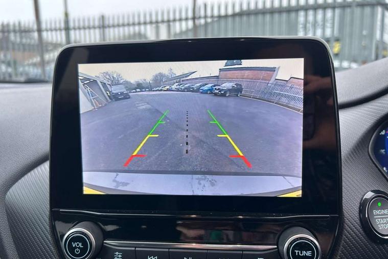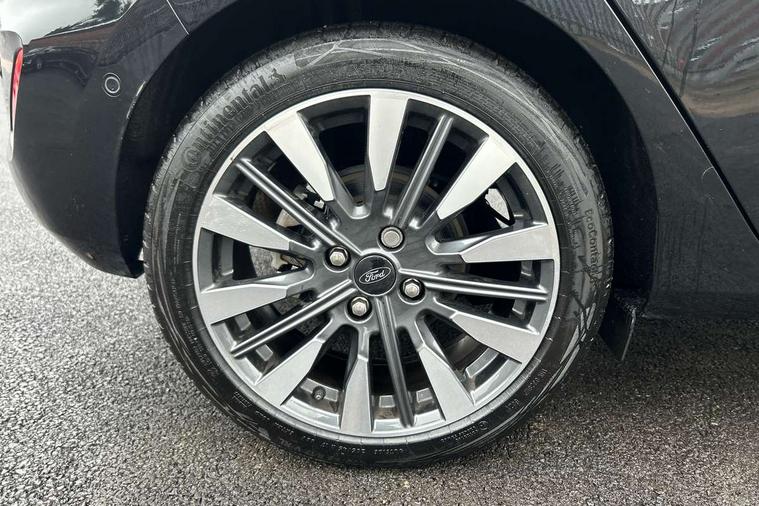 12.3" Full digital cluster, Driver alert system, Electric power steering, Ford easy fuel, Ford SYNC 3 Nav with DAB radio, 8" touch screen, voice control, emergency assist, Apple CarPlay/Android auto, 2x USB, 6 speaker, Ford pass connect, Rear parking distance sensors, Rear view camera, Selectable drive modes (Normal, Sport, Track), Speed sign recognition, Trip computer, Wrong way alert, Standard suspension, Auto high beam, Body colour bumpers, Body coloured electrically operated with side indicators, Electric front windows/one touch facility, Front titanium scuff plates, High gloss chrome surround with satin grille insert, LED Night signature to rear lights, LED third brake light, Quickclear heated windscreen, Rain sensing wipers and auto dimming rear view mirror, Rear privacy glass, Rear side wing doors, Rear wiper, 3 seat bench in 2nd row, 4 way manually adjustable passenger seat, Adjustable head restraints, Centre console with opening armrest, 2x cupholders, 12v and USB, Drivers and Passenger lumbar support, EATC - Electronic Auto Temperature control, Front floor mats in velour, Leather gear knob, LED ambient lighting (Ice blue), Manual 4-way driver seat adjust, Sensico partial premium leather upholstery with metal grey stitching, Sensico wrapped steering wheel, Single front passenger seat, NCAP Pack - Fiesta, Winter pack [GTBAB]- Fiesta, 3 point seatbelts on all rear seats, Electronic stability control with hill start assist, Tyre pressure monitoring system, Ford keyfree system with Keyless entry and keyless start, MyKey system, Remote central locking, Thatcham alarm with power door dead locks, 17" 10 spoke alloys with pearl grey machined finish,