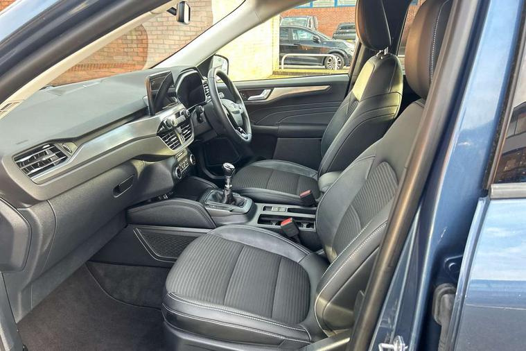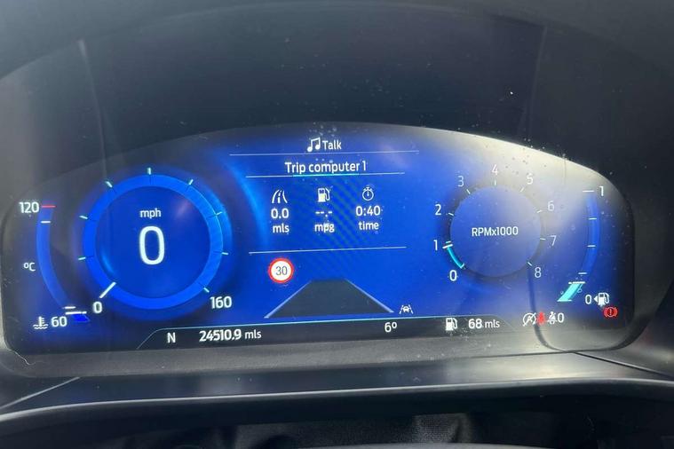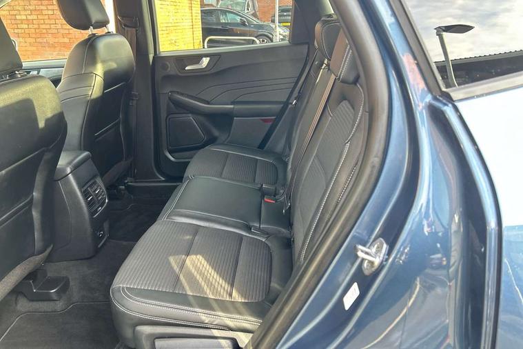 12.3" digital colour instrument cluster, Ford easy fuel, Ford SYNC 3 with 8" TFT LCD touchscreen, App Link, andriod auto/apple carPlay, emergency assistance and navigation with Ford pass connect, Front and rear parking sensors, Hands free power tailgate, Lane keeping aid with lane departure warning, Power assist steering, Rear view camera, Selectable drive modes, Service interval indicator, Standard suspension, Twist beam rear suspension, B&O premium audio system with 10 speakers and subwoofer, 2 USB ports, DAB radio/CD, Auto dimming rear view mirror, Auto headlamps with high and low beam, Auto wipers, Front LED fog lamps, LED daytime running lights, LED rear lights, Power folding heated door mirrors with puddle lights, Power front/rear windows with global close, Privacy glass, Quickclear heated windscreen, Rear spoiler, Silver roof rails, Third brake light, Twin exhausts, 10 way power adjustable drivers seat, 2nd row sliding seats with 60:40 split, 8 way manual passenger seat including lumbar support and height adjust, Ambient lighting, Centre console with electronic parking brake, Dual electronic automatic temperature control, Front and rear floor mats, Front and rear head restraints, Partial premium touch sensico leather upholstery with black cloth inserts, Rear charging point, Sports seats, 3x3 point rear seatbelts, Airbags - front driver/passenger, front and rear curtain, Drivers knee airbag, Electronic stability control (ESC) and ABS, Ford MyKey Gen 2 safety system, Manual child proof rear door locks, Post collision braking, Pre collision assist with autonomous emergency braking, Rear seat Occupancy alert, Tyre pressure monitoring system, Engine immobiliser, Keyless entry and Ford power start button (Keyless start), Locking wheel nuts, Remote powered central double locking doors, Thatcham category 1 alarm,