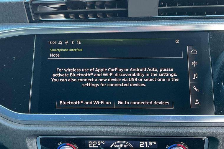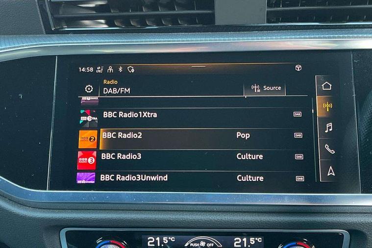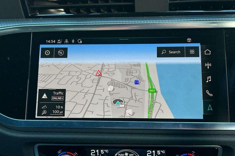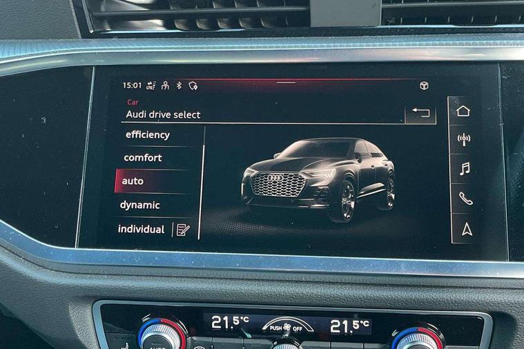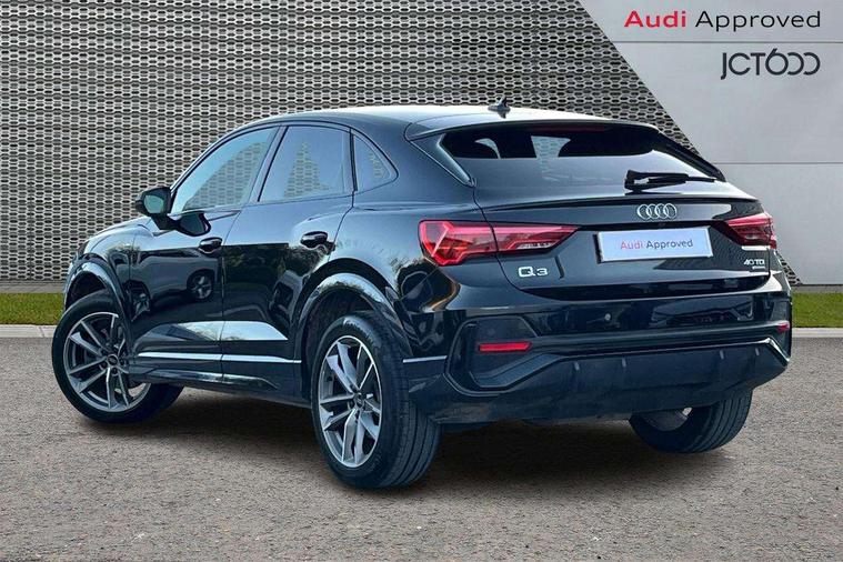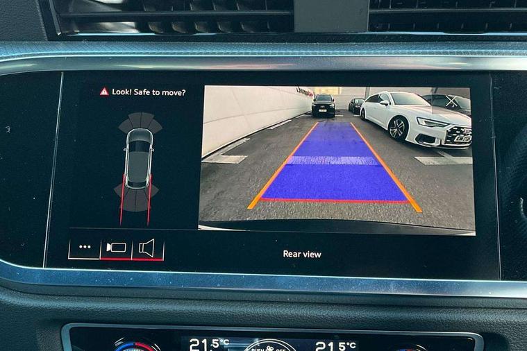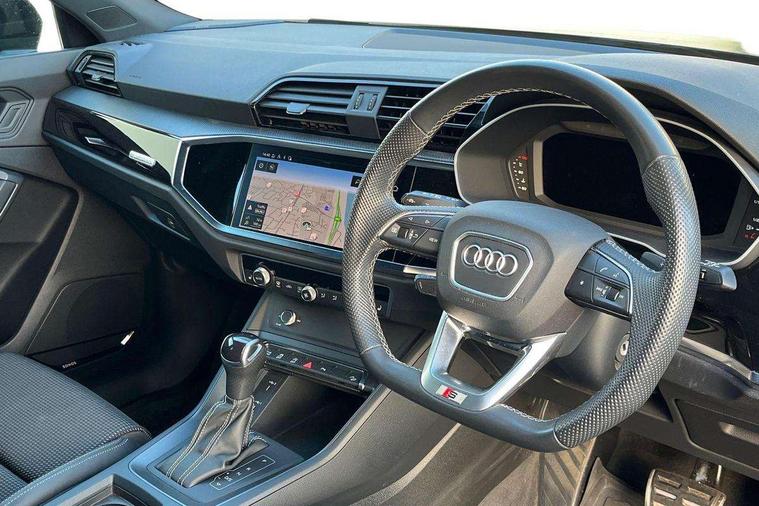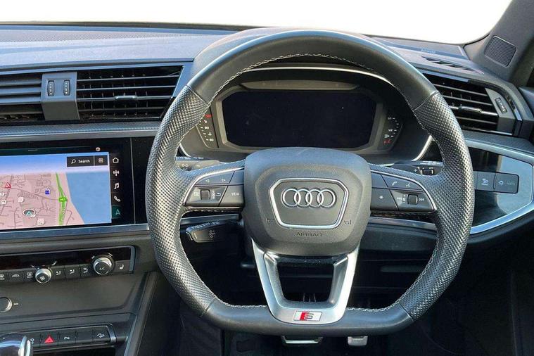 Audi drive select, Audi lane departure warning, Audi Virtual Cockpit - 10.25" display, Bluetooth interface, Camera based traffic sign recognition, Legal emergency call, MMI Navigation Plus with high resolution 10.1 inch touchscreen colour display, Power operated tailgate, Progressive steering, Service interval indicator, Smartphone interface includes wireless Apple carplay/Android Auto, Start stop system with recuperation, Voice control system with natural language interaction, Diesel particulate filter, Sports suspension, 2 USB-C ports with charge and data functions, 6 passive loudspeakers, DAB digital radio module, Acoustic windscreen, Auto dimming frameless rear view mirror, Diffuser grille in grained matt black, Diffuser trim in selenite silver, Electrically folding, adjustable and heated door mirrors with integrated LED side indicators and kerb view function for passenger side, Front and rear electric windows, Front fog lights, Front underbody protection in manhattan grey paint finish, High gloss black finish B and C pillars, LED Dynamic rear indicators, LED headlights with LED daytime running lights, LED rear lights, LED third brake light, Privacy glass dark tinted rear and rear-side windows (from B-pillar backwards), Rain and light sensors, Rear side wing doors, Rear underbody protection in matt black, Rear wiper, Variable front intermittent wipers, 12V socket in rear centre console, 3 seat bench in 2nd row, 40:20:40 folding with manual adjustment for 60:40 forwards/backwards position and backrest angle, Adjustable rear seat bench/backrest with centre armrest and cupholder, Black cloth headlining, Dual zone electronic climate control, Front and rear black floor mats with contrast stitching, Front and rear headrests, Front and rear roof module including reading lights, Front centre armrest, Glove compartment lighting, Height and reach adjustable steering wheel, Illuminated door sill trims with S logo, ISOFIX child seat mounting for front passenger with airbag deactivation and outer rear seat including top tether attachment point for outer rear seats, Luggage compartment light right in white, Luggage compartment sill protection in stainless steel, Manual front seats with height adjustment, Perforated leather gearknob, Single front passenger seat, Stainless steel pedals, Ambient lighting pack - Q3, Black styling pack - Q3, Non smoking pack - Q3, 3x3 point rear seatbelts, 6 airbags - Driver, front passenger, curtain and side windows, Audi pre-sense front with pedestrain and cyclist recognition, Electrically operated child locks on rear doors, Electromechanical parking brake, Electronic stabilisation control including ABS, ASR and EDL, Front seatbelt reminder, Hill descent control, Hill hold assist, Pre sense basic, Seatbelt monitoring, Tyre pressure warning, Warning triangle and first aid kit, Anti theft alarm, Anti theft wheel bolts, Immobiliser, Remote central locking, Aluminium look interior elements, Black dashboard, Detail dashboard around MMI touch colour display in glass look, black with surround in aluminium look, Leatherette door armrest, Piano black inlay, 19" 5 twin arm design diamond cut audi sport alloy wheels in matt grey look,