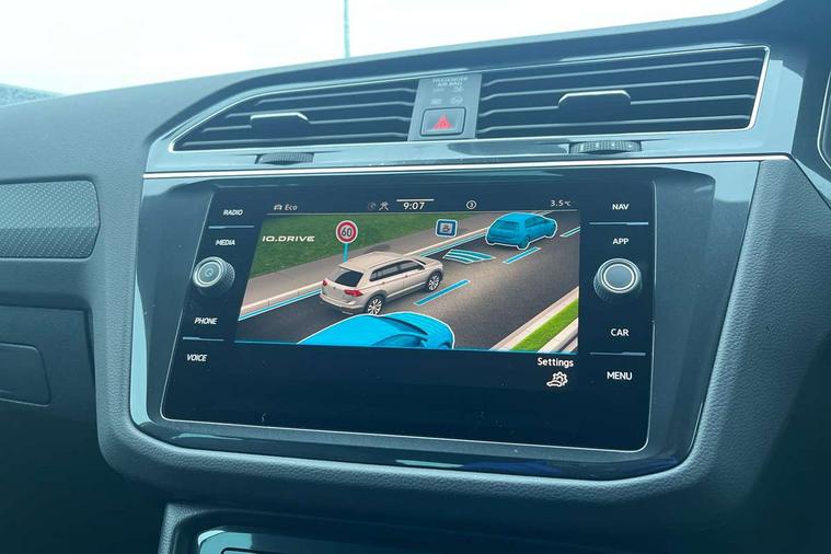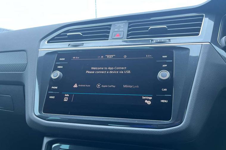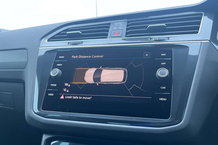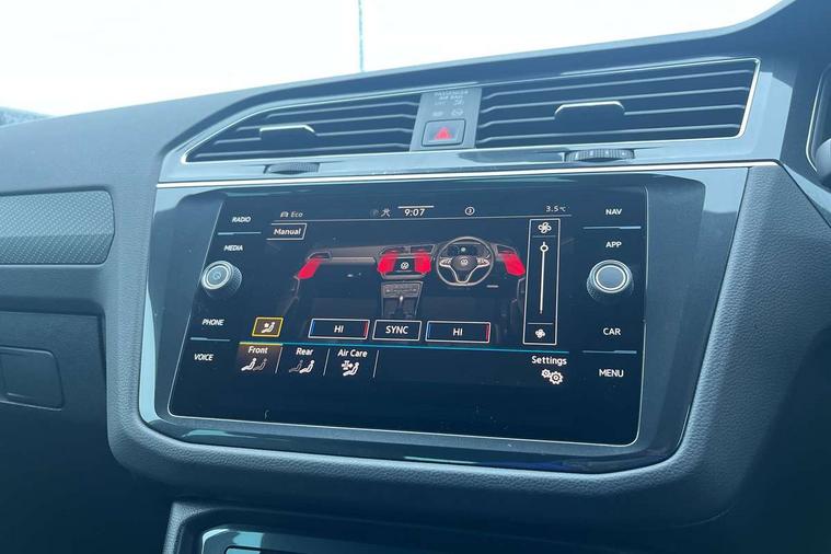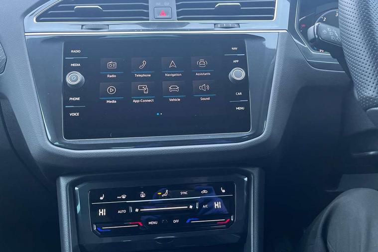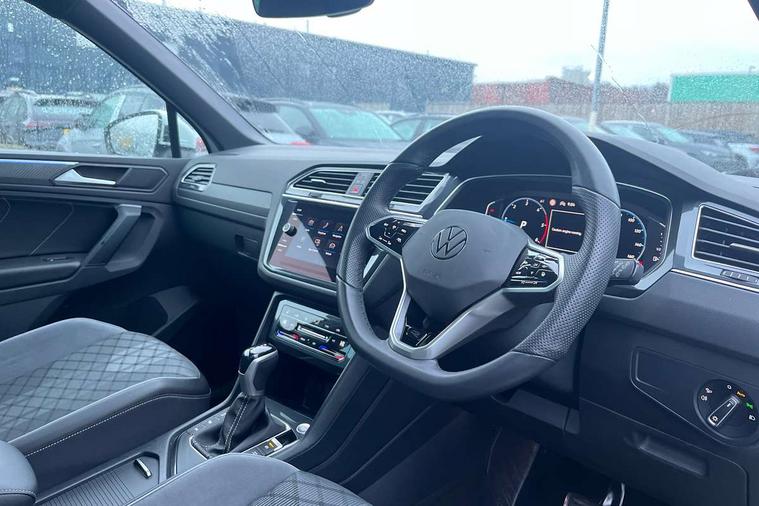 Adaptive cruise control ACC stop and go including speed limiter, App-Connect incl. App-Connect Wireless for Apple CarPlay and Android Auto, Bluetooth phone integration system, Distance control assist, Driver alert system, Driver profile selection, Dynamic road sign display, eCall emergency call system, Electromechanical speed sensitive power steering, Engine start/stop button, Lane keeping system Lane Assist, Lights on warning, Multifunction front facing camera, Outside temperature display, Premium multifunction display with multi colour display, Remote control boot opening, Rev counter, Revision / skills operating concept travel assistant, Service interval indicator, Speed limit display, Start/stop system with regenerative braking, Trip computer, Warning sound and light for doors and tailgate open, Battery regeneration during braking, Diesel particulate filter, Misfuel prevention device for diesel engine, Selective Catalytic Reduction, XDS electronic differential lock for improved traction and handling, 4 X 20 watt output, 8 Speakers, Diversity antenna for FM reception, Radio, SD card slot, Simultaneous pairing of 2 compatible mobile devices, SMS functionality - read, compose and send SMS messages using touch-screen display, Title and cover art display, USB C ports, Auto dimming interior rear view mirror, Automatic headlight control system, Body colour door handles, Chrome moldings on the side windows, Coming/leaving home lighting function, Dynamic headlight range control, Front and rear electric windows, Heated rear window, High level 3rd brake light, Laminated safety glass windshield, heat and sound insulating, LED headlamps with LED separate daytime running light and dynamic cornering light, LED rear combination lamps, LED rear number plate lights, License plate carrier in front and rear, Poor weather light and cornering light, R Line body kit, R Line side sills, Rain sensor windscreen wipers, Rear exhaust tailpipe, Rear fog lamp, Rear side wing doors, Rear spoiler in R style, Rear windscreen washer and wiper with interval delay, Side and rear windows in heat insulating glass, Trailer Stability Programme, Unique R Line badging, Windscreen wipers/ intermittent wipe + 4 position delay, 12V outlet in center console rear and in luggage compartment, 12V outlet in front and tray, 2 cup holders in front, 2 LED front reading lights, 2 LED rear reading lights, 3 bench rear seats in 2nd row, 3 rear headrests, 4 load lashing points, 40:20:40 split folding rear seats, Air Care Climatronic 3 zone automatic climate control with enhanced air filter and controls in the rear, Backrest release for left front seat, Black headlining, Brushed stainless steel pedals and footrest, Carpet mats in front and rear with decorative stitching in Gray, Climate control unit rear with touch function, Door and side trim panel in foam film, insert in leatherette, Front centre armrest, Front footwell illumination, Front seats head restraints (x-adjustment), Height adjustable front seats, Height/reach adjust steering wheel, Instrument lighting white adjustable panel illumination, Interior light with delay, Isofix Preparation 2 Rear child seats, Leather gear knob, Lockable cooled glovebox, Luggage compartment lighting, Luggage net, Rear bench seat asymetrically split folding, longitudinally movable and folding with load-through hatch and center armrest, Remote unlocking for rear seat backrest, Removable luggage cover, Removable rear headrests, Safety optimised front head restraints, Single front passenger seat, Sliding/reclining rear seats, Standard rear seat release, Storage compartment in driver's door, Storage compartment in passenger's door, Storage compartment in rear doors, Storage compartments in luggage area left and right, Storage tray on dashboard, Sun visors with illuminated vanity mirrors, Top front comfort seats, Variable boot floor, height adjustable and removable, Driver assistance pack plus - Tiguan DSG, 3 point seat belt for centre rear seats, 3 point seat belts with seat belt pretensioners for the outer rear seats, Active bonnet, Curtain airbags for front and rear passengers, Driver/Front Passenger airbags, Drivers knee airbag, Electronic parking brake with auto hold, Electronic Stability Control with driver steering recommendation, ABS, ASR, EDL, EDTC and trailer stabilization, Front assist with autonomous emergency braking (for Adaptive Cruise Control ACC up to 130 mph), Front disc brakes, Front passenger airbag deactivation, Front side airbags, Height adjustable front 3 point seatbelts + pretensioners, Hill hold control, Manual child proof rear door locks, Pedestrian monitoring system, Power assisted brakes, Proactive passenger protection system in combination with front assist, Rear disc brakes, Rigid safety cell with front and rear crumple zones, Two tone horn, Warning sound and light for front seat belts if unfastened, Anti theft alarm system with interior monitoring, backup horn and towing protection, Anti theft wheel bolts, Electronic engine immobiliser, Tool kit,