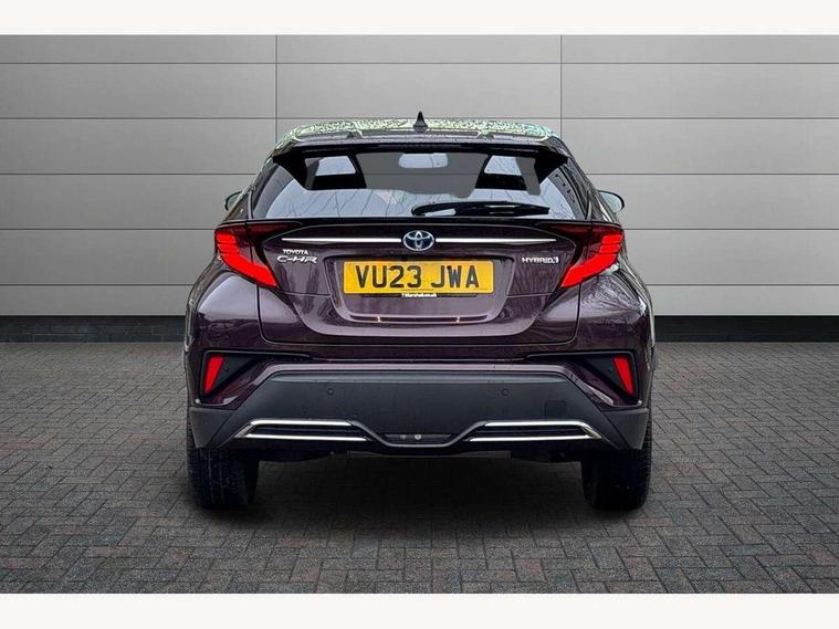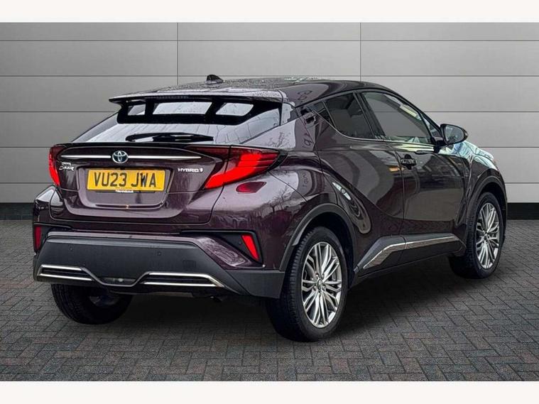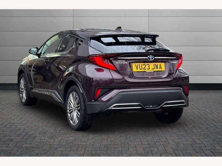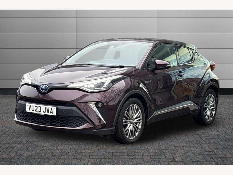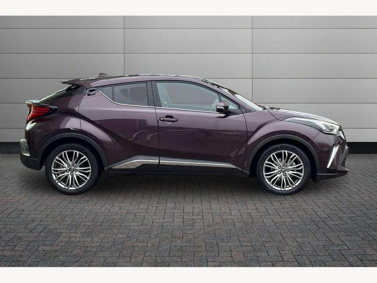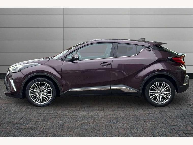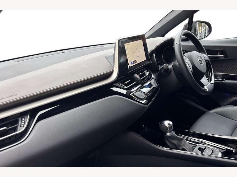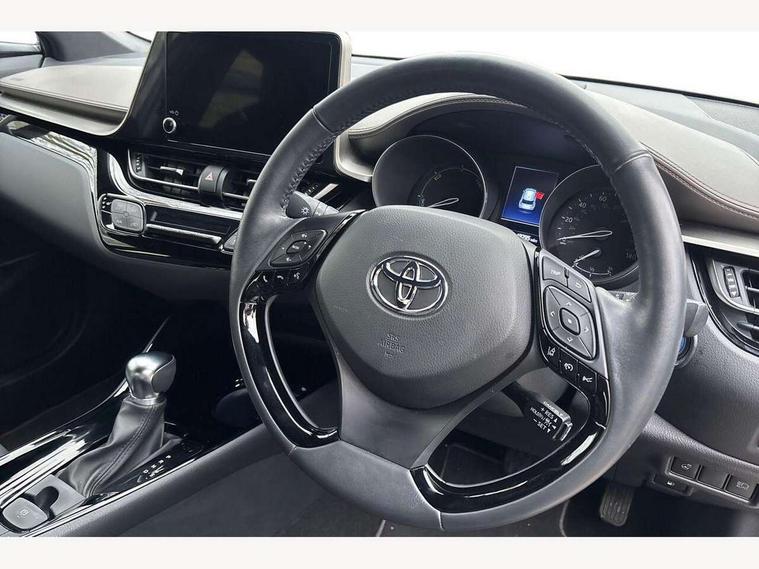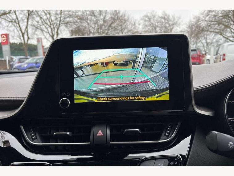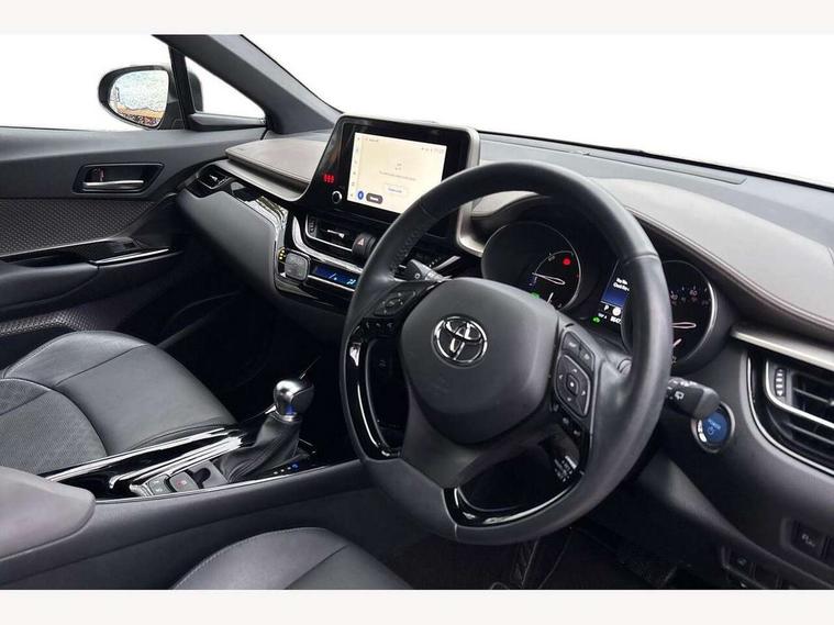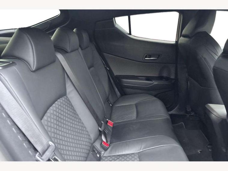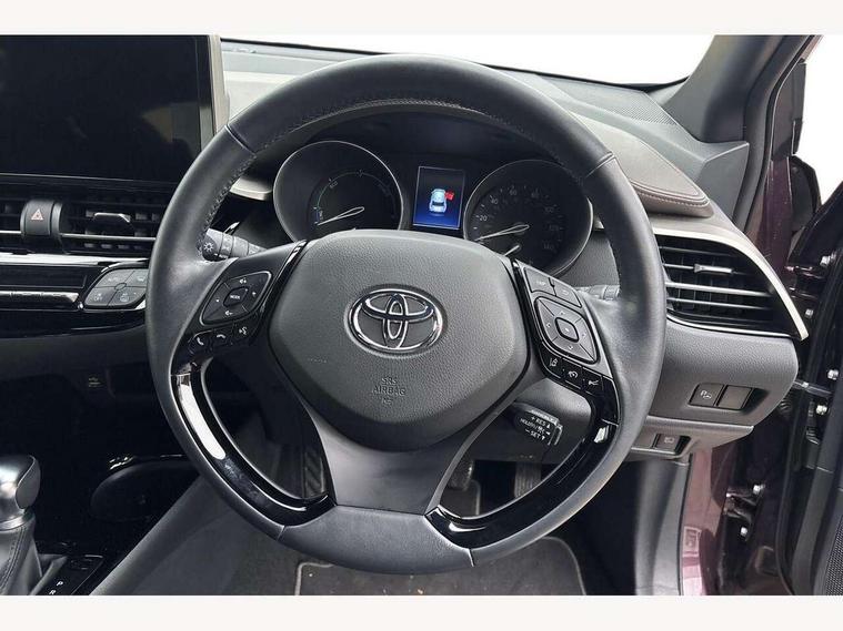 4.2" coloured TFT screen for multi-information display, Adaptive cruise control, Apple car play and Android auto, Bluetooth connectivity, E-call, Electric power steering, Hybrid system indicator, Lane departure alert with steering control, Lane trace assist, Push button tailgate release, Remote boot door release in cabin, Remote boot door release in key, Reversing camera, Road sign assist - RSA, Simple Intelligent parking assist, Smart voice assist, Touch 2 Go navigation system, Trip computer, Voice recognition, Wireless smartphone integration, Vehicle Stability Control (VSC), 6 speakers, AM/FM radio, DAB Radio (Digital Audio Broadcasting), Toyota touch 2 multimedia system with 8" display, USB connector, Wi-fi connectivity, Adaptive front light system, Adaptive LED Headlights, Anti-jam protection on power windows, Auto high beam, Auto up and down function on all power windows, Automatic headlight levelling, Automatic headlights, Automatic headlights cut-off, Black and body coloured rear bumper, Black lower front grille, Black upper front grille, Body colour door handles, Body colour door mirrors, Body colour front spoiler lip, Body coloured front bumper, Boot door release with push button, Electric heated door mirrors, Follow me home headlights, Front and rear power windows, Headlight cut off reminder, Honeycomb lower front grille, LED daytime running lights, LED fog lights, LED front light guide, LED High mounted stop light, LED rear brake lights, LED rear combination lights, Noise reduction layer on front windows and windscreen, Power adjustable door mirrors, Privacy glass, Rain sensor, Rear sequential indicators, Rear side wing doors, Rear spoiler, Rear tailgate, Rear window defogger, Rear window wiper, Shark fin antenna, UV-filter on driver and passenger windows, UV-filter on rear windows, Variable front intermittent wipers, 12v power outlet - front, 3 rear headrests, 3 seat bench in 2nd row, 3 spoke leather steering wheel, 60/40 split folding 2nd row rear seats, Adjustable rear headrests, Adjustable speed limiter switch on steering wheel, Assist grips front and centre pillar, Audio and telephone switches on steering wheel, Black front door assist grips, Blue ambient lighting on front cup holders, Blue ambient lighting on front doors, Boot light, Chrome interior door handles, Driver and front passenger personal light, Driver and front passenger Whiplash Injury Lessening seats, Driver and passenger seatback pockets, Dual zone automatic air conditioning, Floor mats, Front cupholders, Front head restraints, Front sports seats, Glovebox with internal light, Hard tonneau cover, Heated driver and front passenger seats, Heated steering wheel, Hooks for luggage holding net, Humidifying Nanoe air purifier, Illuminated entry system, Isofix attachments on outer rear seats, Leather gearshift, Leather wrapped steering wheel, Light on driver sun visor, Light on passenger sun visor, Manual telescopic steering wheel, Manual tilt steering wheel, Microphone on front personal light, Mirror on driver sun visor, Mirror on passenger sun visor, Multimedia switches on steering wheel, Pollen filter, Power adjustable lumbar support on driver seat, Power tilting cushion on driver seat, Shopping bag hooks, Single front passenger seat, Slow opening on lower glovebox, Voice recognition switch on steering wheel, Leather pack - C-HR, Tech with parking sensor pack - C-HR, 16 Disk front wheel brake, 3x3 point rear seatbelts, ABS+EBD+Brake assist, Electronic parking brake, Front and rear seatbelt reminder, Front passenger airbag on/off switch, Hill start assist control (HAC), Pre collision system with pedestrian detection, Pre-tensioners and force limiters, Rear door child safety locks, SRS Airbags - Driver + Front passenger, front side, front and rear curtain and driver's knee airbags, Toyota safety sense, Tyre pressure monitoring system, Tyre pressure warning system, Acoustic vehicle alert system (AVAS), Glass-breaking alarm sensors, Immobiliser, Intrusion alarm, Intrusion sensor, Motion sensor alarm, Power door locks, Power passenger window lock, Remote central locking, Black lower dashboard, Dark brown upper dashboard, Piano black console, Silver deco line on upper dashboard, Tyre repair kit,