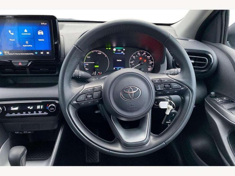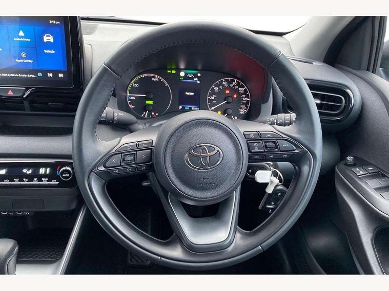4.2" coloured TFT multi information display with analogue speedometer, Adaptive cruise control, Adjustable speed limit with speed warning, Bluetooth connectivity, E-call, Electric power steering, Hybrid energy display, Lane trace assist, Multi information display switches on steering wheel, Pre-collision system (PCS), Reversing camera, Smartphone integration with Apple CarPlay and Android auto, Tailgate, Voice recognition, Vehicle Stability Control (VSC), 4 speakers, 9" Multimedia touch display, Toyota Touch 3 system with DAB radio, USB connection, Acoustic windscreen glass, Auto high beam assist, Auto windscreen wipers, Automatic headlights, Body coloured door mirrors, Bulb indicators, Chequered front grille, Daytime running lights, Electric adjustable heated door mirrors, Follow me home headlights, Front auto power windows with anti jam protection, Front halogen fog lights, Halogen projector headlights, LED High mounted stop lamp, Manual headlight levelling, Rain sensor, Rear auto power windows with anti jam protection, Rear roof spoiler, Rear side wing doors, Rear wiper, Shark fin antenna, Turning signal integrated indicators in door mirrors, Variable front intermittent wipers, 3 adjustable rear headrests, 3 seat bench in 2nd row, 3 spoke leather steering wheel, 60/40 split folding rear seat, Active headrests, Adjustable boot height, Auto air conditioning, Coat hooks in rear grab handles, Cup holders (2 front & door), Data Communication Module (DCM) connected services, Fabric upholstery, Front armrest, Glovebox, Grey roof lining, Height adjustable driver's seat, Isofix seat fixing, Leather gearshift, Pollen filter, Shopping bag hooks, Single front passenger seat, Tilt/telescopic steering column, 3 point seatbelts on all rear seats, ABS+EBD+Brake assist, Electronic parking brake, Emergency brake light system (EBS), Front passenger airbag on/off switch, Front seatbelt reminder, Hill start assist control (HAC), Rear child proof door locks, Rear seat belt reminder, Supplemental Restraint System (SRS) 8 airbags: Driver & passenger's airbags, dual side curtain airbags, side impact airbags, front centre airbag, Toyota Safety Sense 3 with over the air updates, Tyre pressure warning system, 2x Master key, Alarm/immobiliser, Remote powered central double locking doors, Soft touch instrument panel, 16" 5 spoke silver finish alloy wheels, Space saver spare wheel,