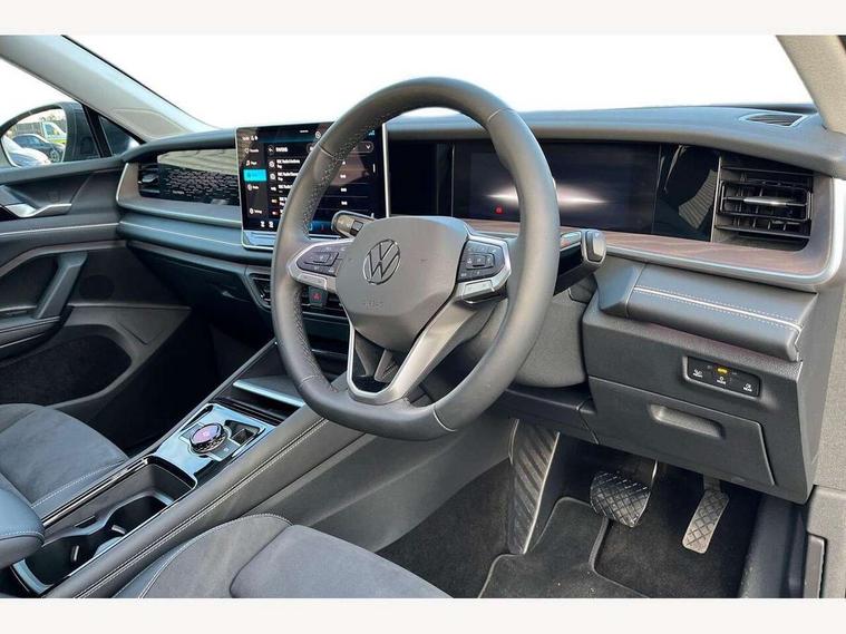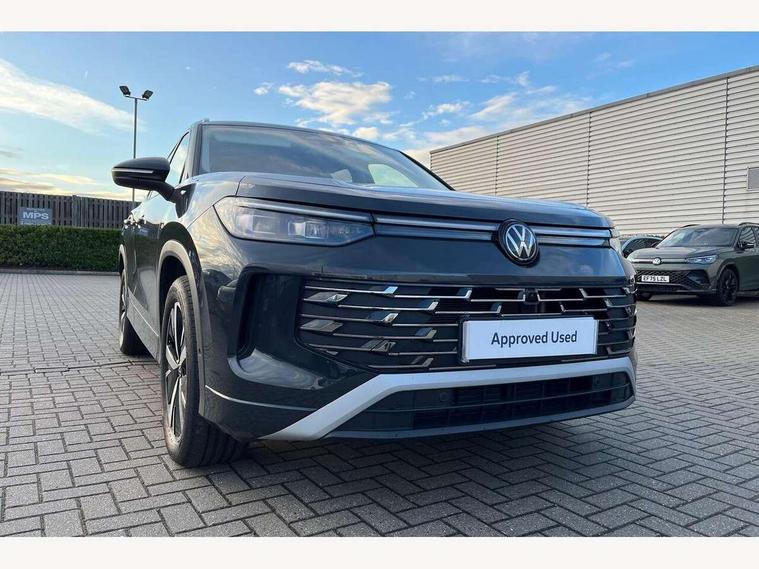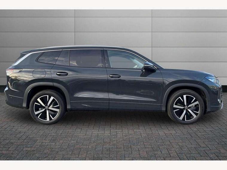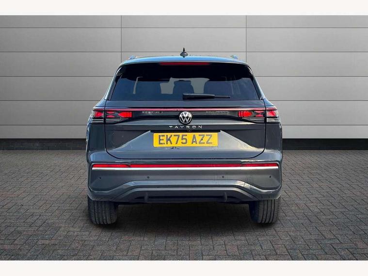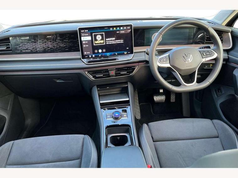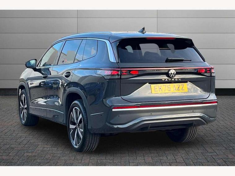 Adaptive cruise control (ACC), Digital Cockpit Pro - 10.25" high resolution dash display screen with customisable menus and information, Driver alert system, Driver attention monitoring system, Dynamic road sign display, E-Sim card for online connectivity, eCall emergency call system, Lane change system, Side assist, Rear traffic alert and Exit warning system, Multifunction front facing camera, Oncoming vehicle braking when turning including swerve support, Start/stop system with regenerative braking, Voice activation spoken voice commands for telephone and navigation system, Warning signal and warning light for front and rear seatbelts not fastened, Wireless App-Connect, Front wheel drive, Digital radio reception (DAB), Diversity antenna for FM reception, Auto dimming interior rear view mirror, Automatic headlight control system, Body colour door handles, Body coloured bumpers and air intake with chrome trim, Body-coloured exterior mirror housings, Chrome moldings on the side windows, Coming/leaving home lighting function, Dynamic headlight range control with dynamic cornering light, Exterior mirrors convex on the left and aspherical on the right, Heat insulating glass in side and rear windows, Illuminated Volkswagen logo rear with animation, Laminated safety glass from B-pillar backwards 90% tinted, Laminated safety glass winshield, heat insulating, LED 3rd brake light, LED separate signature day time running light, Puddle lights, Rain sensor windscreen wipers, Rear fog light on one side, reversing light on both sides, Rear side wing doors, Rear wiper, Reverse activated passenger's door mirror, Surround lighting with welcome light, Volkswagen logo in front, illuminated lighting animation with wake up/goodbye scenario and illuminated door handles, 10 colour interior ambient lighting, 12V outlet in center console rear and in luggage compartment, 3 rear headrests, 3 rear seat bench in 2nd row, backrest split folding with centre armrest and 2 seats in 3rd row of seats, Carpet mats, front and rear, Centre console with illuminated storage compartment with sliding cover and two drinks holders, Chrome elements on the mirror switch and power window switches and door pulls, Door and side trim panel featuring foam film with leatherette insert, Flat luggage compartment floor, Front centre armrest, Front scuff plates in alumium, ISOFIX anchors for child seats on outer rear seats and front passenger seat compatible with i-Size, Mechanical rear seat release, Power adjustable lumbar support in front, Single front passenger seat, Sports comfort seats in front, Sun visors with illuminated vanity mirrors, Comfort package with park assist pro - Tayron, Driver assistance package - Tayron, 3 Point seat belts in front with pretensioners, 3 point seatbelts in outer rear with ECE label, Autonomous emergency braking front assist with pedestrian and cyclist monitoring, Driver and front passenger airbag with front passenger airbag deactivation, Electronic parking brake with auto hold, First aid kit with warning triangle and safety vest, Front and rear curtain airbags, Front and rear side airbags, Front centre airbag, Front disc brakes, Hill start assist, Rear disc brakes, Two tone horn, Decorative material set Elegance with inserts in ornamental wood ash in the dashboard, Interior door handle in matte chrome,