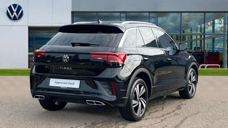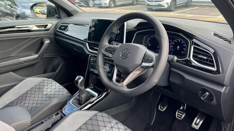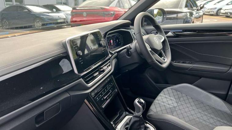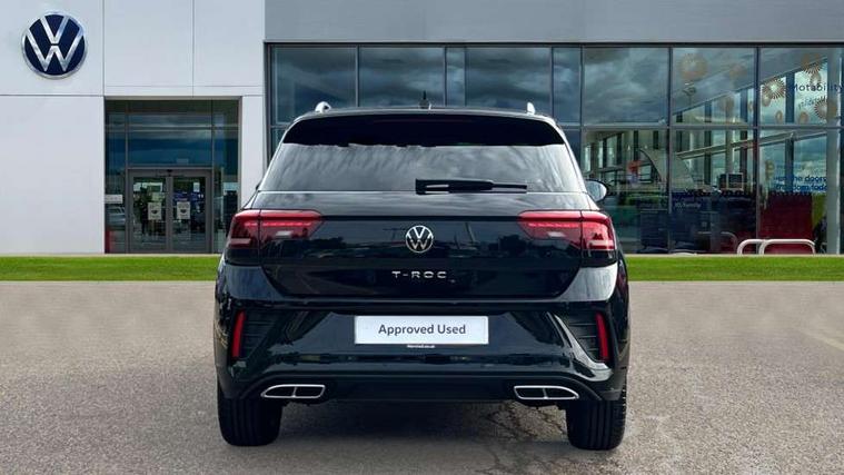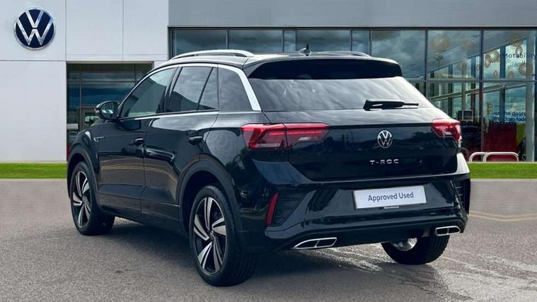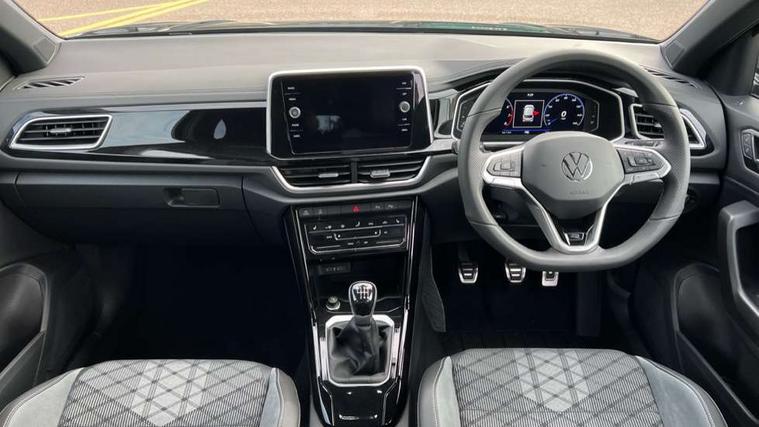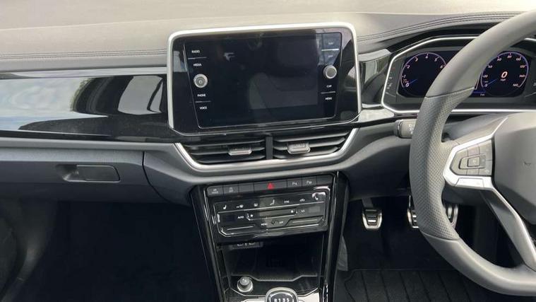 10.25" Digital cockpit pro, Advanced driver attention and drowsiness monitor, Emergency call service, Lane keeping system Lane Assist, Mobile phone interface, Modified key software - reduce switch off time for key status change to Long no motion, Online services, Park assist including front and rear parking sensors, Service interval indicator, Tailgate/trunk lid release from outside, Think blue trainer driver tips and journey analysis, Warning sound and light for front seatbelts unfastened, Wireless app connect, Battery regeneration during braking, Start/stop function with battery regeneration, DAB Digital radio, Diversity antenna for FM reception, Front and rear 6 speakers, Music playback - MP3, WMA and AAC files, Premium USB cable in choice of either Apple or Android smartphone compatibility, SD card slot, Simultaneous pairing of 2 compatible mobile devices, Title and cover art display, We Connect and We Connect Plus functionality, Auto dimming interior rear view mirror, Automatic hazard lights activation under emergency braking, Automatic headlight control with LED separate daytime running lights with coming/leaving home function, Body coloured exterior mirror housings and door handles, Electrically adjustable and heated door mirrors, Extended roof spoiler, Exterior mirrors aspherical on driver side, convex on front passenger side, External USB type C socket and charging sockets, Front windscreen wiper with intermittent wipe and 4 position delay, Heated rear window, LED 3rd brake light, LED rear combination lamps, LED rear number plate lights, Power windows with comfort operation and circuit breaker, Privacy glass for rear side windows and rear window, R-Line design body coloured bumpers, Rain sensor, Rear exhaust tailpipe, Rear fog light on one side and reversing lights on both sides, Rear side wing doors, Rear wash/wipe with intermittent wipe setting, Remote electrically foldable door mirrors, puddle lights and reverse activated passenger's door mirror, 12V power socket in centre console, 3 rear head restraints, 3 seat bench in 2nd row, 4 load lashing points in luggage compartment, Air care climatronic air conditoning system with active combination filter and 2-zone temperature control, Black roof lining, Chrome plated decorative trims, Chrome plated radiator grille inserts, air vent surrounds and light switch surrounds, Door and side trim panel with leatherette insert, Front + rear carpet mats, Front centre armrest, Front cupholders x 2, Front footwell illumination, Front reading light, Front scuff plates with R Line logo, Front seat back storage pockets, Glove compartment door with light, Instrument lighting, white adjustable panel illumination, Interior ambient lighting and surround lighting, Interior light delay, Isofix child seat preparation, Leather gearshift handle, Load-through provision with cup holder when folded down ('Unsplit rear seat bench, split folding backrest, with centre armrest), Luggage compartment lighting, Single front passenger seat, Stainless steel pedals, Storage compartment in left and right luggage area, Storage compartment in rear doors, Storage compartments in driver and front passenger doors, Sunvisors with illuminated vanity mirrors, Variable boot floor, height adjustable and removable, Driver assistance pack without proactive passenger protection - T-Roc, 3 point height adj front seatbelts + pretensioners, 3 point seatbelts in outer rear with ECE label, ABS, Child locks on rear doors, City emergency braking and pedestrian monitoring, Driver and front passenger airbag with front passenger airbag deactivation, Driver and front passenger safety-optimised head restraints, Drivers seatbelt reminder, Electronic parking brake, Electronic Stability Control (ESC) inc EDL (Electronic Differential Lock) and ASR (Traction Control), Front and rear passengers curtain airbag system including front side airbags, Hill start assist, Predictive pedestrian protection, Rear disc brakes, Two tone horn, Tyre pressure loss indicator, Volkswagen roadside assistance, Piano black decorative inserts in dashboard and front door trim panels, Trims for alloy wheels,