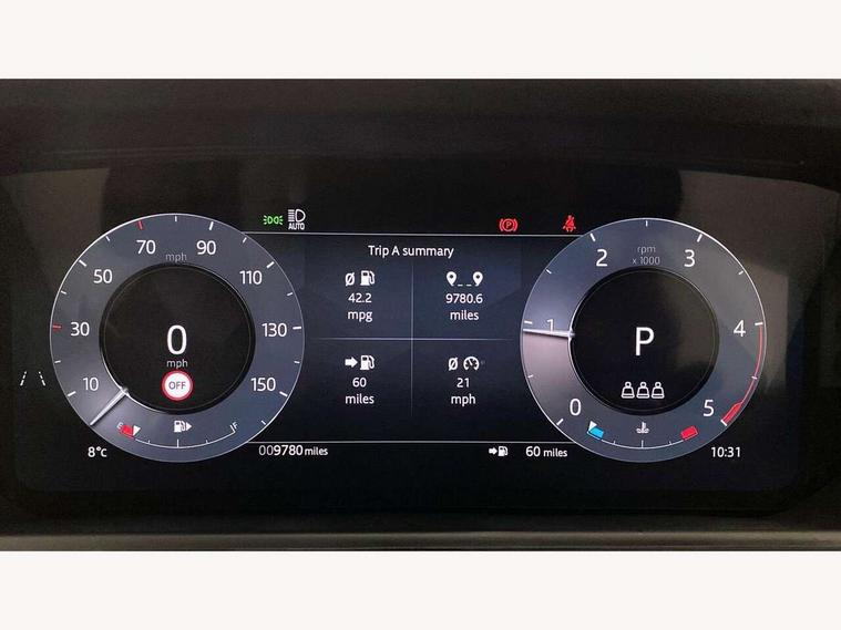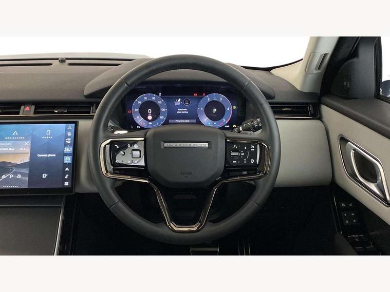 Android Auto, Apple CarPlay, Blind spot assist, Bluetooth connectivity, Brake pad wear indicator warning light, Driver condition monitor, eCall emergency call system, Front and rear parking aid, InControl remote, Land Rover InControl apps, Lane keep assist, Pivi pro with connected navigation, Rear traffic monitor, Service indicator, Speed proportional electronic power assisted steering (EPAS), Traffic sign recognition with adaptive speed limiter, Trip computer, Voice control system, Wireless device charging, 8 speed automatic transmission, All terrain progress control, Coil suspension system, Open differential with torque vectoring by braking, Single speed transfer box, DAB radio, Steering wheel mounted controls, 3rd brake light, Acoustic laminated windscreen, Auto dimming interior rear view mirror, Auto high beam assist, Automatic headlamp levelling, Automatic headlights, Body coloured bumpers, Boot protection plate, Electric windows with one touch open/close and anti trap, Flush deployable exterior door handles, Follow me home headlights, Heated rear window with timer, Heated washer jets, Heated windscreen, LED headlights with signature DRL, Metal front tread plates, Metal load space scuff plates, Power fold, auto-dimming, heated door mirrors with memory and approach lights, Rain sensor windscreen wipers, Rear animated directional indicators, Rear fog lights, Rear side wing doors, Rear wash/wipe, Tailgate/boot lid spoiler, Trailer stability assist, Velar badge, 14 way electrically adjustable front seats with driver's memory function, 3 seat bench in 2nd row, Ambient lighting, Bright metal pedals, Driver/passenger sunvisors with illuminated vanity mirrors, Ebony morzine headlining, Electrically adjustable steering column, Heated steering wheel, Isofix system on outer rear seats, Loadspace cover, Overhead lighting console, Overhead stowage for sunglasses, Passive front headrests, Rear air vents, Rear centre headrest, Single front passenger seat, Twin front cupholders, Twin sliding front centre armrest, Online pack with data plan - Velar, Power socket pack 2 - Velar, 355mm Front and 325mm Rear brakes, 3x3 point rear seatbelts, Anti-lock braking system (ABS), Cornering brake control, Curtain airbags, Customer configurable autolock, Door side intrusion beams, Driver airbag, DSC - Dynamic Stability Control, Electronic brake force distribution, Electronic parking brake, Electronic traction control, Emergency braking, Front and rear seatbelt reminder, Hill descent control, Hill launch assist, Low traction launch, Passenger airbag, Power operated child locks, Rear airbags, Roll stability control, Side airbags, Tyre pressure monitoring system (TPMS), Global lock and unlock switch on driver door, Immobiliser, Intrusion sensor, Keyless entry, Lock only switch on front passenger door, Locking wheel nuts, Perimetric alarm, Remote central locking, All season tyres,