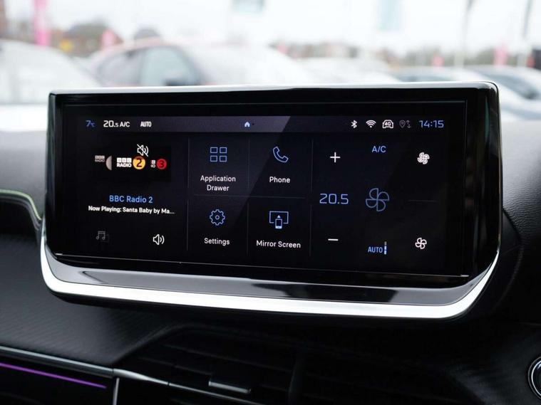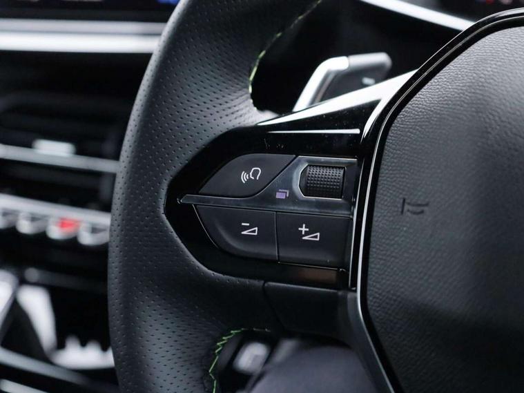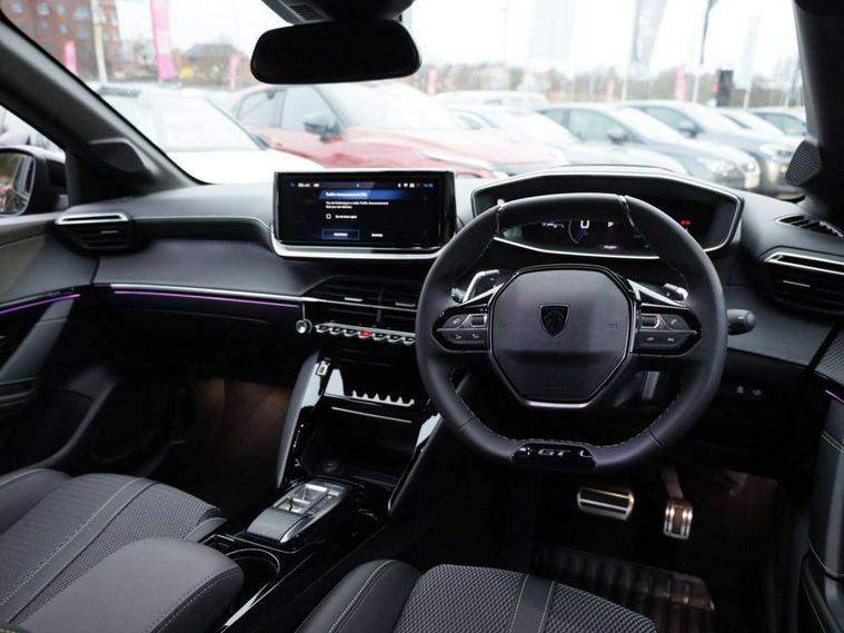 Bluetooth telephone facility, Drive mode select (Eco/Normal/Sport), Driver attention warning, Emergency call service, Exterior temperature indicator with ice warning, Front and rear parking sensors, Gear lever - e-Toggle, Multi function trip computer, PEUGEOT i-Cockpit with 10" configurable 3D colour head up instrument panel, PEUGEOT i-Cockpit with 10" HD capacitive colour touchscreen, PEUGEOT i-Cockpit with compact steering wheel, PEUGEOT SOS and assistance, Push button start, Smart phone docking station, Speed limit recognition and recommendation, Start/stop system, Wireless mirror screen with apple carplay and android auto, 6 Speakers - 2 tweeters and 4 door speakers, DAB Digital radio, USB-A socket (x1) and USB-C socket (x1) - rear, USB-C data and charge socket and USB-C charge socket in front, Voice recognition for radio, navigation and telephony features, 2 X Rear number plate lights, Acoustic windscreen, Antenna - Gloss Black 'fin' design, Automatic hazard light activation upon heavy brake application, Body coloured exterior door handles, Dark tinted rear side and tailgate windows, Diamond black rear spoiler (roof), Door sills protection with PEUGEOT signature lettering, Electric heated and power folding door mirrors with courtesy floor lighting, Electrochrome rear view mirror, Full LED headlights with automatic height adjustment and PEUGEOT smartbeam assist, Gloss black B pillar, Gloss black door mirror shells, Gloss black front bumper grille with body colour accents, Gloss black rear cluster connecting strip, Gloss black wheel arch extensions, Gloss black window weatherstrips, GT model designation badging on C pillar, Headlights left on audible warning, LED 3 claw horizontal rear lighting signature (with daylight function) and LED brake lights, indicators and reversing lights, LED daytime running lights with distinctive 3 claw signature, LED front indicators, LED third brake light, Model designation badges front and rear in basalt grey, One touch electric front/rear windows with pinch protection, Rear bumper with gloss black finish, Rear reversing lights, Rear side wing doors, Rear windscreen wiper triggered automatically in reverse gear, Tailgate with heated rear windscreen and wiper blade, Variable front intermittent wipers, 1/3 to 2/3 split folding rear seats, 12V socket, 3 seat bench in 2nd row, 8 Colour personalisable ambient lighting, Adamite green contrast stitching to front and rear armrest, front centre console, dashboard facia, Aluminium pedals, Automatic mono zone climate control air condition, Boot lighting, Driver and front passenger dynamic seats, Driver and front passenger seat manual adjustment in longitudinal and back rest angle, Driver and front passenger seat mechanical height adjustment, Driver and passenger sun visors, front footwells and central storage with LED lighting, Electric power steering with reach and rake adjustable steering column, Front centre armrest with storage compartment, Front LED interior light, front LED reading spotlights(x2), rear LED reading spotlight(x2), High centre console with 2 cup holders, Luxury carpet mats, Map pockets on the backs of the front seats, Multi function full grain perforated leather steering wheel with adamite green stitch detail and 'GT' emblem, Piano keys gloss black plated toggle switches to access main functions of the vehicle, Roof lining - Mistral black, Seatbelt unfastened on the move audible and visual alert for front and rear seats, Single front passenger seat, Tri material cloth/leather upholstery, Visibility pack - 208, 2x Isofix child seat fitting on outer rear seats, 3 rear 3 point seatbelts, ABS (Anti-lock Braking System) with EBD (Electronic Brakeforce Distribution) and EBA (Emergency Braking Assistance), Active safety brake with night function/cyclists/pedestrians, Child locking functionality on rear doors, Driver and front passenger airbag with passenger airbag deactivation, Driver/front passenger side airbags, Electric parking brake, ESP with Hill Assist, Front and rear curtain airbags, Front and rear disc brakes, Front optimised safety headrests and 3 x rear retractable headrests with height adjustable, Front three point retractable seatbelts with force limiters, Remote plip(x2) for locking, unlocking, includes emergency key blade, Tyre pressure monitoring system, Acoustic vehicle alert system (AVAS), Alarm - Connected, volumetric , perimetric, anti lift sensor, Automatic door locking when moving off, Deadlock, Electronic code immobiliser, General safety regulation, Peugeot Open and Go System, Remote central locking, Carbon effect dashboard facia trim, 17" Yanaka two tone diamond cut alloy wheels wheels includes gloss black inserts, Space saver spare wheel,