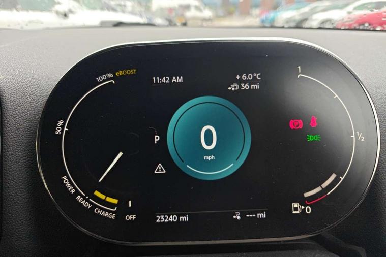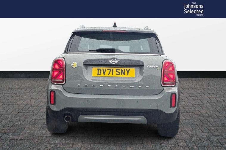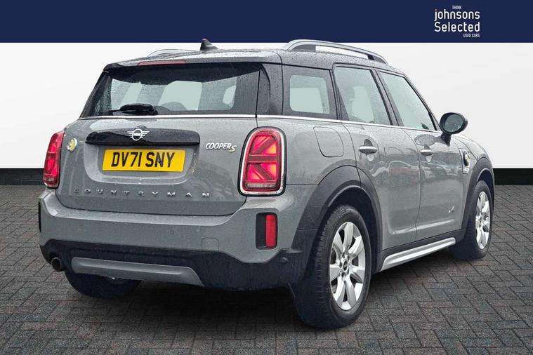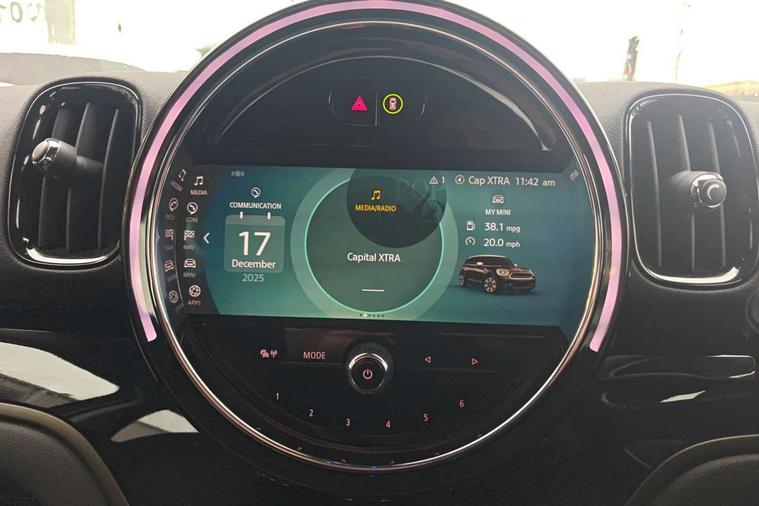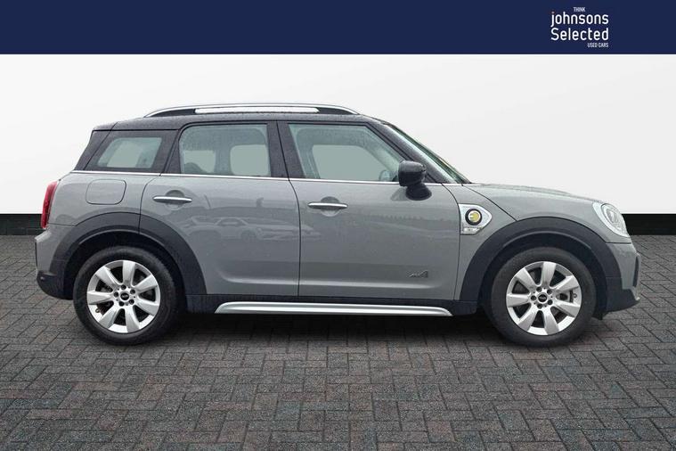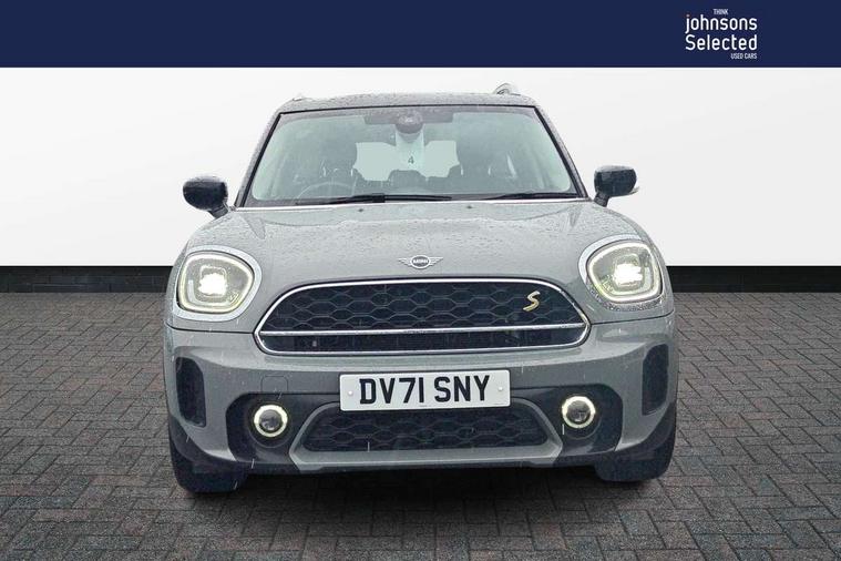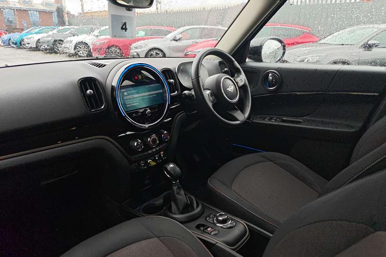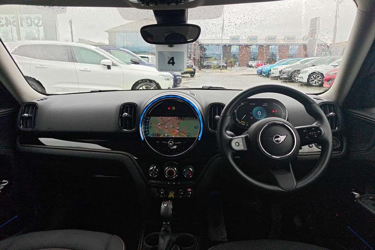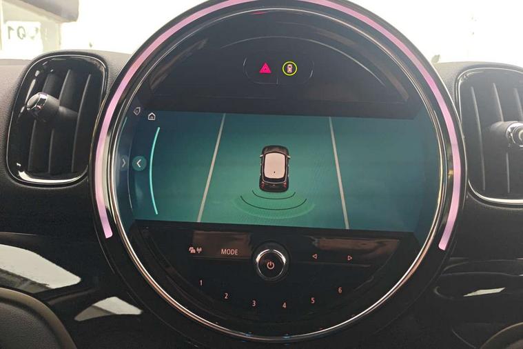 Active Guard incl speed limiting and lane departure functions with auto steering, and front collision warning with brake intervention, Automatic start/stop function with brake energy recuperation, Compatible mobile phone bluetooth with audio streaming, Cruise control with brake assist, eDrive button, Electro-mechanical speed dependant steering assistance, Instrument cluster, On board computer, Rear parking distance control, 36L fuel tank, Automatic transmission, Charging flap on front left lower A-panel, Double Vanos system, Fully variable valve control, High precision injection, Home charging cable, Performance Control, Public charging cable, FM tuner and DAB digital radio, Bonnet scoop, Chrome border honeycomb structure radiator grille with S badge, Chrome fuel filler cap, Day time driving lights, Dynamic brake lights, Electric windows, Heated rear window, Heated windscreen washer jets, LED fog lights, LED Headlights, Metal door sill strips with Cooper S imprint, Model logo, Model logo on Tailgate, Rain sensor with auto headlights, Rear fog lights, Rear window wiper, Side scuttle panel with integrated indicator, Split rear doors, Sun/heat protection glass, Twin exhaust tailpipe, White indicator lenses, 12V socket in centre console, 3 spoke sport leather steering wheel + limiter function and audio controls, 360L luggage compartment capacity, 4 lashing eyes in luggage compartment, 40:20:40 split folding rear seats, Chrome interior highlights, Colour line - Carbon black, Cupholders, English handbook, Floor mats, Front headrests, Glove compartment, Headliner with grab handles and clothes hooks, Height and length steering column adjustment, Interior lighting with 12 basic colours selectable via toggle switch in roof, Isofix rear child seat preparation, Leather gearshift lever and handbrake gaiters, LED reading lights, vanity mirror lights, front foot well light and spotlight on front seats, Manual air conditioning, Mechanical seat adjustment, driver seat height adjust, forward/back and front seats backrest, Multifunction steering wheel, Passenger seat height adjuster, Rear headrests, Storage compartments in doors, Sunvisors with vanity mirrors, Excitement pack - Countryman, Navigation pack - Countryman, 2 tone horn, 3 point seatbelts on all seats, 6 Airbags - front, side, head and seat belt tensioners, Acoustic pedestrian protection, Anti-lock braking system (ABS), DSC - Dynamic Stability Control, Electronic handbrake, Front and rear disc brakes, Hill start assist, Tyre pressure monitoring system, Alarm system with tilt sensor, monitoring doors, bonnet interior and tailgate, Auto drive away locking, Deadlocking function, Electronic vehicle immobiliser, Locking wheel bolts, Start/stop toggle with keyless go, Piano black interior trim, Tool kit,
