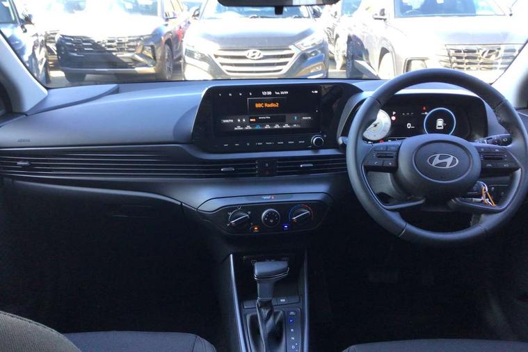 10.25" digital supervision cluster, 2nd Gen eCall, 8" Touchscreen with DAB, Apple car play/Android Auto, Cruise control + speed limiter, Forward collision assist with car, pedestrian and cycle detection, Intelligent speed limit warning, Lane follow assist, Lane keep assist, PAS, Rear parking sensor, Rear view camera with dynamic guidelines, USB C port front, 3rd brake light, Dusk sensor, Electric adjustable heated door mirrors, Front grille mesh pattern design, High beam assist, LED daytime running lights, LED Headlights, LED taillights, Rain sensor, Rear side wing doors, Rear wiper, Repositioned flat metal hyundai emblem, 3 seat bench in 2nd row, Adjustable head restraints, Air conditioning, Cloth upholstery, Floor mats, Leather steering wheel, Single front passenger seat, 3x3 point rear seatbelts, ABS with front and rear diagonally split, Autonomous emergency braking, Child locks on rear doors, Front ventilated disc brakes, Rear solid disc brakes, Tyre pressure monitoring system, 16" alloy wheels, Tyre repair kit,