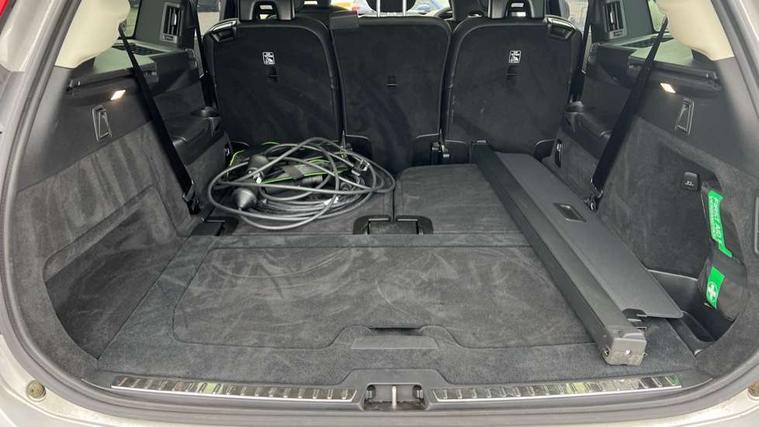 12.3" Progressive Driver Display, 360 degree surround view parking camera with side proximity sensors, 9" centre console portrait touch screen, Adjustable steering wheel force, Bluetooth hands free telephone connection, Drive mode settings, Driver alert control with lane keeping aid, Driver assistance (pilot assist and adaptive cruise control), Driver awareness - Blind spot information system with steer assist, cross traffic alert with autobrake and rear collision warning and mitigation, Emergency call service, Front and rear park assist, Google Automotive Services - Navigation with Voice recoginition and google assistant, Handsfree power tailgate opening and closing, Oncoming Lane Mitigation, Power operated tailgate, Service interval indicator, Speed limiter, Speed sensitive steering, Trip computer, Volvo on call, Wireless Mobile Phone Charger, 3.7 kW monophase on board charger, 6m 3 phase 16amp Type 2 / mode 3 charge cable, 7m 10amp charge cable with 3 pin plug, 8 speed automatic transmission with start/stop + manual change functions, Active four C chassis - four corner adaptive dampers with electronic air suspension, Electric rear axle drive, Lithium-ion battery, On board charger - 6.4 kW 2 phase/3.7kW single phase, Recharging port located in nearside front wing, DAB Radio (Digital Audio Broadcasting), Low speed exterior sound speaker, Premium Sound by Bowers and Wilkins, dirac live, dolby pro logic II surround sound, 18 speakers/1400W output and fresh air subwoofer, Steering wheel remote infotainment controls, Active bending headlights with adaptive shadow technology, Adaptive brake lights with high level LED brake lights, Auto dimming interior + exterior mirrors, Auto folding and heated power door mirrors, Automatic headlight levelling system, Automatic LED Headlights + Active high beam incorporating daytime running lights, Body colour bumpers, Dark tinted windows - rear side windows and rear screen, Front and rear power windows, Headlight cleaning system, High gloss black door mirrors and window surround, High gloss black front and rear bumper deco, High gloss black mesh front grille with surround, Home safe and approach lighting, Integrated roof rails in high gloss black, Power glass tilt and slide panoramic sunroof with sun curtain, Puddle lights, Rain sensor with automatic windscreen wiper activation, Rear side wing doors, Rear wash/wipe with intermittent wipe setting, Roof antenna, Roof spoiler, Visible VIN plate, 12V socket front tunnel console, rear passenger compartment and cargo area, 2 seat bench in 3rd row, 2nd Row centre armrest with and cupholders, 3 seat bench in 2nd row, 4 zone electronic climate control with Clean zone air quality system + pollen filter, A-pillar parking ticket holder, Advanced interior air cleaner PM2.5, Air conditioning for 3rd row of seats, Ambient door and instrument panel lighting, B Pillar ventilation, Bright metal luggage threshold, Centre console cupholders and storage, Floor mats, Front and rear door pocket and front cupholder illumination, Front and rear reading lights, Theatre lighting and centre armrest storage illumination, Front footwell and side step illumination, Front headrests, Front seat cushion extensions, Heated front seats, Heated rear seats, Heated steering wheel, Height/reach adjustable steering column, Illuminated front and rear tread plates, Illuminated luggage compartment, Illuminated tailgate, Illuminated vanity mirrors + ticket holder, Illumination lockable glovebox compartment, Integrated sun curtains in rear doors, Isofix outer rear child seat preparation in 2nd row, Load protection net, Luggage compartment divider with grocery bag holder, Outboard armrest with cupholder and storage for third row passengers, Power driver seat with multi directional lumbar support and memory for seat and exterior mirrors, Power folding 2nd row headrests, Power passenger seat with multi directional lumbar support and memory, Rear footwell and side step illumination, Rear headrests, Recharge aluminium tread plates, Semi automatic load cover, Single front passenger seat, Underfloor luggage compartment storage, 7 three point seatbelts, City safety with steering support includes pedestrian, cyclist and large animal detection and front collision warning with full auto brake, Drivers knee airbag, Dual stage driver/passenger airbags, First aid kit, Front seats SIPS airbags, Hill descent control - off drive mode, Hill start assist, IC (Inflatable Curtains) - Full Length, Passenger airbag cut-off switch, Power child locks on rear doors, Power parking brake with auto hold function, Road sign information display, Run off Road Mitigation, Run off Road Protection, Seatbelt reminder and pretensioners for all seats, SIPS (Side Impact Protection System), Slippery road and hazard light alert, Stability and Traction Control with Spin control, Engine Drag Control and Corner Traction Control, Tyre pressure monitoring system, Vehicle deceleration control with Anti-lock Brake System, Electronic Brake Distribution and Emergency Brake Assist, Warning triangle, WHIPS whiplash protection system - front, Anti-theft alarm including immobiliser/volume sensor + level sensor, Care key with user defined top speed, Key integrated remote control central locking + fuel flap with deadlocking system and auto open/close power windows, Keyless drive includes keyless entry and keyless start, Locking wheel nuts, Private locking for glovebox and tailgate, Tailored Instrument Panel and Door Tops with Contrast Stitching, Tyre sealant kit and compressor,