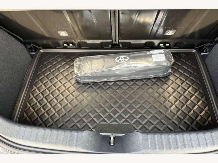 4.2" TFT colour screen, Adjustable speed limiter, Analogue speedometer, Bluetooth connectivity, Digital tachograph, Driver attention alert system, eCall emergency call system, Electric power steering, Intersection turn assist, Key reminder warning, Noise reduction kit, Pre collision system with emergency steering assist, Reversing camera with static guide lines, Smart phone integration with Apple car play/Android Auto, Speed limit display, Start and stop, Vehicle Stability Control (VSC), 4 speakers, 9" HD multimedia display touch screen with Toyota smart connect, DAB digital audio broadcast, USB connector, Auto headlights, Auto wipers, Automatic headlights cut-off, Bicycle towing hook, Black contrast roof, Black side protection mouldings, Black wheel arch mouldings, Body colour door handles, Body coloured front bumper, Boot door scuff plate, Eclipse black rear bumper, Electric heated door mirrors, Follow me home headlights, Front fog lights, Front power windows, Gloss black door mirrors, Gloss black upper front grille, Headlight cut-off reminder, LED daytime running lights, LED front light guide, LED High mounted stop lamp, Manual day/night rear view mirror, Manual headlight levelling, Pagoda roof, Power adjustable door mirrors, Power back door, Privacy glass, Projector halogen headlights, Rain sensor, Rear combination lights LED bulb type, Rear side wing doors, Rear windscreen defogger, Rear windscreen wiper, Short antenna, Variable intermittent windscreen wipers, 12v power outlet - front, 2 seat bench in 2nd row, 3 spoke leather steering wheel, 50/50 split folding rear seat, Adhesive roof headlining, Adjustable speed limiter switch on steering wheel, Audio and telephone switches on steering wheel, Auto air conditioning, Black insert on steering wheel, Black roof lining, Boot light, Centre room light, Chrome interior door handles, Chrome surround on air conditioning buttons, Clean air filter, Console box storage in body color, Fabric upholstery, Floor mats, Front and rear cup holders, Front head rest deco art, Front head restraints, Height adjustable driver seat, Intelligent adaptive cruise control switch on steering wheel, ISOFIX child restraint system on rear seats, Lane departure alert switch on steering wheel, Leather gearshift knob, Manual tilt steering wheel, Manually reclining and sliding driver seat, Manually reclining and sliding front passenger seat, Multimedia switches on steering wheel, Pollen filter, Rear door pockets, Rear head restraints, Satin silver insert on gear shift knob, Single compartment glovebox with lights, Single front passenger seat, Soft tonneau cover, Sun visors with mirror on driver and passenger side, Voice recognition switch on steering wheel, Toyota safety sense pack - Aygo X, Anti lock braking system + Electronic brake force distribution, Child safety door lock, Emergency brake light signal (EBS), Hill start assist control (HAC), Passenger airbag on/off switch, Seat belt reminder for front and rear seats, Supplement restraints system (SRS) - 6 airbags, Traction control, Tyre pressure warning system, Immobiliser, Remote power door locks, Black wheel centre caps, Tyre repair kit,