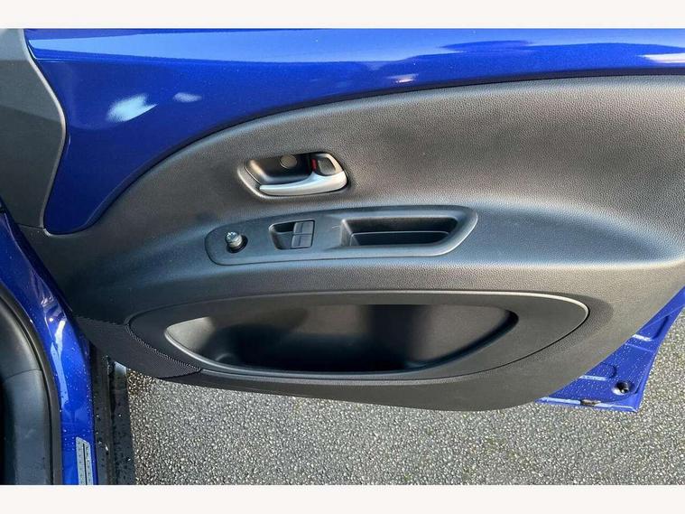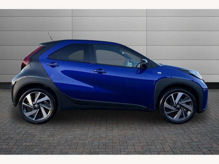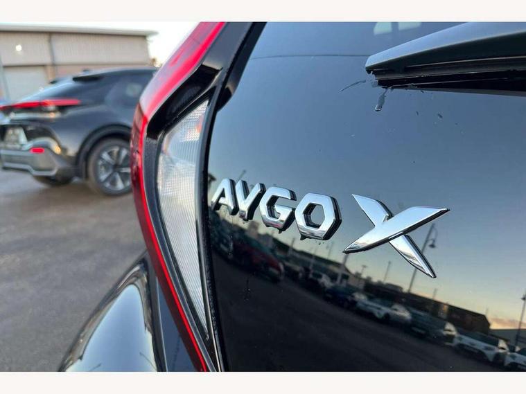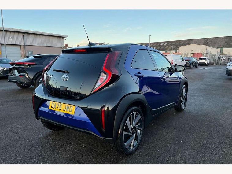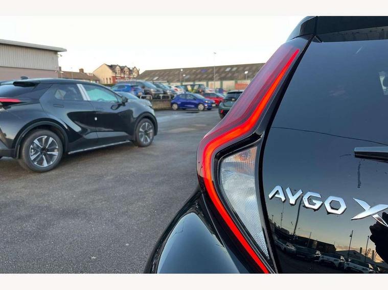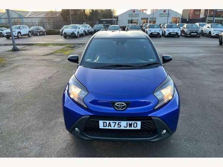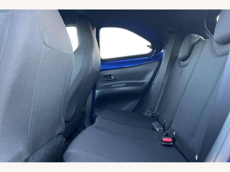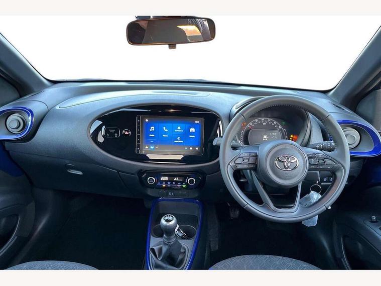 4.2" TFT colour screen, Adjustable speed limiter, Analogue speedometer, Bluetooth connectivity, Digital tachograph, Driver attention alert system, eCall emergency call system, Electric power steering, Intersection turn assist, Key reminder warning, Noise reduction kit, Pre collision system with emergency steering assist, Reversing camera with static guide lines, Smart phone integration with Apple car play/Android Auto, Speed limit display, Start and stop, Vehicle Stability Control (VSC), 4 speakers, 9" HD multimedia display touch screen with Toyota smart connect, DAB digital audio broadcast, USB connector, Auto headlights, Auto wipers, Automatic headlights cut-off, Bicycle towing hook, Black contrast roof, Black side protection mouldings, Black wheel arch mouldings, Body colour door handles, Body coloured front bumper, Boot door scuff plate, Eclipse black rear bumper, Electric heated door mirrors, Follow me home headlights, Front fog lights, Front power windows, Gloss black door mirrors, Gloss black upper front grille, Headlight cut-off reminder, LED daytime running lights, LED front light guide, LED High mounted stop lamp, Manual day/night rear view mirror, Manual headlight levelling, Pagoda roof, Power adjustable door mirrors, Power back door, Privacy glass, Projector halogen headlights, Rain sensor, Rear combination lights LED bulb type, Rear side wing doors, Rear windscreen defogger, Rear windscreen wiper, Short antenna, Variable intermittent windscreen wipers, 12v power outlet - front, 2 seat bench in 2nd row, 3 spoke leather steering wheel, 50/50 split folding rear seat, Adhesive roof headlining, Adjustable speed limiter switch on steering wheel, Audio and telephone switches on steering wheel, Auto air conditioning, Black insert on steering wheel, Black roof lining, Boot light, Centre room light, Chrome interior door handles, Chrome surround on air conditioning buttons, Clean air filter, Console box storage in body color, Fabric upholstery, Floor mats, Front and rear cup holders, Front head rest deco art, Front head restraints, Height adjustable driver seat, Intelligent adaptive cruise control switch on steering wheel, ISOFIX child restraint system on rear seats, Lane departure alert switch on steering wheel, Leather gearshift knob, Manual tilt steering wheel, Manually reclining and sliding driver seat, Manually reclining and sliding front passenger seat, Multimedia switches on steering wheel, Pollen filter, Rear door pockets, Rear head restraints, Satin silver insert on gear shift knob, Single compartment glovebox with lights, Single front passenger seat, Soft tonneau cover, Sun visors with mirror on driver and passenger side, Voice recognition switch on steering wheel, Toyota safety sense pack - Aygo X, Anti lock braking system + Electronic brake force distribution, Child safety door lock, Emergency brake light signal (EBS), Hill start assist control (HAC), Passenger airbag on/off switch, Seat belt reminder for front and rear seats, Supplement restraints system (SRS) - 6 airbags, Traction control, Tyre pressure warning system, Immobiliser, Remote power door locks, Black wheel centre caps, Tyre repair kit,