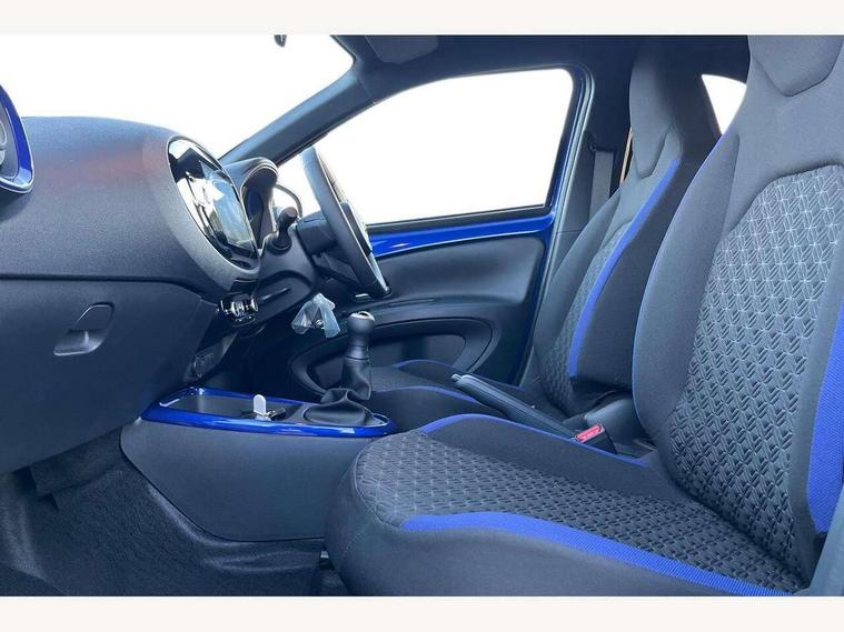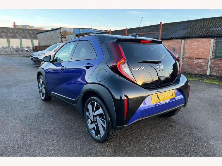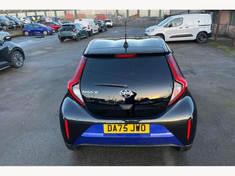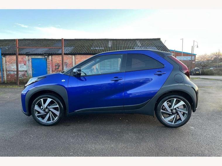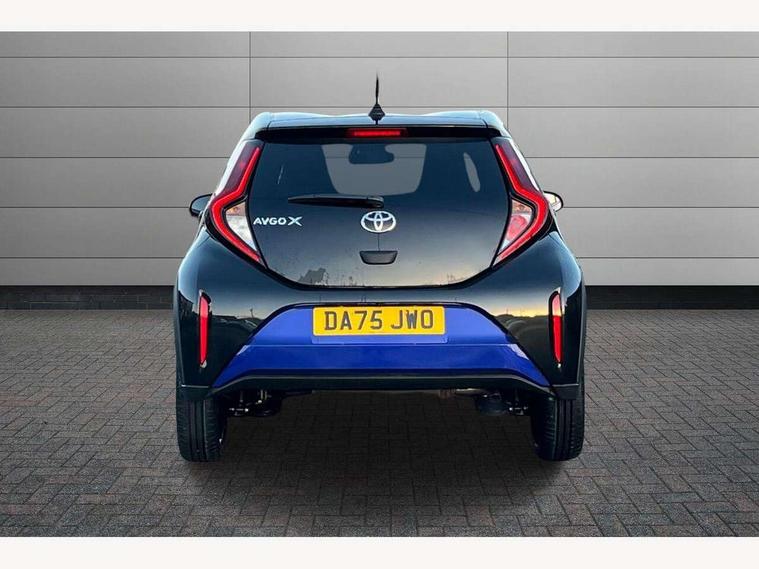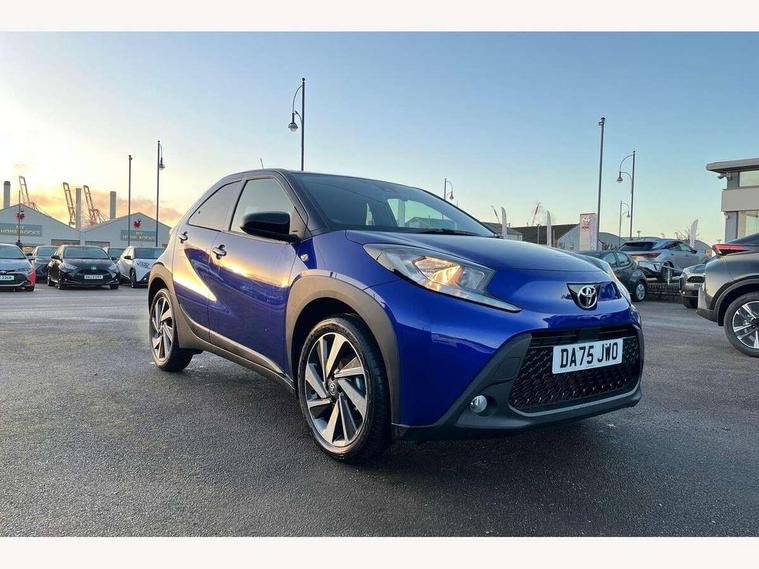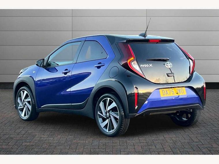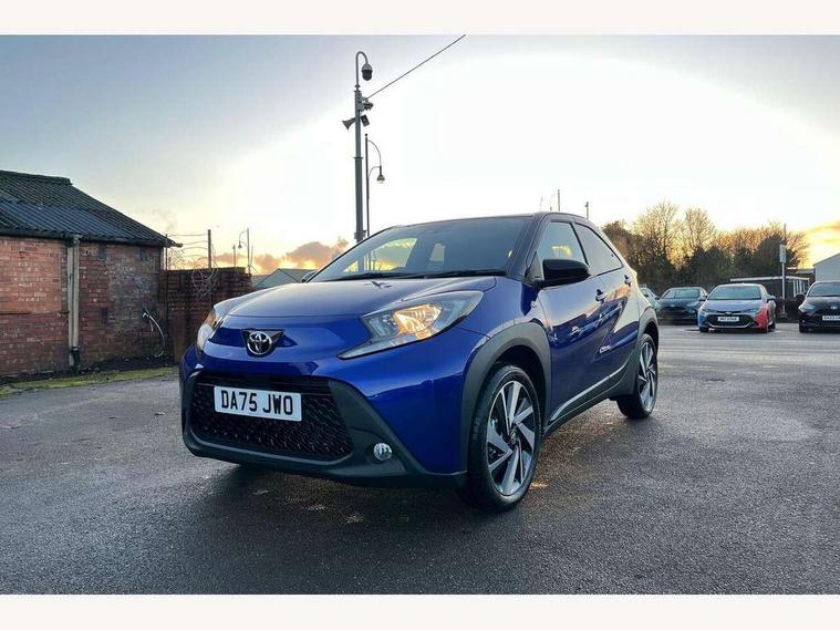 4.2" TFT colour screen, Adjustable speed limiter, Analogue speedometer, Bluetooth connectivity, Digital tachograph, Driver attention alert system, eCall emergency call system, Electric power steering, Intersection turn assist, Key reminder warning, Noise reduction kit, Pre collision system with emergency steering assist, Reversing camera with static guide lines, Smart phone integration with Apple car play/Android Auto, Speed limit display, Start and stop, Vehicle Stability Control (VSC), 4 speakers, 9" HD multimedia display touch screen with Toyota smart connect, DAB digital audio broadcast, USB connector, Auto headlights, Auto wipers, Automatic headlights cut-off, Bicycle towing hook, Black contrast roof, Black side protection mouldings, Black wheel arch mouldings, Body colour door handles, Body coloured front bumper, Boot door scuff plate, Eclipse black rear bumper, Electric heated door mirrors, Follow me home headlights, Front fog lights, Front power windows, Gloss black door mirrors, Gloss black upper front grille, Headlight cut-off reminder, LED daytime running lights, LED front light guide, LED High mounted stop lamp, Manual day/night rear view mirror, Manual headlight levelling, Pagoda roof, Power adjustable door mirrors, Power back door, Privacy glass, Projector halogen headlights, Rain sensor, Rear combination lights LED bulb type, Rear side wing doors, Rear windscreen defogger, Rear windscreen wiper, Short antenna, Variable intermittent windscreen wipers, 12v power outlet - front, 2 seat bench in 2nd row, 3 spoke leather steering wheel, 50/50 split folding rear seat, Adhesive roof headlining, Adjustable speed limiter switch on steering wheel, Audio and telephone switches on steering wheel, Auto air conditioning, Black insert on steering wheel, Black roof lining, Boot light, Centre room light, Chrome interior door handles, Chrome surround on air conditioning buttons, Clean air filter, Console box storage in body color, Fabric upholstery, Floor mats, Front and rear cup holders, Front head rest deco art, Front head restraints, Height adjustable driver seat, Intelligent adaptive cruise control switch on steering wheel, ISOFIX child restraint system on rear seats, Lane departure alert switch on steering wheel, Leather gearshift knob, Manual tilt steering wheel, Manually reclining and sliding driver seat, Manually reclining and sliding front passenger seat, Multimedia switches on steering wheel, Pollen filter, Rear door pockets, Rear head restraints, Satin silver insert on gear shift knob, Single compartment glovebox with lights, Single front passenger seat, Soft tonneau cover, Sun visors with mirror on driver and passenger side, Voice recognition switch on steering wheel, Toyota safety sense pack - Aygo X, Anti lock braking system + Electronic brake force distribution, Child safety door lock, Emergency brake light signal (EBS), Hill start assist control (HAC), Passenger airbag on/off switch, Seat belt reminder for front and rear seats, Supplement restraints system (SRS) - 6 airbags, Traction control, Tyre pressure warning system, Immobiliser, Remote power door locks, Black wheel centre caps, Tyre repair kit,