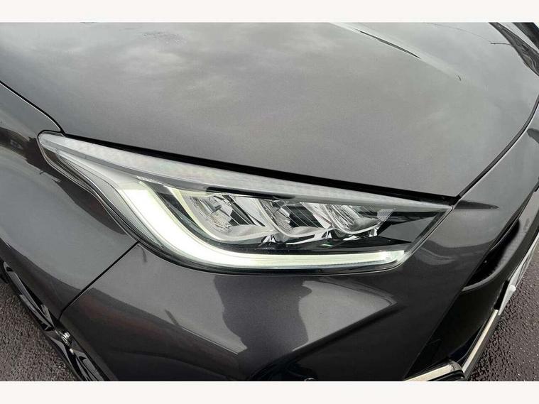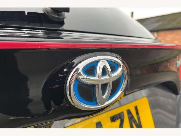 Adaptive cruise control, Adjustable speed limit with speed warning, Bluetooth connectivity, Colour binocular inspired displays with digital speedometer, E-call, Electric power steering, Hybrid energy display, Multi information display switches on steering wheel, Reversing camera, Smartphone integration with Apple CarPlay and Android auto, Vehicle Stability Control (VSC), 8" Multimedia display touch screen, JBL Premium sound system with 8 speakers, Toyota Touch 2 with DAB, USB connection, Acoustic windscreen glass, Auto windscreen wipers, Automatic headlights, Body coloured door mirrors, Electric adjustable heated door mirrors, Follow me home headlights, Front auto power windows with anti jam protection, Full LED rear lights, LED daytime running lights, LED front fog lights, LED Headlights, LED High mounted stop lamp, Painted front grille, Rear auto power windows with anti jam protection, Rear privacy glass, Rear spoiler, Shark fin antenna, Turning signal integrated indicators in door mirrors, 3 adjustable rear headrests, 3 spoke leather steering wheel, 60/40 split folding rear seat, Active headrests, Adjustable boot height, Coat hooks in rear grab handles, Cup holders (2 front & door), Data Communication Module (DCM) connected services, Dual zone automatic air conditioning, Fabric seat with partial synthetic leather upholstery, Front armrest, Front sport seats, Glovebox, Height adjustable driver's seat, Height adjustable passenger seat, Isofix seat fixing, Leather gearshift, Map pockets on the backs of the front seats, Pollen filter, Shopping bag hooks, Tilt/telescopic steering column, 3 point seatbelts on all rear seats, ABS+EBD+Brake assist, Electronic parking brake, Emergency brake light system (EBS), Front passenger airbag on/off switch, Front seatbelt reminder, Hill start assist control (HAC), Rear child proof door locks, Rear seat belt reminder, Supplemental Restraint System (SRS) 8 airbags: Driver & passenger's airbags, dual side curtain airbags, side impact airbags, front centre airbag, Toyota Safety Sense 2, Precollison + Night time Pedestrian & Cyclist Detection, Lane Trace Assist, Auto High Beam, Intelligent ACC & Road Sign Assist, Tyre pressure warning system, Alarm/immobiliser, Keyless smart entry with push button start, Remote powered central double locking doors, Piano black interior trim, Soft touch instrument panel, Space saver spare wheel,