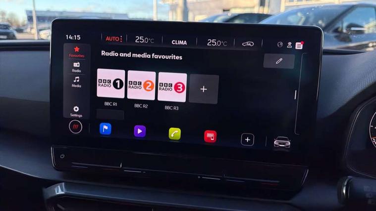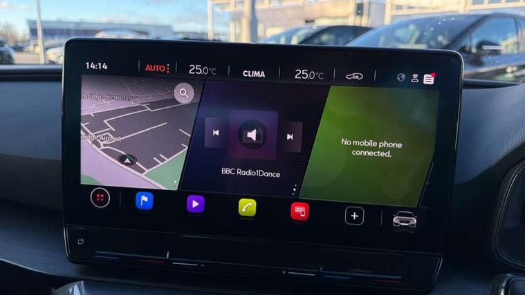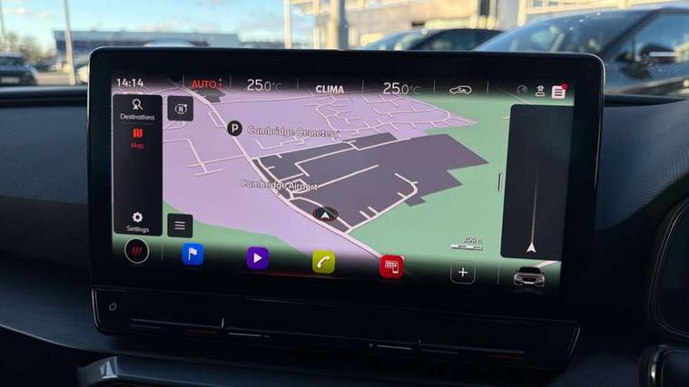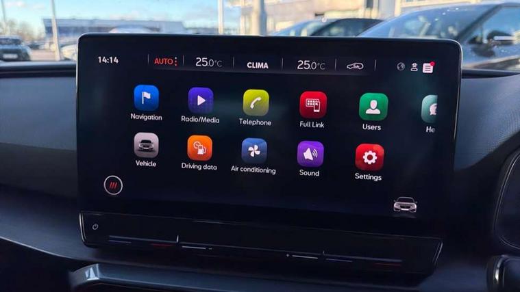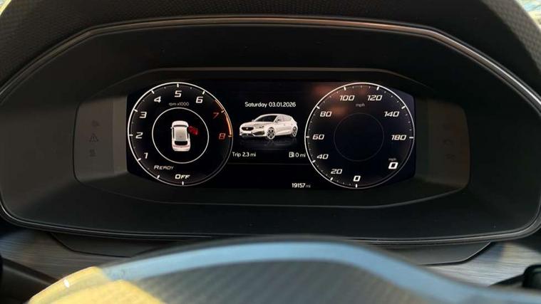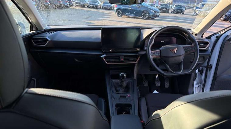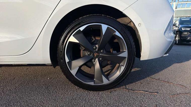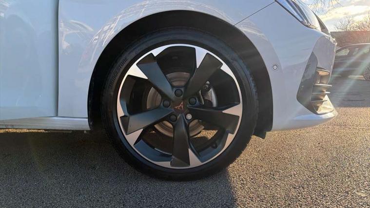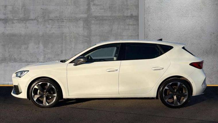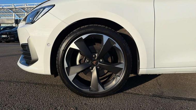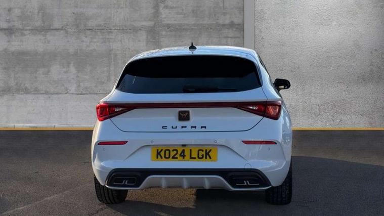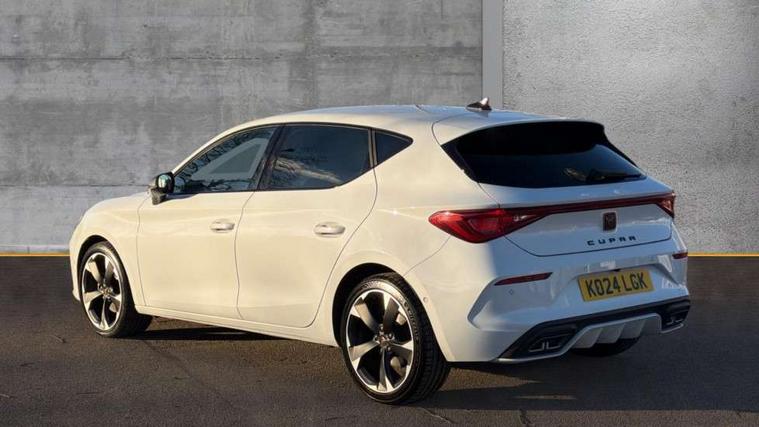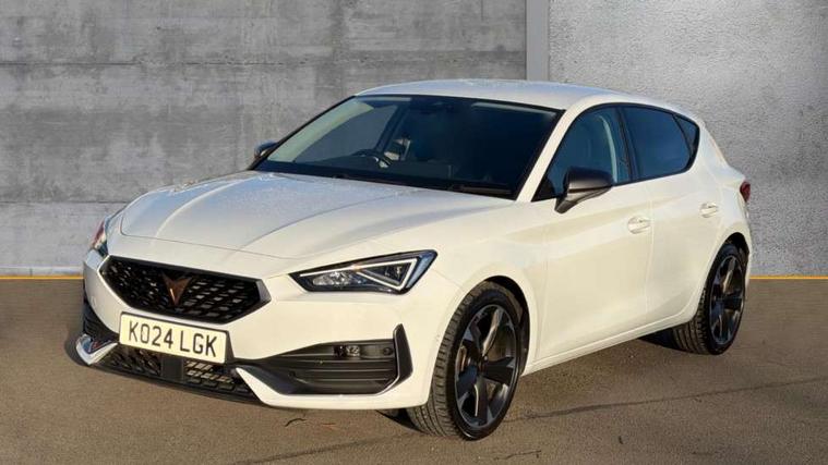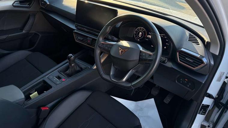 CUPRA drive profile selection with (Comfort/Sport/Individual), throttle response and gearshift mode, Digital cockpit, E-call, Electro mechanical speed sensitive power steering, Four x USB Type C ports (2 in front and 2 in rear), Front assist with forward collision warning braking reaction to vehicles, pedestrians and cyclists, Full link smartphone integration with Mirror Link, wireless Apple CarPlay and wired Google Android Auto, Lane assist, Lockable tailgate, Park assist (inc front/rear parking sensors), Rear view camera, RPM, trip computer, outside temp gauge, instrument light brightness, low fuel warning light, lights on reminder, gearshift indicator, Service interval indicator, Start/stop system with regenerative braking, Wireless phone charger, Sports suspension, Auxiliary input socket, Auto dimming rear view mirror, Body colour door handles, Body coloured bumpers, Cupra sports bumpers, Dark tinted rear windows, Electric front/rear windows, Electrically adjustable, heated and folding door mirrors, LED front fog lamps with cornering function, LED headlights with dynamic turn signals, tail lights, rear fog lights with rear coast to coast lighting, Rain sensing wipers, Rear diffuser with twin exhaust pipe on each side, Rear side wing doors, Rear wash/wipe, Separate daytime running light with automatic headlight control and coming home feature, Third brake light, 12v power supply in centre console, 3 seat bench in 2nd row, 5 headrests, 60/40 split rear bench seat with armrest, Ambient lighting with glovebox, footwell and single monocolour, Cupra Leather flat bottomed, perforated steering wheel, Driver/passenger manual seat height adjustment, Folding boot cover, Front and rear reading lights X 4, Front centre armrest, Front seats manual lumbar adjustment, Grey headlining, Height/reach adjust steering wheel, Illuminated interior front door sills, ISOFIX points in outer rear seats with top tether anchorage points, Jack and tool kit, PVC/Cloth upholstery with copper stitching, Single front passenger seat, Sports seats, Sunvisors with illuminated mirror, Three zone climate control, Media system plus with navigation pack - Leon Cupra, Safety and driving pack (M) - Cupra leon, 3 point seatbelts on all rear seats, ABS, Brake control system - ESC and brake booster, Child proof door locks, Cupra black brake calipers, Driver and front passenger airbags with front passenger airbag de-activation, front side and curtain airbags, Electronic parking brake, Extended safety system - seat belt tensioner, window closure and hazard lights, Hill hold control, Rear disc brakes, Seat belt reminder for front and rear seats, Tiredness recognition system, Tyre pressure monitoring system, Anti theft alarm system with interior monitoring in cab, backup horn and towing protection, KESSY Advanced - Keyless start, keyless entry, Locking wheel bolts, Chrome and copper interior detailing, 18" Machined sport black and silver alloy wheels with 92Y tyres,
