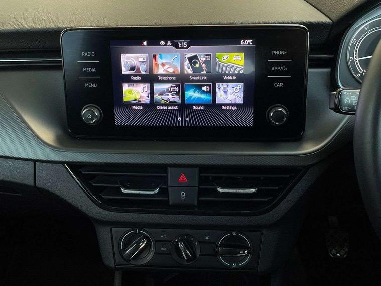 Bluetooth system, E-call, Front assist system, PAS, Service indicator, Speed limiter, Wireless Smartlink for Apple CarPlay (wired for Android Auto), 8 Speakers, Auxiliary input socket, DAB Digital radio, Body colour bumpers, Body colour door mirrors and handles, Chrome grille surround, Dimming rear view mirror with black surround, Electrically adjustable and heated door mirrors, Front and rear electric windows, Headlight range control, Heated rear window, LED rear lights - low functionality, LED third brake light, Light sensors, Rain sensor, Rear fog lights, Rear side wing doors, Rear wiper, 12V Accessory socket in centre console, 3 seat bench in 2nd row, Chrome inner door handles, Cloth upholstery, Front head restraints, Glove compartment with illumination, Ice scraper, Isofix child seat fittings on outer rear seats, ISOFIX on front passenger seat, Manual lumbar support for front seats, Rake/reach adjustable steering wheel, Reading lights, Single front passenger seat, Sun visors with illumination on front passenger, Textile floor mats, Third rear headrest, Top tether for front passenger seat, Umbrella in driver's door, 3x3 point rear seatbelts, Airbags - driver and front passenger, ESP, Front passenger airbag deactivation switch, Front side airbags with curtain airbags, Hill hold control, Manual parking brake, Manual rear child locks, One tone horn, Rear disc brakes, Seatbelt reminder for driver an co-driver, Traction control, Tyre pressure monitor, Anti-theft alarm system with interior monitoring, backup horn, towing protection and remote central locking with SAFE system, Anti-theft wheel bolts, Electronic engine immobilizer,