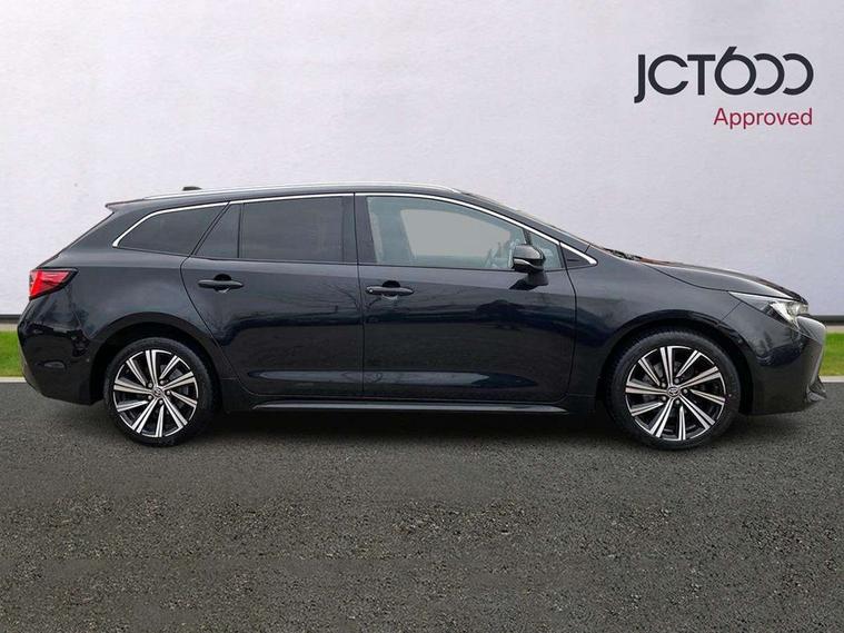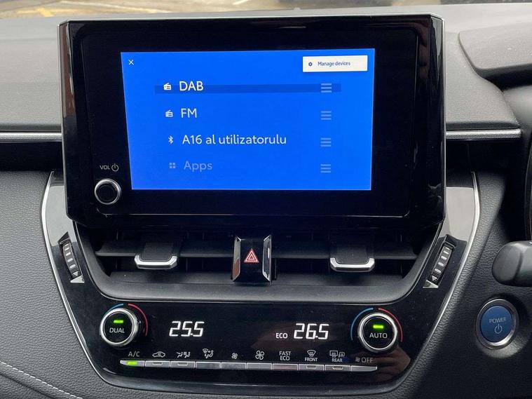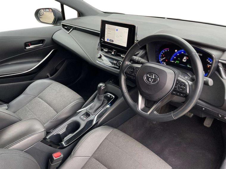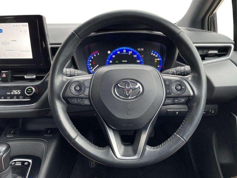 7" Multi information display screen, Bluetooth telephone connectivity, Connected car functionality upgrade, tracker, remote status and e-care, Door trim and centre console material, Dynamic radar cruise control (with RSA) including switch on steering wheel, E-call, Electrically assisted power steering, EV drive indicator, Intelligent park assist, Lane Departure Alert (LDA) switch on steering wheel, Memory on adjustable speed limiter, Push button start, Reversing camera, Smartphone integration with Apple CarPlay and Android auto, Gasoline particulate filter, Vehicle Stability Control (VSC), 6 speakers, 8" Touchscreen with MM19 Multimedia system and voice recognition, AM/FM radio, DAB Digital radio, Toyota touch 2 with go navigation system, USB and Aux in connectors + 12V front outlet, USB charging port in centre storage box, Aluminium roof rails, Anti-jam protection on power windows, Auto dimming inside rear view mirror, Auto up and down function on all power windows, Automatic folding mirrors, Automatic headlights with high beam assist, Black metallic surround on lower front grille, Black toyota logo in front, Body colour rear spoiler, Body coloured bumpers, Body coloured door mirrors, Body coloured outside door handles, Follow me home headlights, LED daytime running lights, LED front fog lights, LED Headlights, LED High mounted stop light, LED rear combi lights with LED lightguide, Noise reduction layer on front windows, Power adjustable heated door mirrors, Power front windows, Power rear windows, Privacy glass, Rain sensing wipers, Rear side wing doors, Rear window defogger, Rear window wiper, Reverse tilting door mirrors, Shark fin antenna, Time adjustment on intermittent wiper, Turning signal integrated indicators in door mirrors, Unique lower skirt, Unique side rocker with black insert, UV-filter on driver and passenger windows, 12v power outlet - luggage side, 3 rear headrests, 3 seat bench in 2nd row, 3 spoke leather steering wheel + gear knob, 60/40 split folding rear seat, Adjustable speed limiter switch on steering wheel, Audio, multimedia and telephone switches on steering wheel, Blue ambient interior illumination to centre tray, front cup holders and front door trim, Boot light, Boot underfloor storage, Clean air filter, Driver and front passenger personal light, Driver and passenger assist grip, Driver and passenger sun visor with mirror and light, Dual sided deck board in boot, Dual zone automatic air conditioning with ECO mode switch, Fabric/synthetic leather upholstery, Front and rear cup and bottle holders, Front and rear door pockets, Front head restraints, Front passenger seat, Heated driver and front passenger seats, Illuminated entry system in room lamp, ISOFIX seat fixing (2 fixings on rear outer seats), Leather gear shift with satin chrome on gear shift console, Leather style armrests, Manual height adjustable for driver and front passenger seat, Passenger seat back pocket, Pollen filter, Power adjustable lumbar support on driver seat, Power window switches with satin chrome inserts, Rear armrest with 2 cupholders, Rear passenger air vents, Rear passenger coat hooks (2), Rear passenger personal lights, Retractable tonneau cover with luggage partition net, Satin chrome inside door handles, Shopping bag hooks in luggage compartment, Side storage in boot, Sliding armrest on centre console box, Slow opening glovebox with lights, Tilt/telescopic steering column, Tonneau cover with under floor storage, Voice recognition switch on steering wheel, Whiplash Injury Lessening (WIL) feature (active headrest) for seats, Parking pack - Corolla, Toyota safety sense 2 pack - Corolla, 3x3 point rear seatbelts, Adjustable driver and front passenger seat belt extender to top anchor point, Anti lock braking system + Electronic brake force distribution, Brake assist function, Child locks on rear doors, Downhill Assist Control (DAC), Electronic parking brake, Emergency brake light signal (EBS), Front passenger airbag on/off switch, Front seatbelt reminder, HAC - Hill start assist control, Rear seat belt reminder, Seatbelt pretensioners and force limiters, Supplemental restraint system (SRS) 7 airbags - dual driver, dual side curtain, side impact and driver knee airbags, Traction control, Tyre pressure warning system, Acoustic vehicle alert system (AVAS), Alarm with motion sensor and immobilizer, Remote central locking + deadlocks, Smart entry, Satin chrome dash trim, Soft touch texture on upper dashboard, Stitching on lower dashboard, Tyre repair kit, Unique wheel finish with red wheel cap,