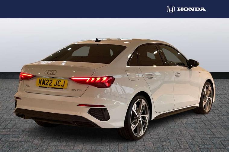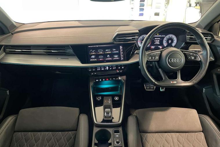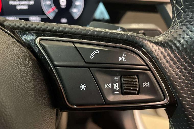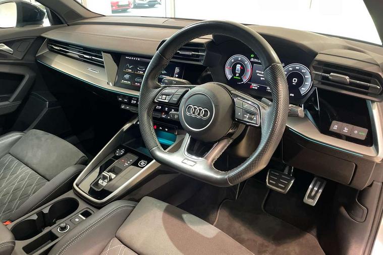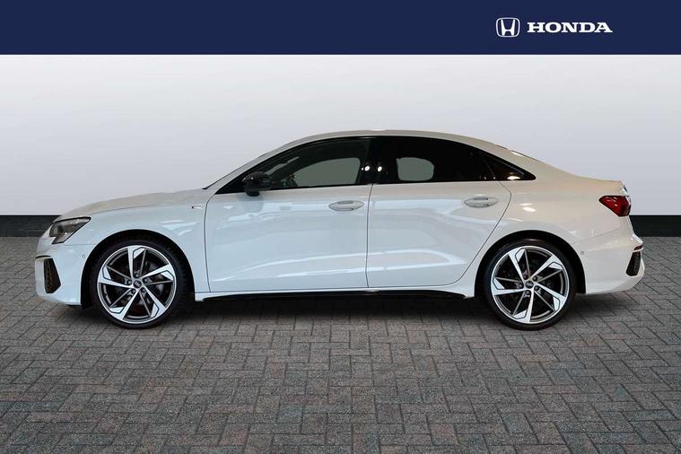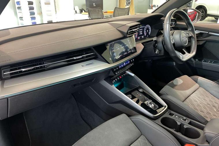 Audi connect emergency call and service, Audi drive select (Auto, Comfort, Dynamic, Efficiency and Individual), Audi smartphone interface, Audi virtual cockpit plus - 12.3" dynamic digital instrument cluster, Automatic start/stop system with recuperation, Bluetooth interface, Collision avoidance assistant, Electromechanical power speed sensitive steering, Lane departure warning system, MMI Navigation Plus with high resolution 10.1" colour touch screen display, Service indicator, Voice control system with natural language interaction, Diesel particulate filter, Sports suspension, 2x USB Type C ports (for charging and data transfer), 6 passive loudspeakers, CD player, DAB Digital radio, 3rd brake light, Acoustic glass windscreen, Audi matrix LED headlights, LED rear lights, dynamic front and rear indicators and headlight cleaning system, Auto dimming frameless rear view mirror, Electrically adj heated/folding + automatically dimming exterior mirrors with memory + automatic kerb side function for passenger side exterior mirror, Front electric windows, Illuminated door sills with aluminium inserts at the front with S logo, Integrated LED indicators in door mirrors, LED daytime running lights, Light and rain sensors, Model and engine designation badges at rear, Privacy glass - dark tinted rear window, rear door and side windows, Rear boot, Rear electric windows, Rear side wing doors, S roof spoiler, 12V socket and storage compartment in front centre console, 3 seat bench in 2nd row, 4 way electrically adjustable lumbar support for driver and front passenger, 40/20/40 split folding rear seat bench with cupholder, Black cloth headlining, Dual zone electronic climate control, Electrically adjustable front seats with memory function for driver's side and exterior mirrors, Front and rear centre armrest in leather, Front and rear headrests, Front/rear floor mats, Heated front seats, Height and reach adjustable steering wheel, Illuminated vanity mirror, Interior lighting - glove compartment light and right hand side, Luggage compartment floor covering, Single front passenger seat, Stainless steel pedals and front footrest in black, Aluminium interior elements pack - A3 Saloon, Dinamica microfibre/mono.pur 550 artificial leather pack - A3 Saloon, 3x3 point rear seat belts, Driver and front passenger airbag with passenger airbag deactivation, Electronic Stabilisation Control (ESC) including ABS, ASR and EDL, First aid kit with warning triangle and 2 safety vests, Front side airbags with head airbags and interaction airbag, Hill hold assist, Pre-sense front with pedestrian and cyclist detection, Seatbelt monitoring, Tyre pressure loss indicator, Anti theft alarm, Anti-theft wheel bolts, Immobiliser, Manual child locks, Remote control central locking, Aluminium air vent surrounds, Aluminium trim elements, Dark spectrum aluminium inlays, accent surfaces in the dashboard and centre console in platinum grey silk effect paint finish, 19" 5 arm trapezoid design alloy wheels in titanium matt grey with diamond cut finish,