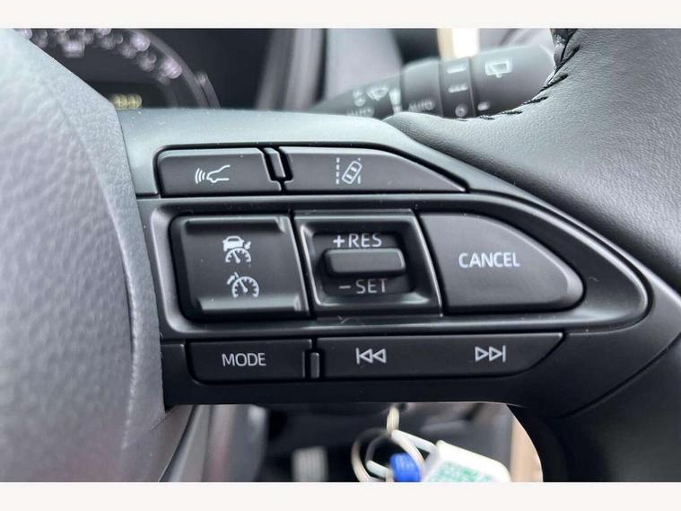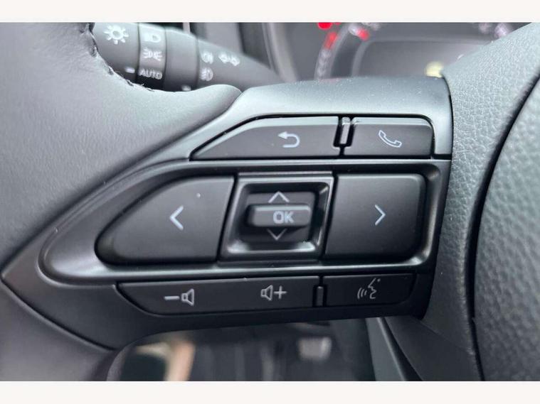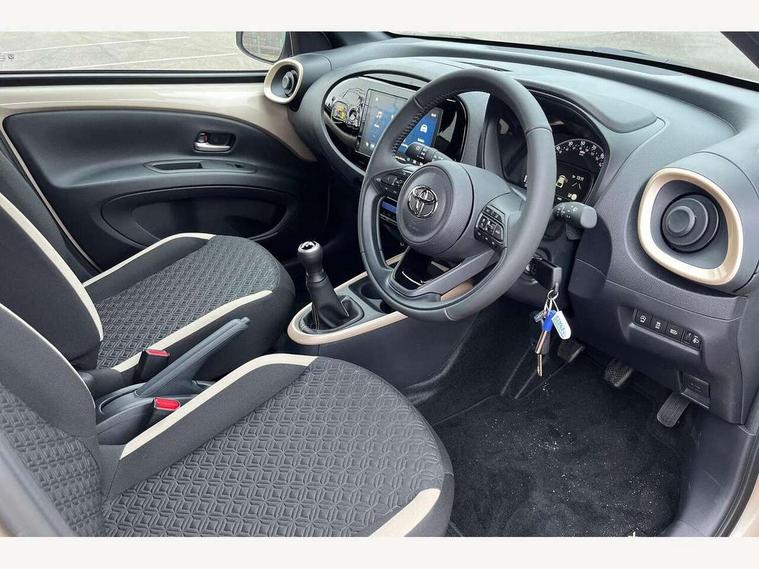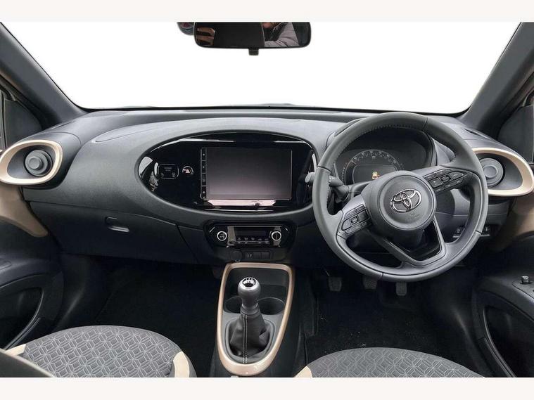 4.2" TFT colour screen, Adjustable speed limiter, Analogue speedometer, Bluetooth connectivity, Digital tachograph, Driver attention alert system, eCall emergency call system, Electric power steering, Intersection turn assist, Key reminder warning, Noise reduction kit, Pre collision system with emergency steering assist, Reversing camera with static guide lines, Smart phone integration with Apple car play/Android Auto, Speed limit display, Start and stop, Vehicle Stability Control (VSC), 4 speakers, 9" HD multimedia display touch screen with Toyota smart connect, DAB digital audio broadcast, USB connector, Auto headlights, Auto wipers, Automatic headlights cut-off, Bicycle towing hook, Black contrast roof, Black side protection mouldings, Black wheel arch mouldings, Body colour door handles, Body coloured front bumper, Boot door scuff plate, Eclipse black rear bumper, Electric heated door mirrors, Follow me home headlights, Front fog lights, Front power windows, Gloss black door mirrors, Gloss black upper front grille, Headlight cut-off reminder, LED daytime running lights, LED front light guide, LED High mounted stop lamp, Manual day/night rear view mirror, Manual headlight levelling, Pagoda roof, Power adjustable door mirrors, Power back door, Privacy glass, Projector halogen headlights, Rain sensor, Rear combination lights LED bulb type, Rear side wing doors, Rear windscreen defogger, Rear windscreen wiper, Short antenna, Variable intermittent windscreen wipers, 12v power outlet - front, 2 seat bench in 2nd row, 3 spoke leather steering wheel, 50/50 split folding rear seat, Adhesive roof headlining, Adjustable speed limiter switch on steering wheel, Audio and telephone switches on steering wheel, Auto air conditioning, Black insert on steering wheel, Black roof lining, Boot light, Centre room light, Chrome interior door handles, Chrome surround on air conditioning buttons, Clean air filter, Console box storage in body color, Fabric upholstery, Floor mats, Front and rear cup holders, Front head rest deco art, Front head restraints, Height adjustable driver seat, Intelligent adaptive cruise control switch on steering wheel, ISOFIX child restraint system on rear seats, Lane departure alert switch on steering wheel, Leather gearshift knob, Manual tilt steering wheel, Manually reclining and sliding driver seat, Manually reclining and sliding front passenger seat, Multimedia switches on steering wheel, Pollen filter, Rear door pockets, Rear head restraints, Satin silver insert on gear shift knob, Single compartment glovebox with lights, Single front passenger seat, Soft tonneau cover, Sun visors with mirror on driver and passenger side, Voice recognition switch on steering wheel, Toyota safety sense pack - Aygo X, Anti lock braking system + Electronic brake force distribution, Child safety door lock, Emergency brake light signal (EBS), Hill start assist control (HAC), Passenger airbag on/off switch, Seat belt reminder for front and rear seats, Supplement restraints system (SRS) - 6 airbags, Traction control, Tyre pressure warning system, Immobiliser, Remote power door locks, Black wheel centre caps, Tyre repair kit,
