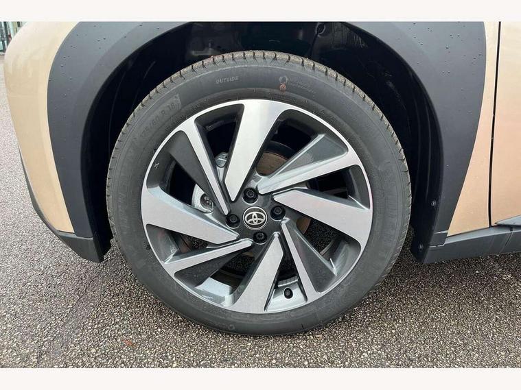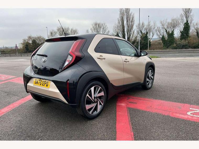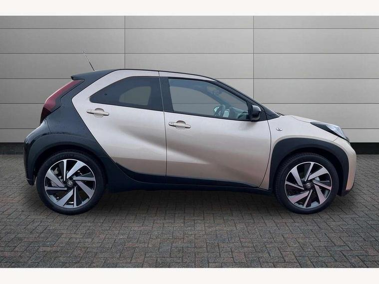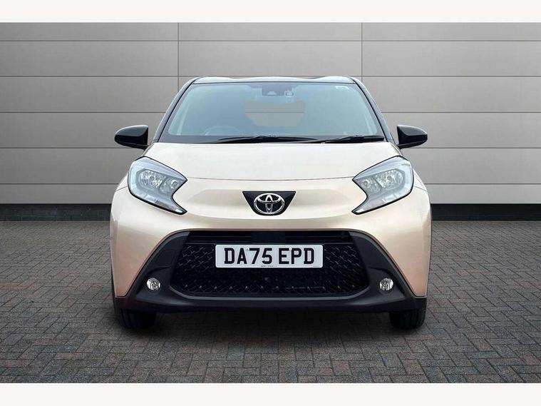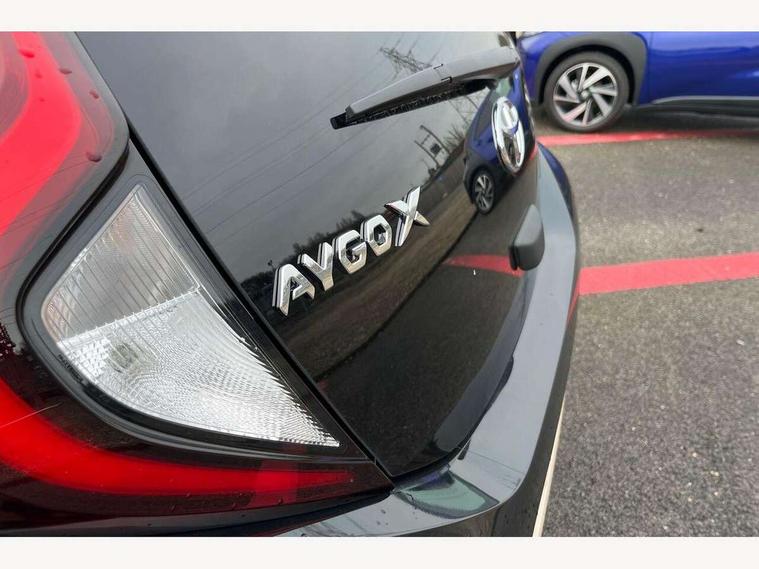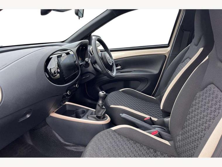 4.2" TFT colour screen, Adjustable speed limiter, Analogue speedometer, Bluetooth connectivity, Digital tachograph, Driver attention alert system, eCall emergency call system, Electric power steering, Intersection turn assist, Key reminder warning, Noise reduction kit, Pre collision system with emergency steering assist, Reversing camera with static guide lines, Smart phone integration with Apple car play/Android Auto, Speed limit display, Start and stop, Vehicle Stability Control (VSC), 4 speakers, 9" HD multimedia display touch screen with Toyota smart connect, DAB digital audio broadcast, USB connector, Auto headlights, Auto wipers, Automatic headlights cut-off, Bicycle towing hook, Black contrast roof, Black side protection mouldings, Black wheel arch mouldings, Body colour door handles, Body coloured front bumper, Boot door scuff plate, Eclipse black rear bumper, Electric heated door mirrors, Follow me home headlights, Front fog lights, Front power windows, Gloss black door mirrors, Gloss black upper front grille, Headlight cut-off reminder, LED daytime running lights, LED front light guide, LED High mounted stop lamp, Manual day/night rear view mirror, Manual headlight levelling, Pagoda roof, Power adjustable door mirrors, Power back door, Privacy glass, Projector halogen headlights, Rain sensor, Rear combination lights LED bulb type, Rear side wing doors, Rear windscreen defogger, Rear windscreen wiper, Short antenna, Variable intermittent windscreen wipers, 12v power outlet - front, 2 seat bench in 2nd row, 3 spoke leather steering wheel, 50/50 split folding rear seat, Adhesive roof headlining, Adjustable speed limiter switch on steering wheel, Audio and telephone switches on steering wheel, Auto air conditioning, Black insert on steering wheel, Black roof lining, Boot light, Centre room light, Chrome interior door handles, Chrome surround on air conditioning buttons, Clean air filter, Console box storage in body color, Fabric upholstery, Floor mats, Front and rear cup holders, Front head rest deco art, Front head restraints, Height adjustable driver seat, Intelligent adaptive cruise control switch on steering wheel, ISOFIX child restraint system on rear seats, Lane departure alert switch on steering wheel, Leather gearshift knob, Manual tilt steering wheel, Manually reclining and sliding driver seat, Manually reclining and sliding front passenger seat, Multimedia switches on steering wheel, Pollen filter, Rear door pockets, Rear head restraints, Satin silver insert on gear shift knob, Single compartment glovebox with lights, Single front passenger seat, Soft tonneau cover, Sun visors with mirror on driver and passenger side, Voice recognition switch on steering wheel, Toyota safety sense pack - Aygo X, Anti lock braking system + Electronic brake force distribution, Child safety door lock, Emergency brake light signal (EBS), Hill start assist control (HAC), Passenger airbag on/off switch, Seat belt reminder for front and rear seats, Supplement restraints system (SRS) - 6 airbags, Traction control, Tyre pressure warning system, Immobiliser, Remote power door locks, Black wheel centre caps, Tyre repair kit,
