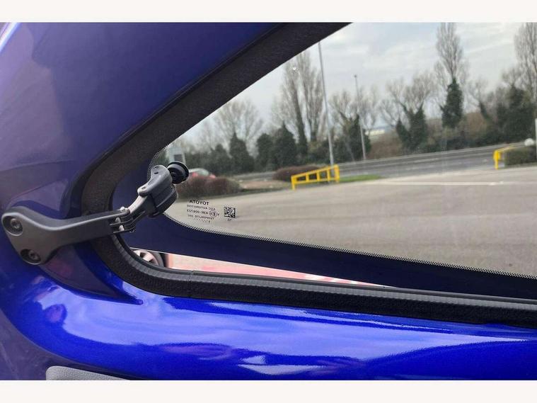 4.2" TFT colour screen, Adjustable speed limiter, Analogue speedometer, Bluetooth connectivity, Digital tachograph, Driver attention alert system, eCall emergency call system, Electric power steering, Intersection turn assist, Key reminder warning, Noise reduction kit, Pre collision system with emergency steering assist, Reversing camera with static guide lines, Smart phone integration with Apple car play/Android Auto, Speed limit display, Start and stop, Vehicle Stability Control (VSC), 4 speakers, 9" HD multimedia display touch screen with Toyota smart connect, DAB digital audio broadcast, USB connector, Auto headlights, Auto wipers, Automatic headlights cut-off, Bicycle towing hook, Black contrast roof, Black side protection mouldings, Black wheel arch mouldings, Body colour door handles, Body coloured front bumper, Boot door scuff plate, Eclipse black rear bumper, Electric heated door mirrors, Follow me home headlights, Front fog lights, Front power windows, Gloss black door mirrors, Gloss black upper front grille, Headlight cut-off reminder, LED daytime running lights, LED front light guide, LED High mounted stop lamp, Manual day/night rear view mirror, Manual headlight levelling, Pagoda roof, Power adjustable door mirrors, Power back door, Privacy glass, Projector halogen headlights, Rain sensor, Rear combination lights LED bulb type, Rear side wing doors, Rear windscreen defogger, Rear windscreen wiper, Short antenna, Variable intermittent windscreen wipers, 12v power outlet - front, 2 seat bench in 2nd row, 3 spoke leather steering wheel, 50/50 split folding rear seat, Adhesive roof headlining, Adjustable speed limiter switch on steering wheel, Audio and telephone switches on steering wheel, Auto air conditioning, Black insert on steering wheel, Black roof lining, Boot light, Centre room light, Chrome interior door handles, Chrome surround on air conditioning buttons, Clean air filter, Console box storage in body color, Fabric upholstery, Floor mats, Front and rear cup holders, Front head rest deco art, Front head restraints, Height adjustable driver seat, Intelligent adaptive cruise control switch on steering wheel, ISOFIX child restraint system on rear seats, Lane departure alert switch on steering wheel, Leather gearshift knob, Manual tilt steering wheel, Manually reclining and sliding driver seat, Manually reclining and sliding front passenger seat, Multimedia switches on steering wheel, Pollen filter, Rear door pockets, Rear head restraints, Satin silver insert on gear shift knob, Single compartment glovebox with lights, Single front passenger seat, Soft tonneau cover, Sun visors with mirror on driver and passenger side, Voice recognition switch on steering wheel, Toyota safety sense pack - Aygo X, Anti lock braking system + Electronic brake force distribution, Child safety door lock, Emergency brake light signal (EBS), Hill start assist control (HAC), Passenger airbag on/off switch, Seat belt reminder for front and rear seats, Supplement restraints system (SRS) - 6 airbags, Traction control, Tyre pressure warning system, Immobiliser, Remote power door locks, Black wheel centre caps, Tyre repair kit,