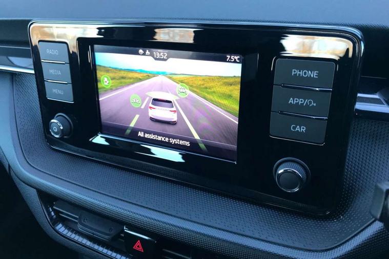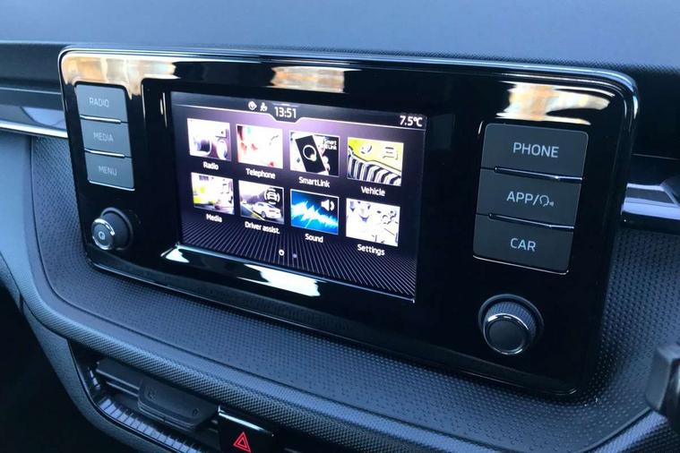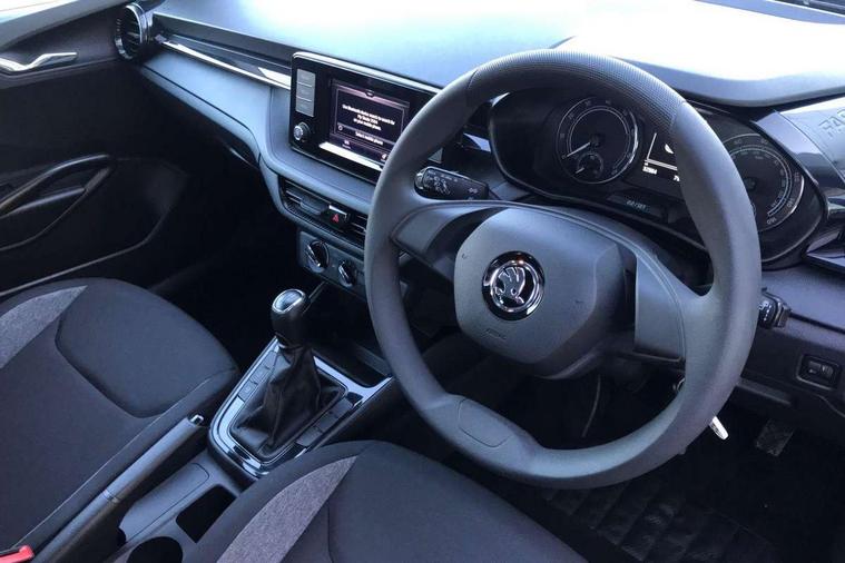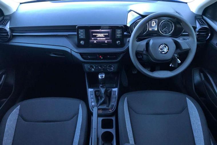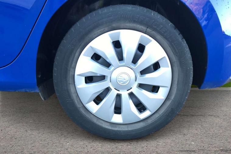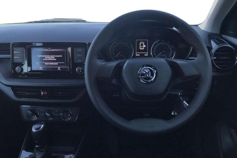 Bluetooth connection, Driver alert system - DAS, Electromechanical power steering, Exterior temperature gauge, Lane assist including road edge detection, Multifunction trip computer in black and white, Service interval indicator, Speed limiter, 2x USB-C in the front (for data transmission and charging), 4 speakers in front, Auxiliary socket for external MP3 player, DAB digital radio reception, Radio Swing with 6.5" colour display, Basic LED Headlights, Basic rear lights, Body colour door mirrors, Body coloured bumpers, Dimming rear view mirror with black frame, Door mirror integrated indicators, Electrically adjustable and heated door mirrors, Electrically adjustable front windows with function auto up/down, Front window wiper intermittent control, Headlight range control - Automatic, Ice scraper in fuel cap, LED daytime running lights with coming and leaving home feature, Mechanical adjustable rear windows, Rain sensor, Rear LED fog light, Rear side wing doors, Rear window wiper with washing nozzles, Roof mounted spoiler, SKODA tailgate lettering in chrome, Third brake light, 2 reading lights in front and 2 reading lights in rear, 2 spoke plastic steering wheel, 3 rear headrests, Backrest split and folding, Central console with fixed cup holder and storage box, Fabric upholstery, Gearshift knob/handle in plastic, Grain satin black interior door handles, Hand brake lever in plastic, Height adjustable drivers seat, Height adjustable front headrests, Height adjustable steering wheel, ISOFIX and TopTether anchorage points to the outer rear seats, ISOFIX and TopTether on the front passenger seat, Luggage compartment lighting, Manual air conditioning, Pollen filter, Rear seat bench unsplit, Single front passenger seat, Storm grey headlining, Sun visors with mirror and airbag label on passenger side, Ticket holder, 3-point height adjustable front seats belts with pretensioner and force limiter, Automatic warning lights in case of crash, Driver and passengers airbag with switch off function, e-Call+, ESC including ABS, MSR, ASR, EDS, HBA and XDS, Front and rear seat belt warning, FRONT ASSIST (AEB City and AEB Inter Urban), Front side airbags, Head airbags, One tone horn, Pedestrian protection, Three rear 3-points safety seat belts with pretensioner and force limiter including stop function for outer rear seat belts, Tyre pressure monitoring system, Anti-theft alarm system including immobiliser, interior monitoring, backup horn, and towing protection, Central locking with radio remote control, interior controls, SAFE function and 2 foldable keys, Black painted air vents, Glossy black decorative trim, Grain satin black central console cover, Grain satin black lower decorative trim, Satin black door and side trim panel in front, 15" Calisto silver steel wheels, Standard wheel bolts, Super-low rolling resistance tyres,