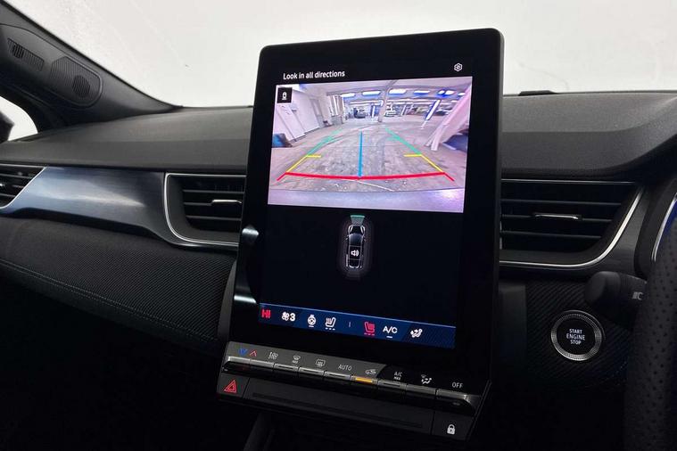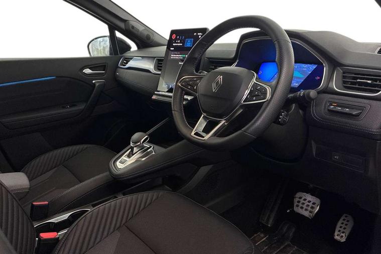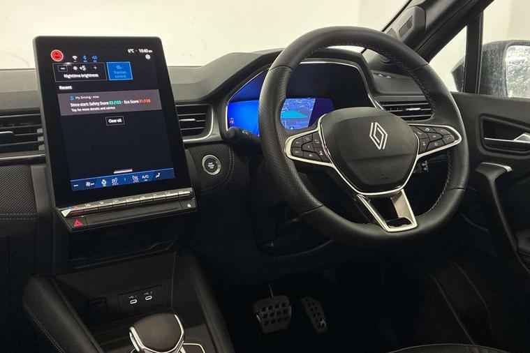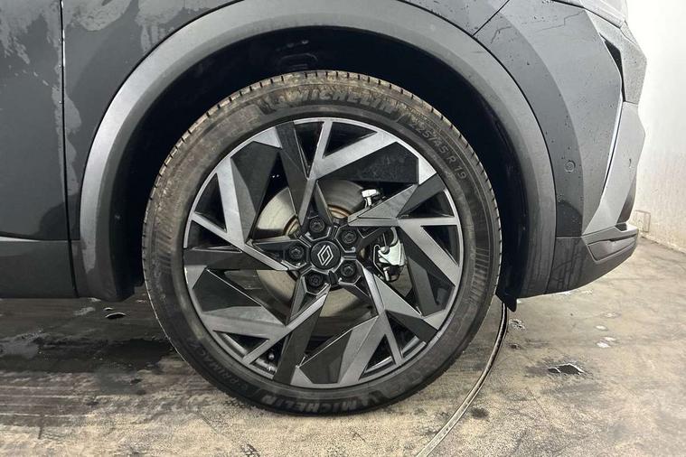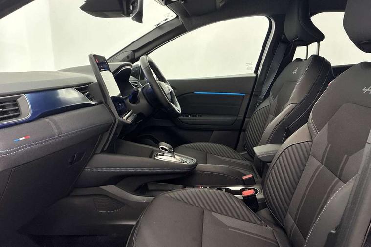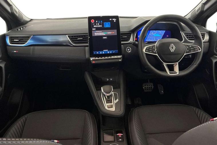 10.25" digital driver display, 10.4" OpenR link touchscreen with with built in Google Automotive Services and navigation, Adaptive cruise control with speed limiter, Blind spot warning and rear detection, Driver attention alert system, Eco mode driving function, Front, rear and side parking sensors, Front/rear detection with emergency lane keep assist incl. solid line, oncoming traffic and road edge detection, Gear change indicator, Lane centering assist, Multi Sense - 3 driving modes and up to 48 ambient lighting colours, My safety switch - ability to personalise ADAS features at press of a button, PAS, Power hands-free tailgate opening, Rear cross traffic/pedestrian alert with rear braking assitance, Rear view camera, Renault automatic emergency assist, Traffic sign recognition with overspeed prevention, Trip computer, Wifi smartphone integration compatible with Apple CarPlay and Android Auto, Wireless phone charger, 2 front and 2 rear USB-C ports, Arkamys speakers - x6 inc. 2 boomer, 2 tweeter and 2 bicone, DAB radio with Bluetooth, Automatic headlights, Automatic high / low beam, Automatic windscreen wipers with rain sensor, Dark tinted rear windows and tailgate, Electric adjustable/heated/auto folding door mirrors, Esprit alpine exterior styling, Frameless auto dimming rear view mirror, Front and rear electric windows with driver window one touch facility and anti pitch function, Front matte grey and rear skid plates, Full LED front and rear lights, Gloss black window surround, Heated rear window, LED daytime running lights, LED rear fog lights, LED third brake light, Radiator grille with 3D graphics in black upper part with grey graphics and body tone lower part, Rear side wing doors, Rear wiper, Shark fin antenna, 2 front roof LED lights and central rear rooflight with 3 reading LED lights, 3 seat bench in 2nd row, Aluminium sports pedals, Automatic air conditioning with one touch quick demist function and air quality regulator, Driver and front passenger seat with electric height adjustment, Esprit alpine interior styling, Flying console with central storage, sliding armrest and 2 rear air vents, Front and rear head restraints, Heated front seats, Heated synthetic leather steering wheel, Height and depth adjustable steering wheel, ISOFIX child seat fixing points on rear outermost seats, Modular boot floor, Rear seats - 1/3:2/3 foldable sliding bench, Recycled fabric upholstery, Single front passenger seat, Sunvisor with mirror and light, 3x3 point rear seatbelts, Abs with emergency brake assist, Active emergency braking system - Urban and pedestrian/cyclist, Distance warning alert, Driver and front passenger and 3 rear passengers seatbelt reminder, Driver and front passenger, side, head and curtain airbags, Driver height adjustable seat belt, Electronic parking brake with auto hold function, Front passenger airbag deactivation, Hill start assist, Occupant safe exit, Rear window and door child locking function, Tyre pressure warning light, Central door locking, Hands free keycard with Keyless access and start, Brushed blue decorative upper strip, Lower textile strip on dashboard with red, white and blue flag, 19" Esprit alpine elixir alloys wheels,