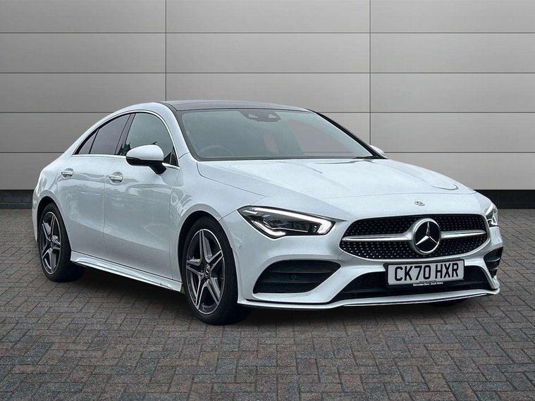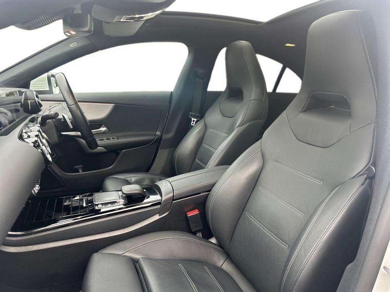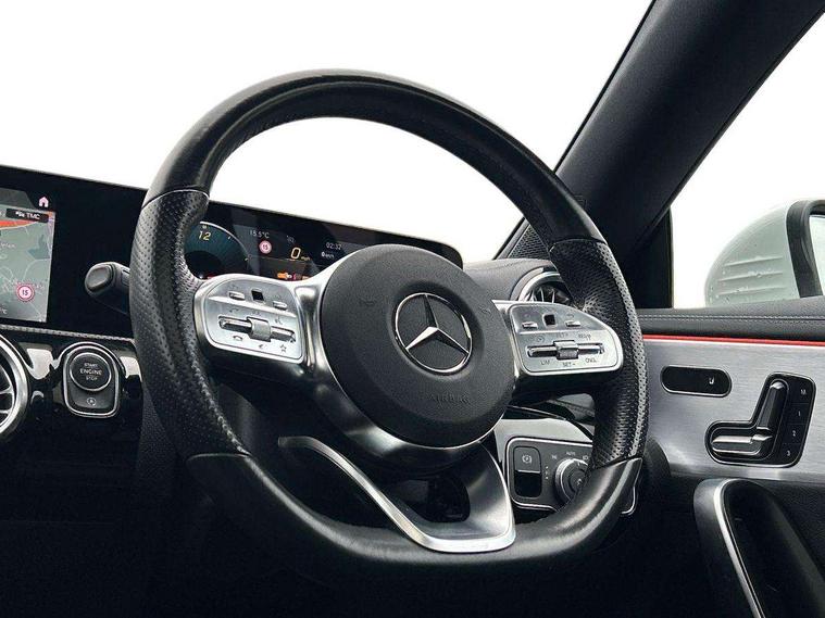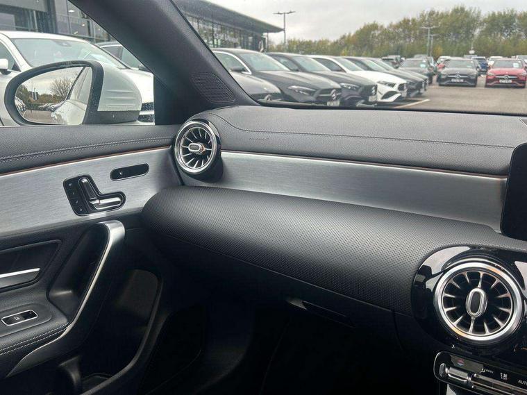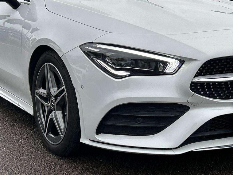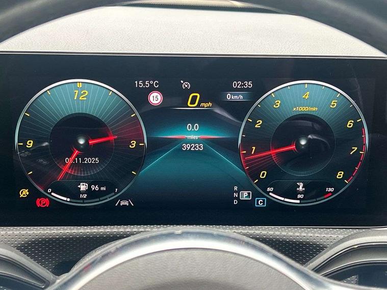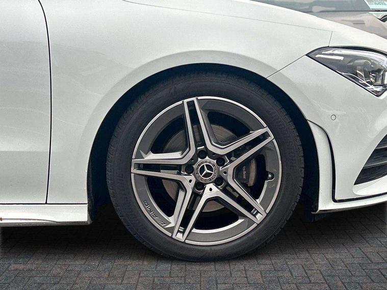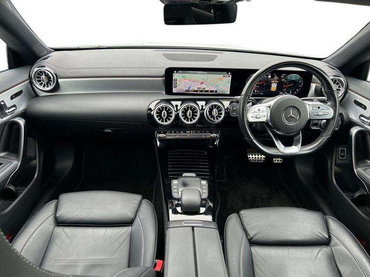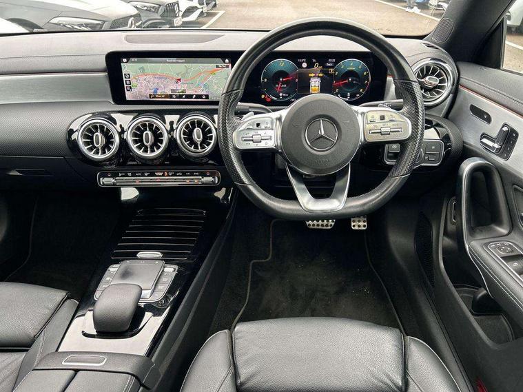 10.25 inch Instrument display with digital cockpit, 10.25 inch touchscreen central media display, Attention assist - Monitors steering behaviour and long journey fatigue, Bluetooth connection, Car wash mode, DYNAMIC SELECT with a choice of driving modes (ECO, Comfort, Sport and Individual), ECO start/stop function, Fluid level warning indicator for fuel, oil, coolant and washer fluid, Hard-disk navigation, Hey Mercedes Voice activation, Lamp failure indicator, MBUX augmented reality for navigation, Mercedes me connect including emergency call system, accident recovery, breakdown and maintenance management, Outside temperature gauge, Owners manual and service booklet in English, Pre-installation for Vehicle Monitoring, Pre-installation for Vehicle Setup, Pre-installation of private car share, Preinstallation for Mercedes Benz link, Radio aerial integrated into front and rear windshields, Service indicator (ASSYST), Smartphone integration with Apple CarPlay and Android auto, Traffic sign assist, Trip computer in multifunction display with current consumption indicator, Wireless charging, 7G-DCT 7 speed automatic transmission, Lowered comfort suspension, Rear axle multi-link, DAB digital radio tuner, MBUX multimedia system with DAB digital radio and touchpad including satellite navigation, Mercedes Benz advanced sound system (225 W) with 10 speakers, 1 central speaker, speakers on doors, a tweeter on door, one sub woofer + boost amplifier, USB (type C) ports (2) in stowage compartment and 1 in front of centre console, Adaptive brake lights, AMG body styling with AMG front apron and rear apron and visible exhaust tailpipe in chrome trim elements, AMG bodystyling side skirts, Body colour bumpers, Body colour door handles, Chrome beltline strips, Chrome weather strip, Diamond radiator grille pins in chrome with silver painted louvres and chrome insert, Electric panoramic sliding sunroof, Electric windows, Electrically adjustable and heated door mirrors with integrated LED indicators, Exhaust system with 2 Visible tailpipe trim elements and rear apron with trim in chrome, Headlamp assist automatic headlamp activation, Heated glass rear windscreen + timer control, High level LED third brake light, Integrated LED daytime running lights, Interior mirror with black reading lamps and frameless, LED tail lamp, Multibeam LED headlamps with adaptive highbeam assist plus, Privacy glass with dark tinting on rear side windows and rear window, Rain sensing windscreen wipers with two sensitivity settings, Rear fog lamp, Window line trim strip in chrome, 3 spoke flattened bottom nappa leather multifunction steering wheel with perforated leather in grip area, 40:20:40 split folding rear seat backrests, Air conditioning - Two zone thermotronic luxury automatic climate control with display, Air vents with surround in silver chrome, Automatic child seat recognition sensor, Black roof lining, Brushed stainless steel sports pedals with rubber studs, Electrically adjustable front memory seats including lumbar support, Floor mats with stitched AMG lettering, Front centre armrest with stowage, Galvanished gear shift paddles on steering wheel, Heated front seats, Illuminated glove compartment stowage, Illuminated Mercedes benz door sills with Mercedes Benz lettering, Interior lighting - 64 colour Ambient lighting, Luggage net on driver/front passenger seat backrest, Manually height and reach adjustable steering column, Rear armrest with two integral cup holders for drinks, Rear head restraints, Sport seats with fixed head restraints, Stowage compartment in centre console with retractable cover, Sunvisors with illuminated vanity mirrors, Touchpad on center console, Twin front cupholders, Two outer rear seat isofix and top tether child seat fixing points, Keyless go pack - CLA, Light and sight pack - CLA, Mirror pack - CLA, Parking package - CLA, Seat comfort pack - CLA, Active bonnet pedestrain safety measure which detects an impact and raises bonnet by 65mm, Adaptive brake assist with hold function and hill start assist, Anti-lock braking system (ABS), Black seat belts, Bonnet with power domes, Brake pad wear warning indicator, Childproof locks manually operated for rear doors and electrically operated for rear power windows, Crash responsive emergency lighting, Driver and front passenger head and sidebags, Driver and front passenger windowbags, Drivers knee airbag, Dual stage driver and front passenger airbags, Electric parking brake, Electronic stability programme with acceleration skid control, ESP curve dynamic assist, Front and rear seatbelt reminder, Front passenger seat occupancy sensor, Three point rear seat belts, Tyre pressure monitoring system, Warning triangle and first aid kit, Remote central locking and crash sensor with emergency opening function, Urban guard vehicle protection system with immobiliser and interior protection, Light aluminium with longitudinal grain interior trim, 18" 5 twin spoke design alloy wheels painted in titanium grey with high sheen finish, Summer tyres, Tirefit tyre sealant kit,