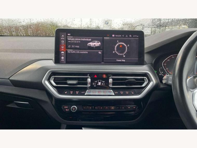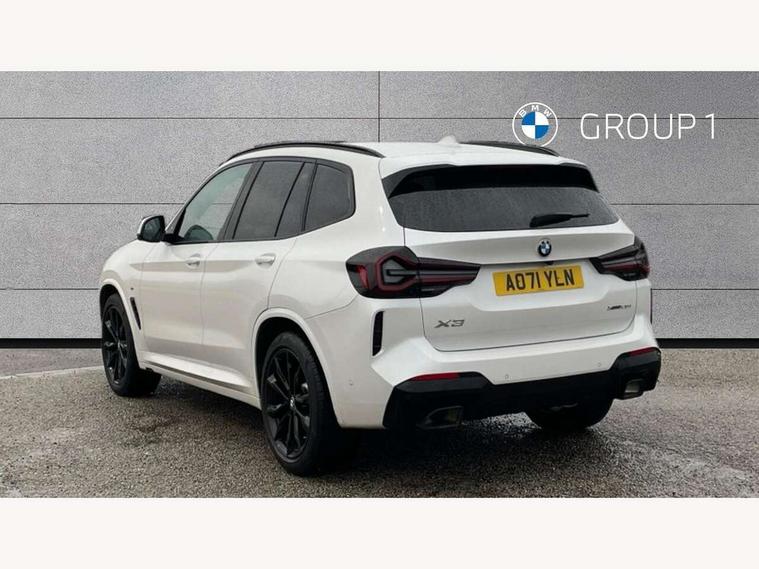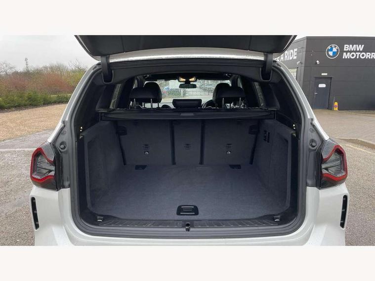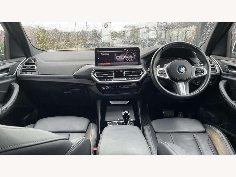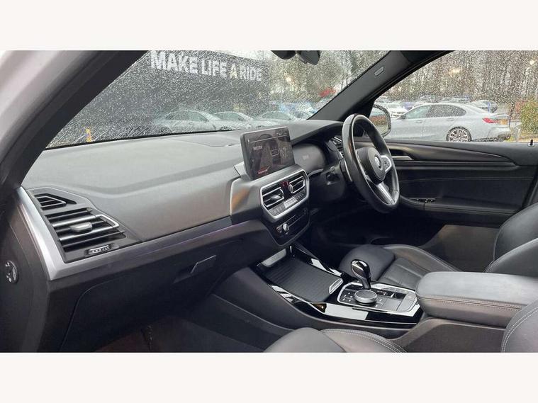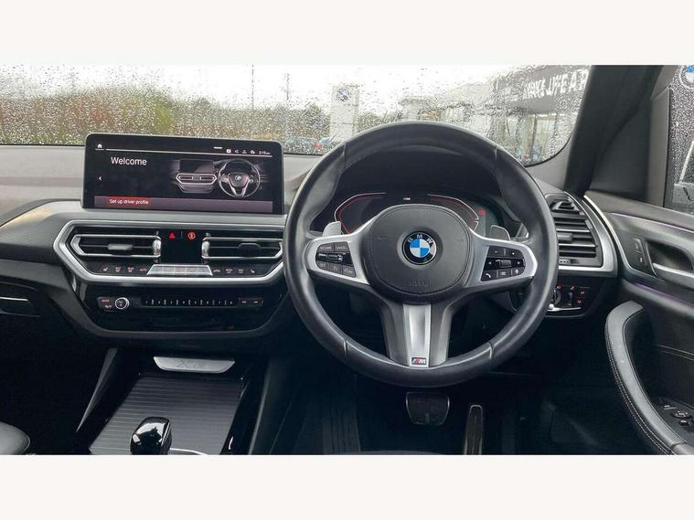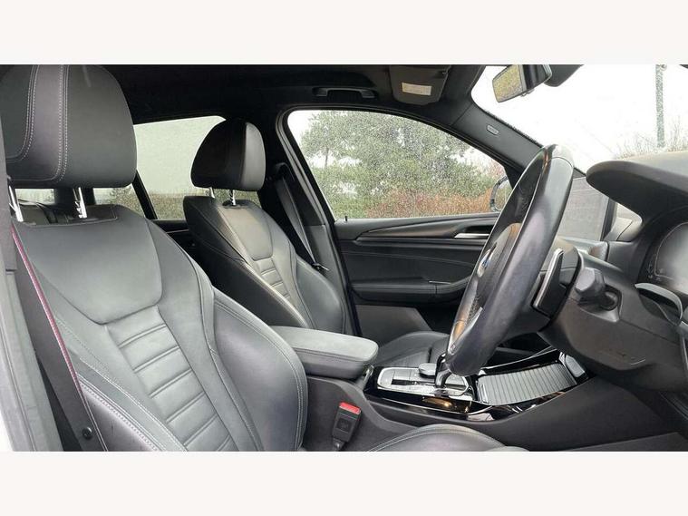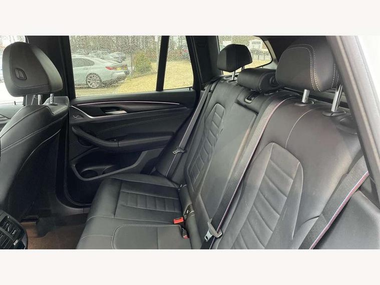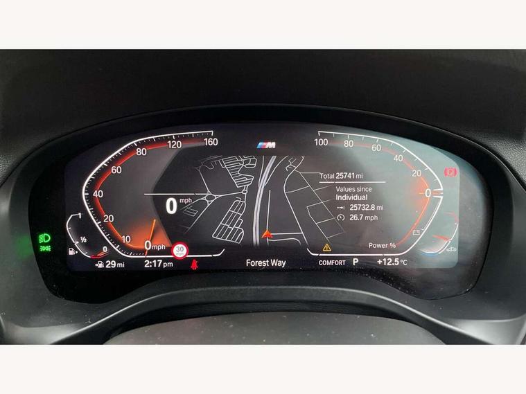 Active Guard, Attentiveness assist, BMW Live Cockpit Professional nav system including 12.3" instrument display + 12.3 high resolution control display, BMW Online services, BMW Teleservices, Brake pad wear indicator in front and rear, Check Control warning system for monitoring of lights and door/luggage compartment open warning, Condition based service - BMW service history, electronic service booklet, integrated owner's handbook, Connected drive services, Cruise control with brake function + speed limiter, Electric boot lid, Front/rear Parking distance control, iDrive Controller with 8 favourite buttons, Instrument cluster with speedometer with mph readout, tachometer, fuel gauge and oil temperature gauge, Lights on warning by audio warning signal when ignition is switched off, Oil sensor for level and grade, warning by check control system, On board computer - average speed+fuel consumption, service interval, clock/date, odometer/trip meter, outside temperature display and ice warning, Optimum shift indicator, Personal Profile - automatic lock when driving away selectable, Stop/start system, Variable sports power steering, Automatic transmission with gearshift paddles, Drive performance control with ECO PRO comfort + sport mode, Incorrect fuelling protection, M sport suspension, Multi-link rear suspension, Performance Control, BMW professional radio/CD/MP3, DAB tuner, Acoustic glazing, Automatic windscreen wipers and automatic headlight, Black finish on B pillars, Body colour door handles, Body colour electric adjust heated aspherical door mirrors, Body colour roof mouldings, Body coloured bumpers, Direction indicator, side repeaters, integrated in exterior mirrors, Dynamic brake lights, Exhaust tailpipes - dual, round, split left and right with chrome finisher, Fingertip control / anti-trap function on electric window, Folding wing mirrors with auto dimming, Follow me home headlights, Front and rear bumper system with replaceable deformation elements, Front and rear electric windows, Gloss chrome tailpipes finishers, Green tinted heat insulating glass, Heated windscreen washer jets, High beam assistant, High gloss black shadow line roof rails, High gloss shadowline exterior trim in decorative moulding side frame/recess cover/guide rail/B, C pillars/mirror frame and triangle with mirror base, High level 3rd brake light incorporating LED Technology, Interior rear view electrochromatic mirror with automatic anti dazzle function, LED tail lights, Lightweight engineering, M aerodynamic bodystyling, Model designation, Rear side wing doors, Rear wing door, Rear wiper, Shark fin antenna, Side exterior M designation badges, Visible VIN plate, Welcome lighting, Windscreen wipers with adjustable interval, 12V power socket in front centre console, 3 rear headrests, 3 zone automatic air conditioning, 4 lashing points to secure luggage, 40:20:40 split folding rear seat with loading system, 5 seats, Ambient lighting, Anthracite headlining, Automatic interior light when door is opened/ignition switched off or via remote key, Foldable storage floor with compartment, Four grab handles integrated in roof lining, Front and rear bottle holders integrated into door trim storage compartments, Front and rear side armrests integrated into door trim, Front centre armrest with storage compartment, Front footwell lights, Front head restraints, Front sports seats, Front/rear courtesy lights with soft on/off dimming, Front/rear reading lights, Heated front seats, Isofix rear child seat preparation, Leather gear knob, Luggage area underfloor compartment, Luggage compartment lighting, M sport leather steering wheel, Multifunction steering wheel, Parcel shelf removeable and storable under boot floor, Reach and rake adjustable steering column, Rear centre armrest with 2 cupholders, Removable / retractable luggage cover, Seat backrest width adjustment, Slope adjustable rear seats, Storage compartment in rear centre console and front/rear door trims, Sun visors with vanity mirrors and ticket pocket, Toolkit located in luggage compartment, Two front cupholders with removable oddments tray/lid, Vernasca leather upholstery, Connected pro pack - X3, Driving assistant pack - X3, ADB - Automatic Differential Brake, Anti-lock braking system (ABS) with brake assist, Automatic Stability Control (ASC), Battery safety cut-off, BMW emergency call, Brake drying, Brake energy regeneration, Braking pre-tensioning, Child locks on rear doors, Cornering brake control (CBC), Crash Sensor - activation of central locking release, hazard warning light and interior lighting, Deactivation of fuel pump in the event of a crash, Driver and front passenger front and side airbags with passenger deactivation and ITS front and rear head airbags, DSC+, Dynamic brake control, Dynamic Traction Control - DTC, Electromechanical parking brake, Hill descent control, Hill start assist, Seatbelt security check for front seats, Side impact protection, Three point seatbelts to all seats with front and outer rear pyrotechnic belt tensioners and seat belt force limiters, Two tone horn, Tyre pressure sensor, Ventilated front and rear disc brakes, Warning triangle and first aid kit, Central locking switch for all doors, fuel filler cap and luggage compartment, Electronic engine immobiliser, Locking wheel nuts, Remote control including two integrated key - one button for open/close all lockable content, windows and separate button for open luggage compartment, Remote control Thatcham category 1 alarm, Start/stop button with Comfort Go keyless engine start and auto Start/stop deactivation button, Low rolling resistance tyres,