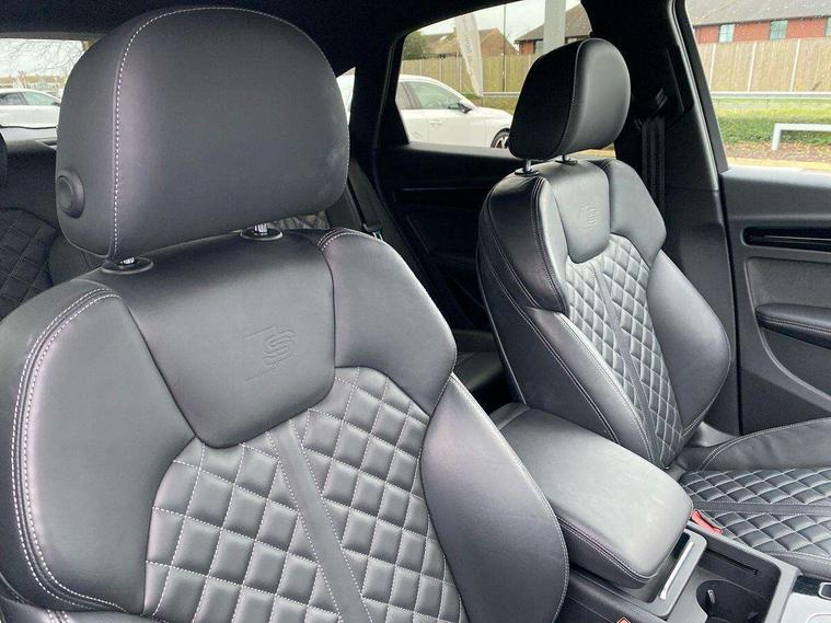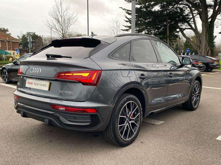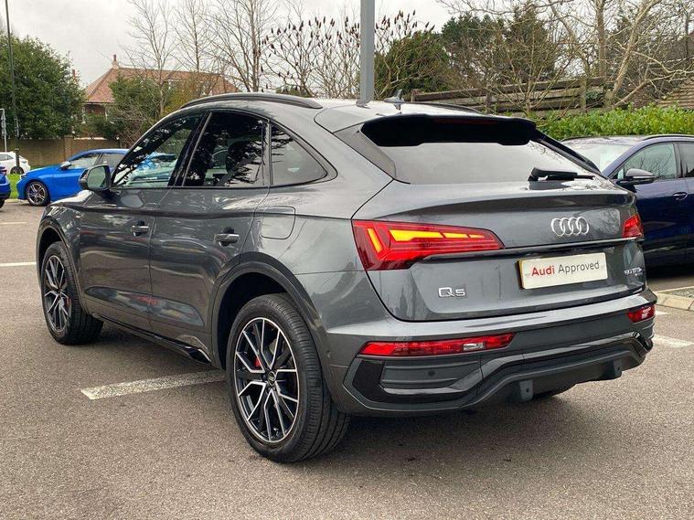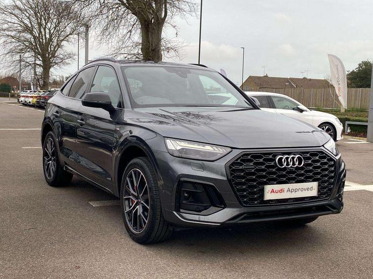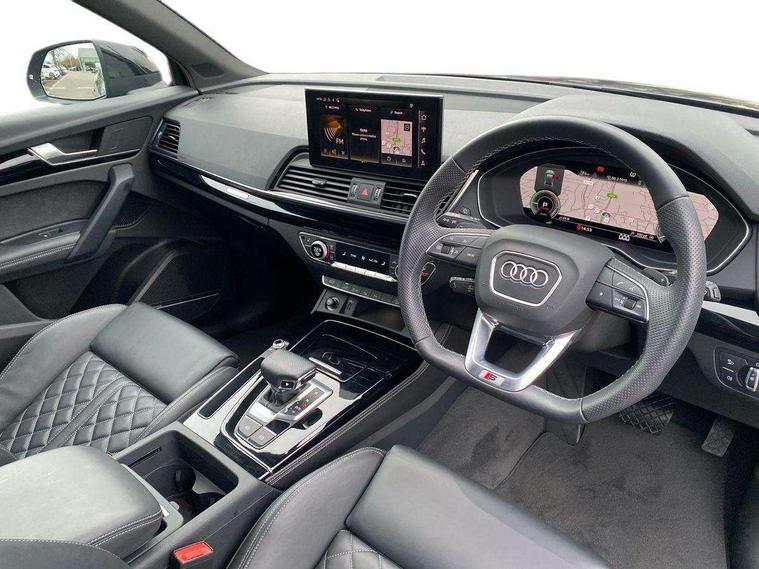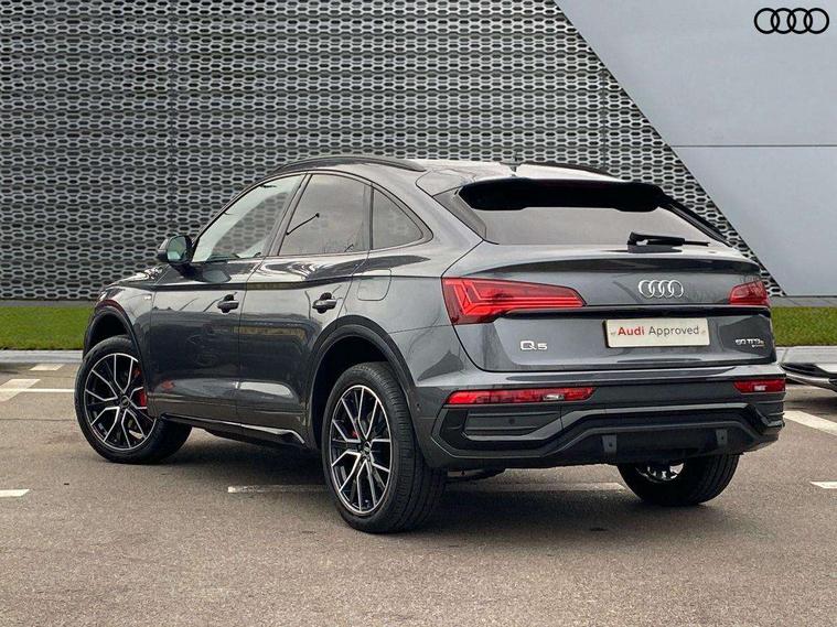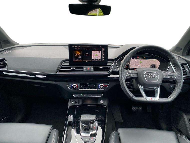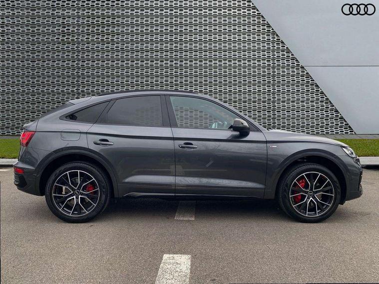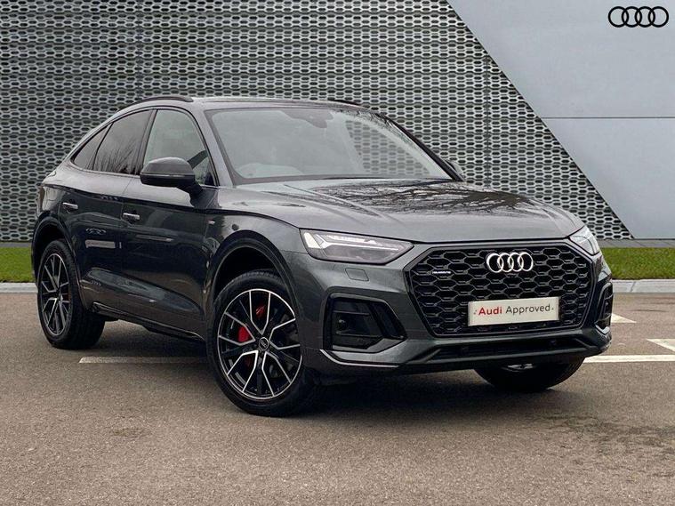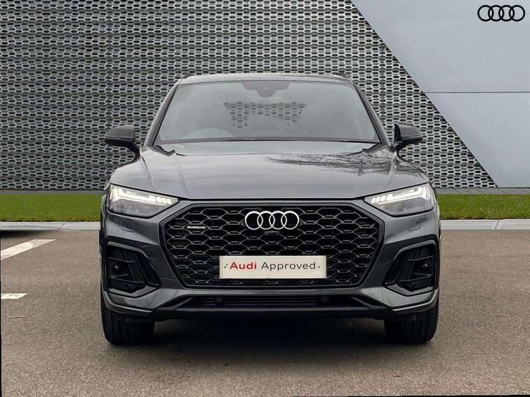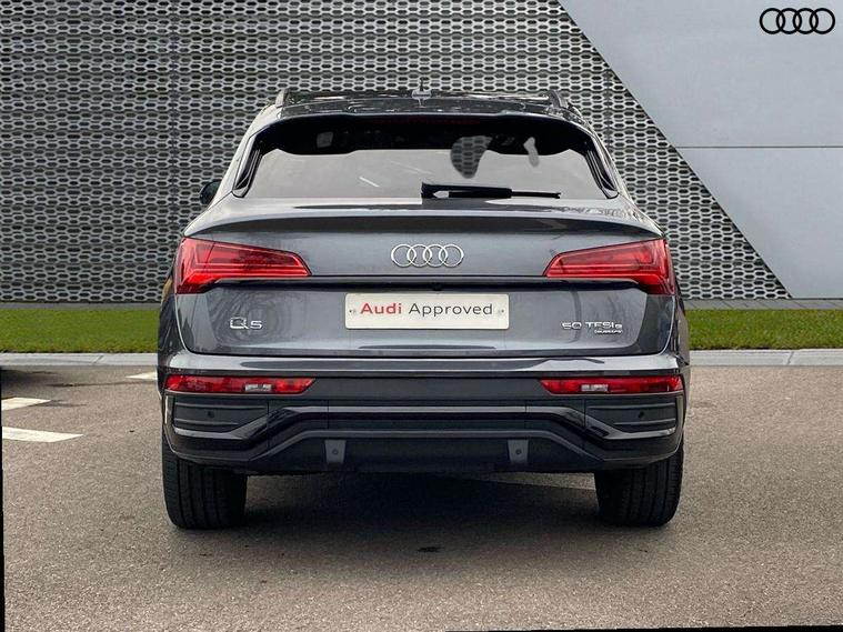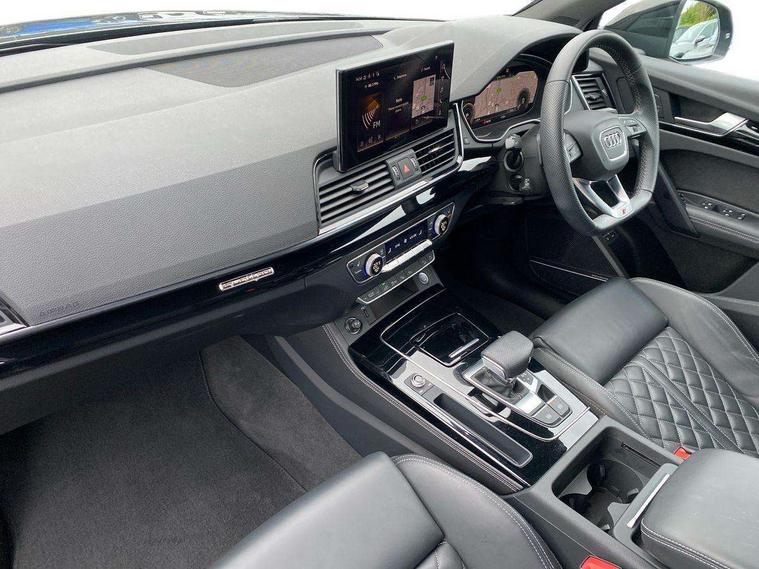 Acoustic front and rear parking sensor, Audi connect safety and service (e-call), Audi connect with Amazon Alexa Integration, Audi drive select, Audi virtual cockpit with 12.3" screen with specific display, Audi wireless smartphone interface, Automatic start-stop system with coasting functionality and efficiency programme, Bluetooth interface, Electro - mechanical power assisted steering, MMI navigation plus with 10.1" touch screen, Power tailgate, Reversing camera, Service interval indicator, Voice control system with Audi hotword activation "Hey Audi", 3 pin 10 amp domestic charging cable, 7.4 kW onboard charger, Dynamic suspension, Industrial connector CEE 32A, 230V, Quattro on demand, Type 2 mode 3 22kW 32 amp charging cable, Type 2 socket for AC charging, 2 x USB charging port with aux input socket, 8 loudspeakers, DAB Digital radio, Acoustic windscreen, Audi matrix LED headlights with dynamic front and rear indicators, Auto dimming door mirrors, Auto dimming frameless rear view mirror, Automatic headlight adjustment, Automatic headlights and windscreen wipers, Black roof rails, Body colour bumpers, Body colour underbody protection, Chrome plated exhaust trims, Daytime running lights, Door sills in Selenite silver, Electric adjustable/heated/folding door mirrors, Front air inlet surrounds in anthracite black, Front and rear electric windows, Headlight washers, High gloss black B pillar trims and triangular rear door trim, High level LED brake light, Rear chrome trim strip below lights, Rear privacy glass and rear side windows, Rear side wing doors, Rear spoiler, Rear wiper, Roof bars, 3 rear headrests, 3 seater rear seat bench, 4 way electric lumbar support for driver and front passenger, Black cloth headlining, Comfort front centre armrest, Contrast stitching on seats, steering wheel and gear lever gaiter, Deluxe 3 zone electronic climate control, Electrically adjustable front seats, Fine Nappa leather upholstery with diamond pattern contrast stitching + front sport seats with S embossed logo, Front/rear floor mats, Gear lever in black leather, Heated front seats, Height adjustable front head restraints, Height/reach adjustable steering column, Illuminated door sill trims with S logo, Rear seat bench plus-adjust for forwards/backwards position/backrest angle, cupholders in the armrest, load through hatch and remote backrest release, Single front passenger seat, Sunvisors with vanity mirrors, Trunk roller cover, Black styling package - Q5 Edition 1, Extended interior upholstery pack - Q5, Extended LED Interior multi coloured Lighting Pack - Q5, 3 point seatbelts on all seats, 6 airbags - Driver, front passenger, curtain and side airbags, Electrically operated child locks on rear doors, Electromechanical parking brake, Electronic stabilisation control including ABS, ASR and EDL, First aid kit with warning triangle and vests, Front and rear brake calipers painted in red, Front passenger airbag deactivation, Hill descent control, Hill hold assist, ISOFIX child seat mounting for front passenger seat and ISOFIX child seat mounting with Top Tether for outer rear seats, Multi collision brake assist, Pop-up bonnet for pedestrian protection, Pre sense city, Seat belt force limiter, Seatbelt monitoring, Tyre pressure warning, Anti theft alarm, Anti-theft wheel bolts, Keyless Go access/ignition system, Remote central locking, Air vents inserts and centre console in gloss black, Piano black finish inlay, Tool kit, Tyre repair kit,