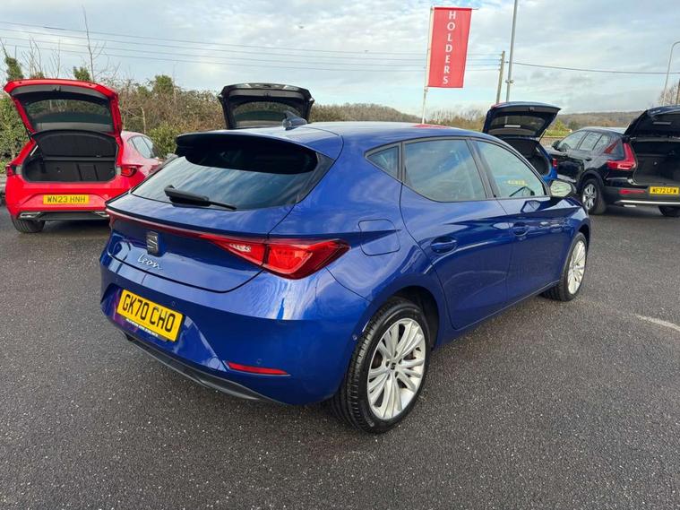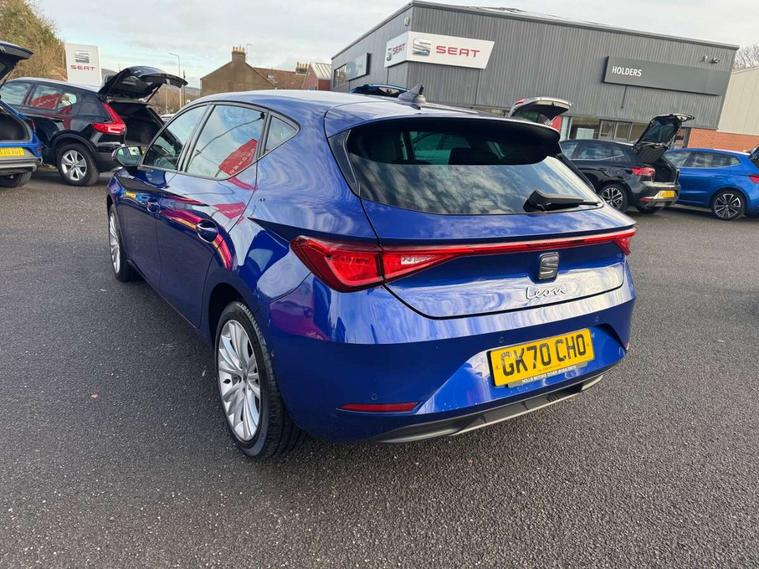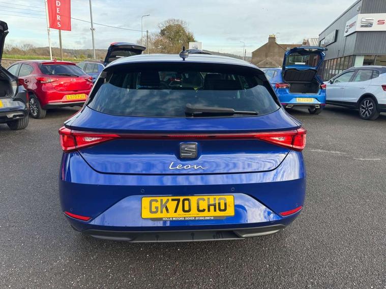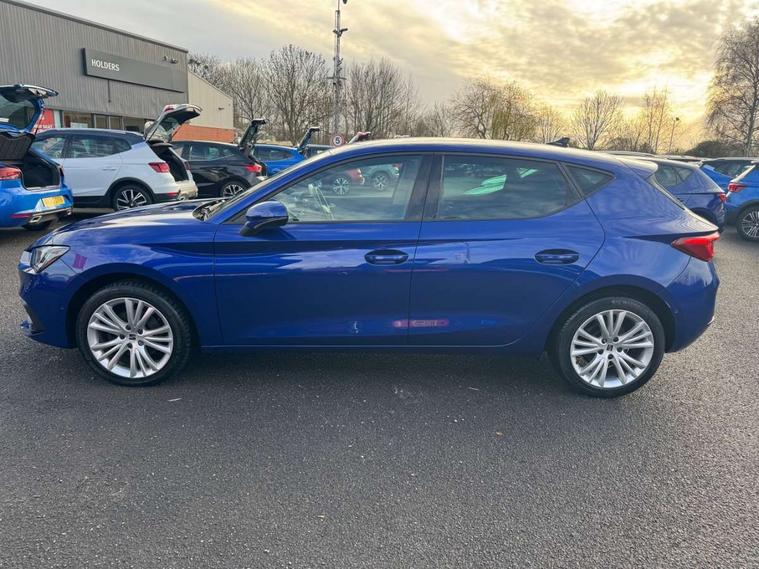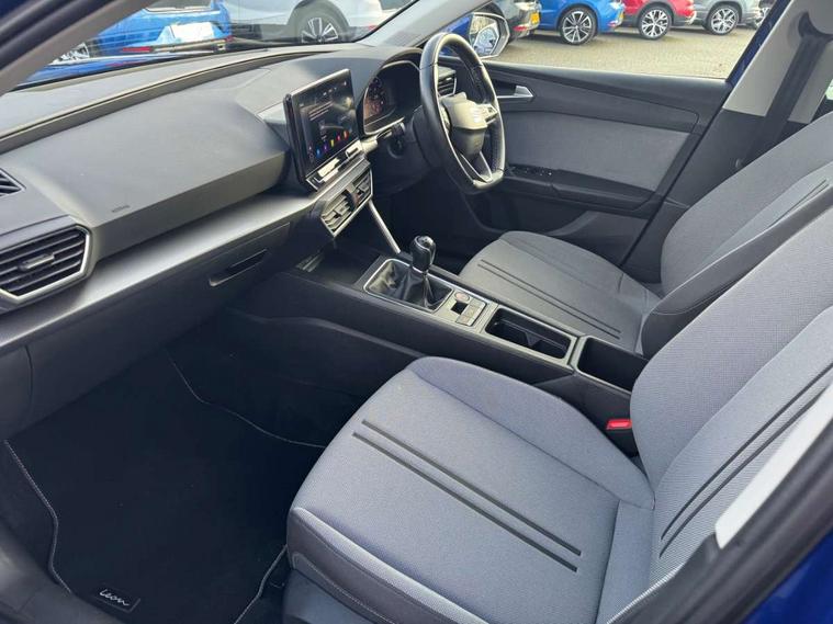 Cruise control with speed limiter, Digital cockpit, Front assist with forward collision warning braking reaction to vehicles, pedestrians and cyclists, Full link smartphone integration with Mirror Link, wireless Apple CarPlay and wired Google Android Auto, Lane keeping system, Lockable tailgate, Park assist (inc front/rear parking sensors), Power assisted speed sensitive electro-mechanical steering, RPM, trip computer, outside temp gauge, instrument light brightness, low fuel warning light, lights on reminder, gearshift indicator, Service interval indicator, Start/stop system with regenerative braking, Standard suspension, XDS electronic differential lock and dynamic traction support, Auxiliary input socket, Body colour door handles, Body coloured bumpers, Body coloured exterior mirrors with integrated LED indicators, Dark tinted rear windows, Electric front/rear windows, Electrically adjustable and heated door mirrors, LED front fog lamps with cornering function, LED headlights and LED tail lights, LED rear fog lamp, Manual dimming rear view mirror, Rear wash/wipe, Separate daytime running light with automatic headlight control, 12v power point in centre console, 60/40 split rear bench seat, Air conditioning, Cloth upholstery, Driver seat lumbar adjustment, Driver/passenger manual seat height adjustment, Dust/pollen filter, Folding boot cover, Front and rear height adjustable headrests, Front and rear reading lights X 4, Front seatback storage pockets, Height/reach adjust steering wheel, Interior lighting with LED lighting in sunvisor, glovebox and rear headlining, ISOFIX points in outer rear seats with top tether anchorage points, Leather flat bottomed, perforated steering wheel and leather gearstick, Luggage tie-down hooks, Sunvisors with covered illuminated mirror, Media system plus with navigation - Leon SE, 3 point seatbelts on all rear seats, ABS, Brake control system - ESC and brake booster, Child proof door locks, Driver and front passenger airbags with front passenger airbag de-activation, front side and curtain airbags, Electronic parking brake, Extended safety system - seat belt tensioner, window closure and hazard lights, Hill hold control, Rear disc brakes, Seat belt reminder for front and rear seats, Tiredness recognition system, driver alert system, Tyre pressure monitoring system, Anti theft alarm system with interior monitoring in cab, backup horn and towing protection, KESSY Go (Keyless start), Locking wheel bolts, Chrome interior detailing, 17" Dynamic tri-spoke alloy wheels with 91W tyres, Tool kit,