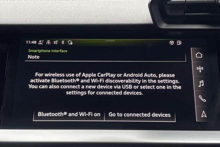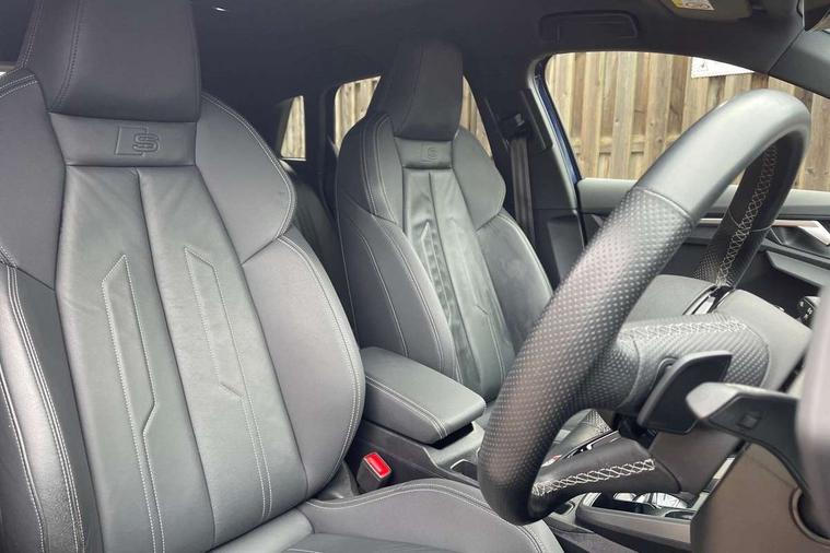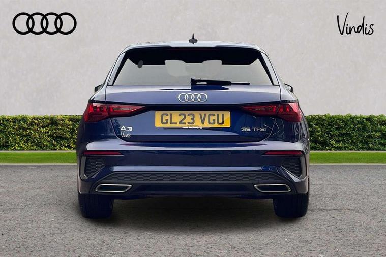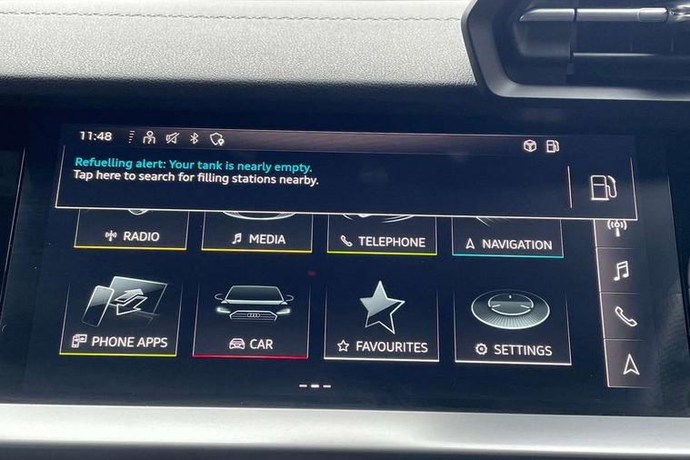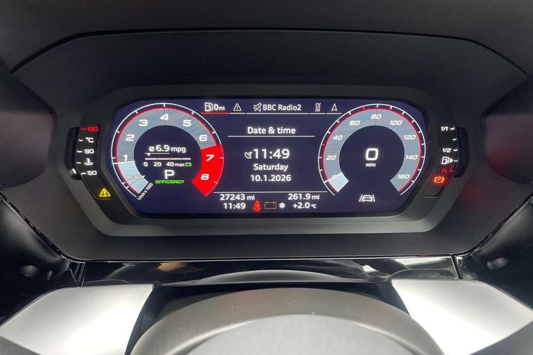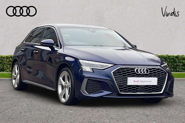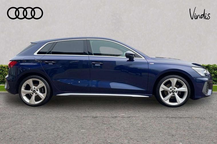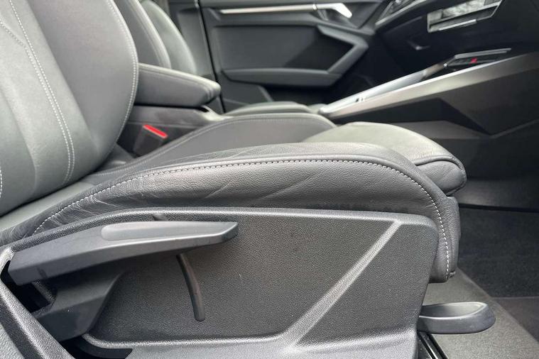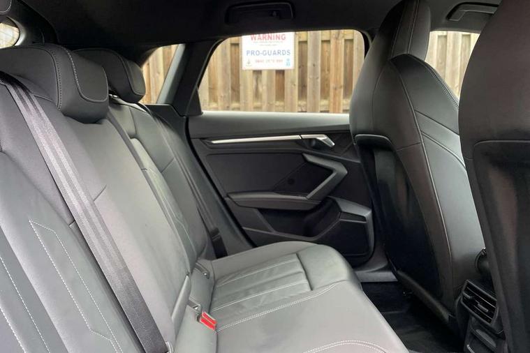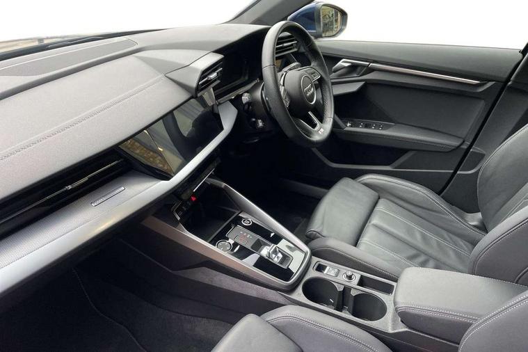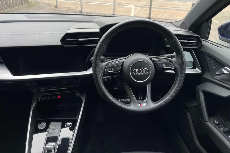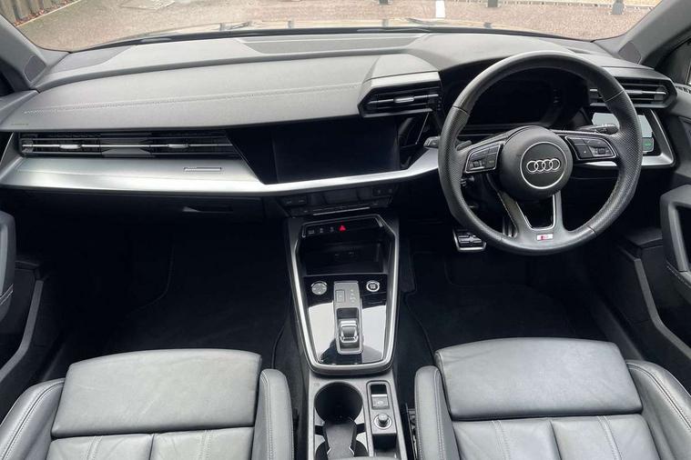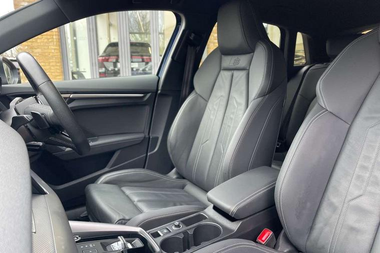 Audi drive select (Auto, Comfort, Dynamic, Efficiency and Individual), Audi smartphone interface, Audi Virtual Cockpit - 10.25" digital and colour instrument cluster, Automatic start/stop system with recuperation, Bluetooth interface, Camera based traffic sign recognition, Collision avoidance assistant, e-Call (emergency call), Electromechanical power speed sensitive steering, Lane departure warning system, MMI Navigation Plus with high resolution 10.1" colour touch screen display, Service indicator, Trip computer, Voice control system with natural language interaction, Sports suspension, 2xUSB-C connection with data and charging functions, 6 passive loudspeakers, DAB Digital radio, 3rd brake light, Acoustic glass windscreen, Aluminium window trim, Auto dimming frameless rear view mirror, Body colour exterior mirrors, Electrically adjustable/heated/folding/dimming door mirrors with kerb view includes integrated LED indications + kerb view function for passenger side, Front electric windows, Illuminated aluminium inserts front door sills with S logo, LED daytime running lights, LED headlights with LED rear lights and dynamic rear indicators, Light and rain sensors, Privacy glass - dark tinted rear window, rear door and side windows, Rear electric windows, Rear side air outlets in grained matt black, Rear side wing doors, Rear wiper, S line bumpers, S roof spoiler, 12V socket and storage compartment in front centre console, 3 seat bench in 2nd row, 3 spoke leather multifunction steering wheel with paddle shift, 4 way electrically adjustable lumbar support for driver and front passenger, 60/40 split folding rear seat bench, Black cloth headlining, Dual zone electronic climate control, Front and rear centre armrest in leather, Front and rear headrests, Front/rear floor mats, Height and reach adjustable steering wheel, Interior lighting - glove compartment light and right hand side, Luggage compartment floor covering, Manual boot compartment lid, Manually adjustable front seats, Seat side bolsters, Single front passenger seat, Stainless steel pedals and front footrest in black, Twin leather upholstery with front sports seats S embossed logo, Aluminium interior elements pack - A3 Sportback, LED interior lighting pack - A3 Sportback, S line styling pack - A3 Sportback, 3x3 point rear seat belts, Driver and front passenger airbag with passenger airbag deactivation, Electronic Stabilisation Control (ESC) including ABS, ASR and EDL, First aid kit with warning triangle and 2 safety vests, Front side airbags with head airbags and interaction airbag, Pre-sense front with pedestrian and cyclist detection, Seatbelt monitoring, Tyre pressure loss indicator, Anti theft alarm, Anti-theft wheel bolts, Electronically operated child lock, Immobiliser, Remote control central locking, Dark spectrum aluminium inlays, accent surfaces in the dashboard and centre console in platinum grey silk effect paint finish,