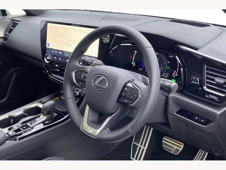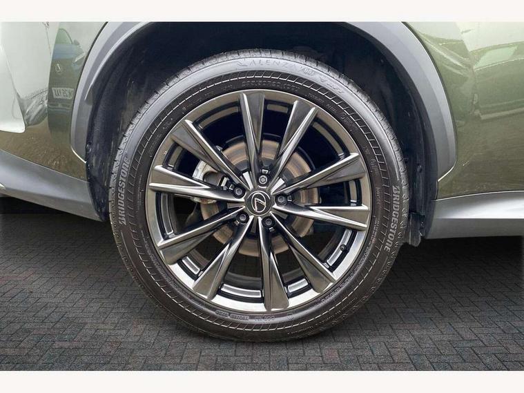 360 degree panoramic view monitor, 7" display in instrument binnacle, Blind spot monitoring with rear cross traffic alert, Bluetooth telephone connectivity, eCall emergency system, Electric speed sensitive power steering, Head up Display, Intelligent parking sensors - 4 front and 4 rear with object and pedestrain detection, Lane change flasher function, Lexus link connect - Cloud based navigation, cloud based voice assistant, always online, 14" HD touchscreen, embedded nav and faster CPU, Push button starter, Reversing camera with back guidelines, Service interval indicator, Tailgate, Tazuna cockpit with 7" improved meters display, 10" HUD and capacitive touch steering wheel switches, Wireless Apple CarPlay/Android Auto, Wireless Smartphone charger, 6.6 kW onboard charger, All Wheel Drive (AWD), Hybrid automatic transmission, Sport suspension, Vehicle Dynamics Integrated Management (VDIM), Vehicle Stability Control (VSC), 10 speakers, 4 USB ports - 2 front, one USB C, 2 rear USB C, DAB Digital radio, 4 eye LED headlight with adaptive high beam, Auto dimming interior rear view mirror, Automatic headlights, Black roof, Double hidden exhaust pipes, F SPORT exterior styling - Black mesh front grille, enhanced side rockers, metallic front bumper, badging, black outside mirror covers, Front and rear one touch power windows, with anti-jam protection, Headlight cleaners, Heated, auto-folding, auto-dimming outside mirrors with reverse tilt function and turn indicators, Illuminated door handles with puddle light, LED brake lights and rear lights with emergency brake signal, LED cornering lights, LED daytime running lights, LED front fog lights, LED Indicators, Power back door with kick sensor, Privacy glass, rear doors and tailgate, Rain sensor windscreen wipers, Rear side wing doors, Rear wiper, Roof rails, 12V accessory port centre console and luggage compartment, 2 cupholders in front centre console, 2 x fixed shopping bag hooks in boot, 2 x sun visors with vanity mirror and lamp, 3 seat bench in 2nd row, 4 x tie down hooks in the boot, 60/40 split folding rear seat, 8 way driver/passenger electrically adjustable front seats, Active sound control, Adjustable rear seat backrest, Black interior roof, Card holder installed in driver and passengers sun visors, Centre armrest with storage box, Driver and passenger 2 way electrical lumbar adjustment, Driver seat memory function, Dual zone climate control air conditioning system with humidity sensor, F Sport aluminium sports pedals, F SPORT leather gearlever, F SPORT seats - Leather upholstery, Front and rear head restraints, Front and rear textile carpet mats, Front passenger seat, Heated front seats, Heated rear seats, Heated steering wheel, LED interior illumination, Power adjustable F SPORT leather steering wheel with paddle shifts, Rear centre armrest with 2 cupholders, Whiplash Injury Lessening (WIL) feature (active headrest) for seats, 3 point ELR front seatbelts with pretensioners, 3x3 point rear seat belts, ABS, Adjustable seat belt anchor points, Driver and front passenger 2 stage airbag, Driver/front passenger side airbags, Drivers knee airbag, E-Latch, EBD + Brake Assist, ECB (Electronically Controlled Brake System), Electronic parking brake, Front and rear curtain shield airbags, Front center airbag, Front passenger seat cushion airbag, Hill assist control, Lexus safety system - dynamic radar cruise control, pre collision system day and night, lane tracing assist, road sign, automatic high beam, OTA, Manual rear child locks, Passenger airbag cut-off device, Traction control, Tyre pressure warning, Anti-theft system with alarm, intrusion sensor, glass breakage sensor, tilt sensor and engine immobiliser, Locking wheel nuts, Smart entry ( front/rear/boot), Speed sensitive auto door locking, Ultra Wide Band (UWB) Anti-theft system, VIN Window etching, Aluminium inlays, Organic inlay, Run flat tyres,