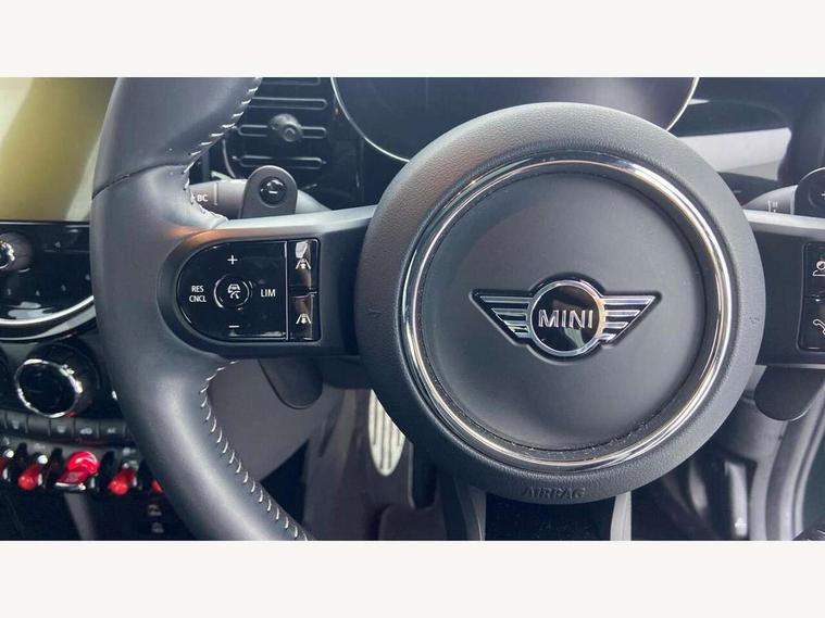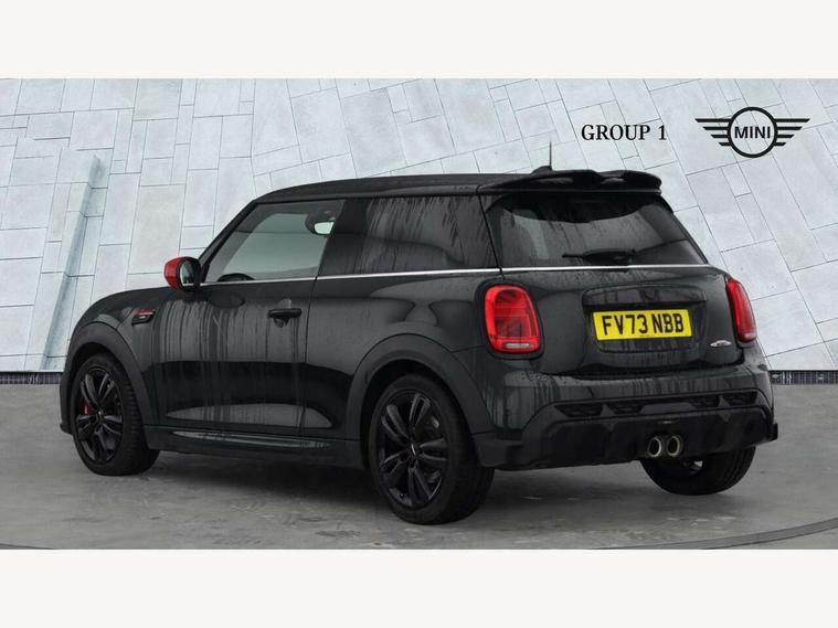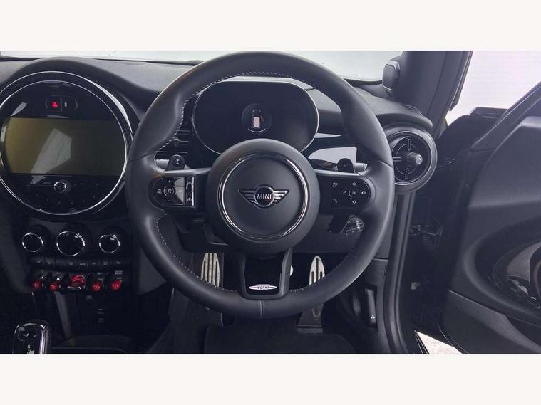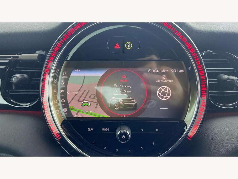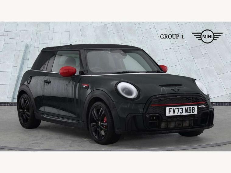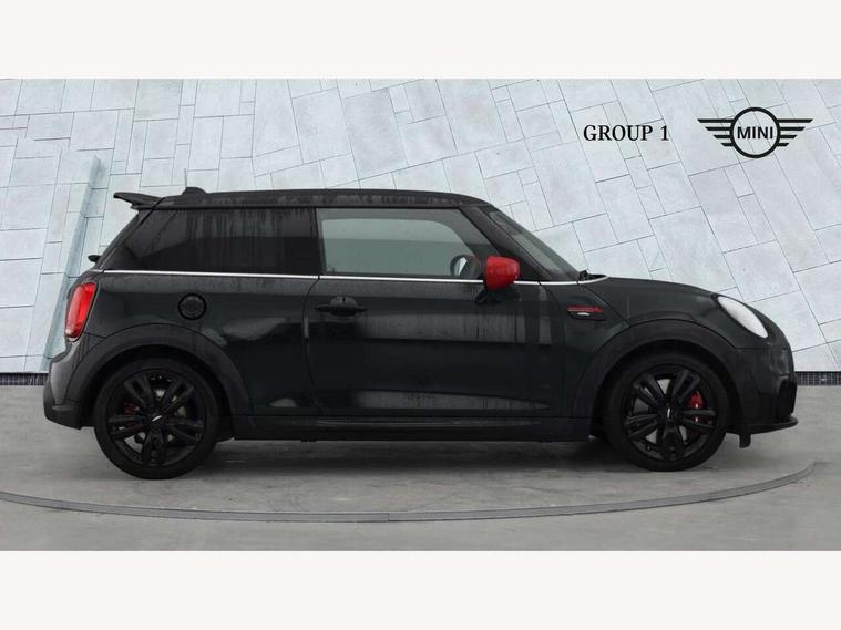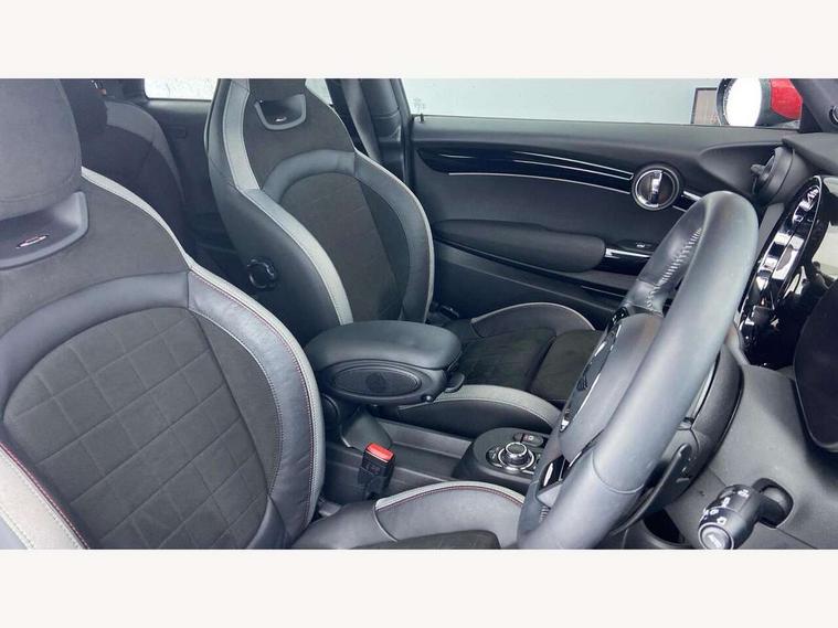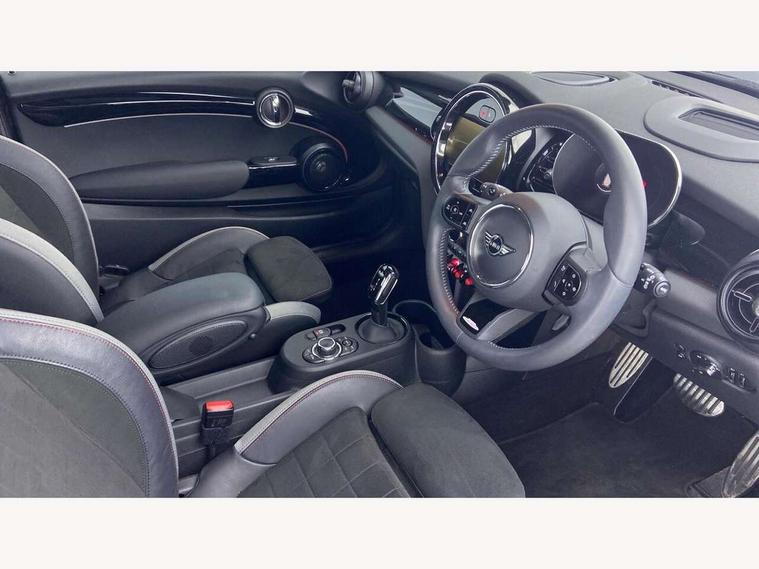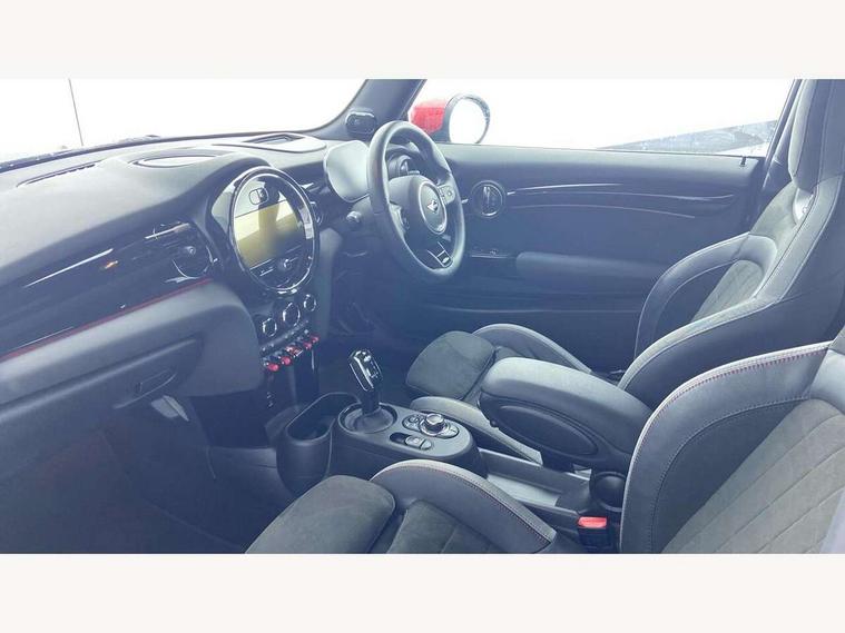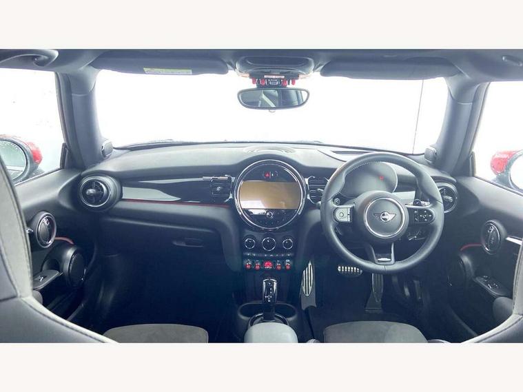 Apple CarPlay, Automatic start/stop function with brake energy recuperation, Compatible mobile phone bluetooth with audio streaming, Cruise control with brake assist, Electro-mechanical speed dependant steering assistance, Flexible car sharing preparation, Instrument cluster, MINI Driving Modes - centre toggle switch to control driving setting (sport, mid and green), Mini E-call, MINI TeleServices, On board computer, Rear park distance control, Service interval indicator, Double Vanos system, Eight speed steptronic sport transmission, with gearshift paddles, Fully variable valve control, High precision injection, Performance Control, 8.8" touchscreen with LED ring, FM tuner and DAB digital radio, 3rd brake light, Automatic headlight activation switch, Bonnet scoop, Dynamic brake lights, Electric front windows, Heated rear window, Heated windscreen washer jets, JCW Aerodynamic kit - Front and rear bumpers with sporty JCW styling and part-painted side sills with MINI John Cooper Works door sill finishers, John Cooper Works logo above an individual grille strut in Chilli Red, John Cooper Works rear spoiler, LED headlight with closed ring and daytime driving lights, Radiator grille piano black border with honeycomb structure in black matt, Rain sensor window wipers, Rear fog lights, Rear LED lights with union jack design, Rear window wiper, Side scuttle panel with integrated indicator, Side scuttle with MINI John Cooper Works logo in black high-gloss with red border, Sun/heat protection glass, Two central exhaust tailpipes with chrome finisher, White indicator lenses, 12V Accessory socket in centre console, 2 seat bench in 2nd row, 4 lashing eyes in luggage compartment, 60/40 split folding rear seat, Anthracite headliner including grab handles and clothes hooks, Carbon black colour line - Knee roll and door armrest, Chrome interior highlights, Cupholders, Front and rear isofix with front passenger airbag deactivation, Front floor mats in velour, Glove compartment, Height and length steering column adjustment, Interior lighting with 12 different colours across the dashboard, underneath door bezel with illuminated laser-engraved design on central display, JCW Sport seats with integrated headrests, adjustable thigh support and John Cooper Works logo, Leatherette gearshift lever and handbrake gaiters, LED reading lights, vanity mirror lights, front foot well light and spotlight on front seats, Manual air conditioning, Mechanical seat adjustment - forward/back & backrest for front seats and driver seat height adjust, Multifunction steering wheel, Passenger seat height adjuster, Rubberised stainless steel pedals, Single front passenger seat, Storage compartments in doors, Storage pocket on back of front seats, Sunvisors with vanity mirrors, Walknappa leather steering wheel with grey seam and John Cooper Works badge on Piano Black lower steering wheel spoke, Navigation pack without Apple Carplay - Mini Hatchback, Piano black exterior pack - JCW, 3 point seatbelts on all four seats, 4-piston fixed-calliper brakes front, 6 Airbags - front, side, head and seat belt tensioners, Anti-lock braking system (ABS), DSC - Dynamic Stability Control, Front and rear disc brakes, Red brake callipers with John Cooper Works logo, Single tone fanfare horn, Tyre pressure monitoring system, Alarm system with tilt sensor, monitoring doors, bonnet interior and tailgate, Electronic vehicle immobiliser, Start/stop toggle with keyless go, Tool kit,