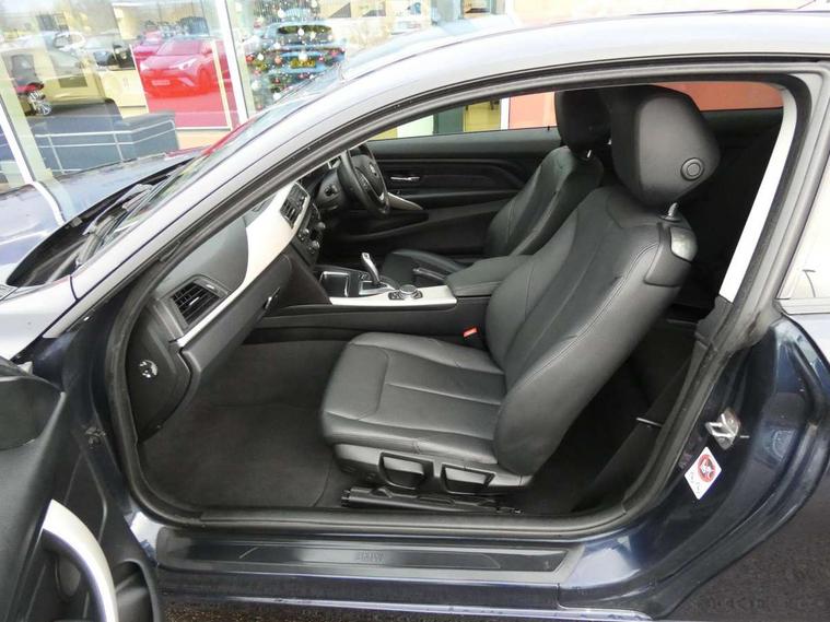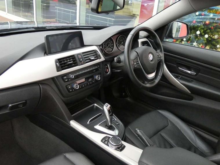 BMW Teleservices, Brake pad wear indicator warning light, Check control system, Door/boot open warning, Front/rear Parking distance control, Lights on warning, Oil temperature gauge, On board computer, Outside temperature display, Run flat indicator, Service interval indicator, Stop/start button, Drive Performance Control, Auxiliary point for auxiliary devices, Bluetooth audio streaming, BMW professional radio/CD/MP3, DAB Digital radio, 2 speed adjustable intermittent wipers with wash/wipe function, Auto dimming rear view mirror, Body colour bumpers, Body colour door handles, Body colour door mirrors, Body colour roof mouldings, Chrome exhaust tailpipe, Chrome kidney grille with black vertical slats, Daytime running lights, Door sill finishers, Electric front windows/one touch facility, Follow me home headlights, Front fog lights, Headlight washers, Heat insulating tinted glass, Heated windscreen washer jets, Rain sensor including auto headlights activation, Windscreen with grey shadeband, 12V sockets in front centre console and passenger footwell, 3 spoke leather multifunction sports steering wheel, 4 grab handles, Anthracite Velour floor mats, Dakota leather upholstery, Dual zone climate control, Folding storage compartment with glasses holder + coin tray, Front centre armrest with storage compartment, Front cupholders x 2, Front head restraints, Front/rear armrests within door panels, Glovebox with lid, Heated front seats, Integrated rear head restraints, ISOFIX child seat preparation+airbag deactivation, Lashing eyelets in boot, Leather gearknob, Leather handbrake grip, Reach + rake adjustable steering column, Rear centre armrest, Storage compartment in rear centre console, Sunvisors with vanity mirrors, Toolkit located in luggage compartment, Extended lights package - 4 Series, Media pack - Business - 4 Series, 3 point seatbelts on all seats, ABS/EBD, Automatic Stability Control (ASC), BMW emergency call, Cornering brake control (CBC), Crash Sensor - activates hazard/interior lighting + unlocks doors, Driver seatbelt warning indicator, Driver/Front Passenger airbags, DSC+, Dynamic brake control, Dynamic Traction Control - DTC, Front seatbelt force limiters, Front seatbelt pretensioner, Front side airbags, Hill start assist, ITS head airbags for front/rear, Tyre pressure monitor, Warning triangle and first aid kit, Drive away door locking, Electronic immobiliser, Remote central locking, Remote control Thatcham category 1 alarm, Run flat tyres,