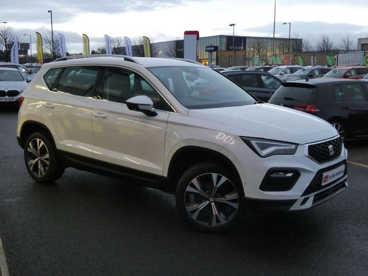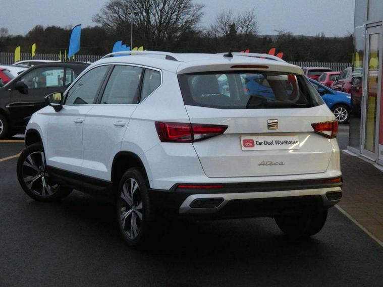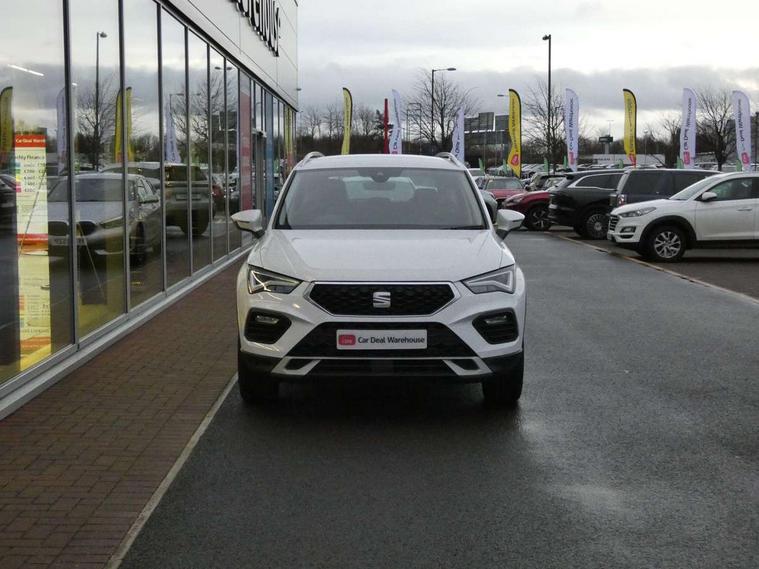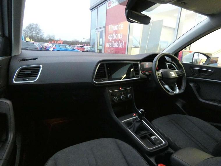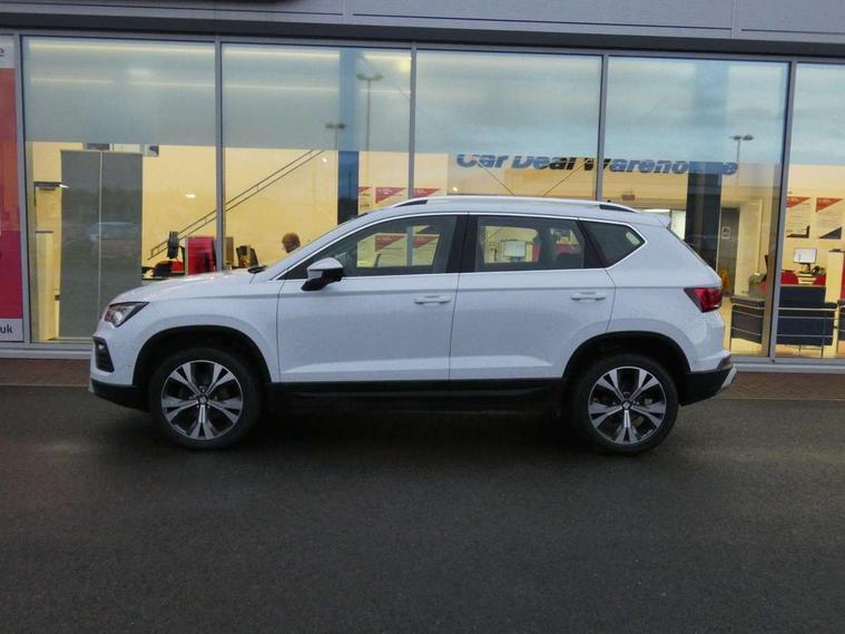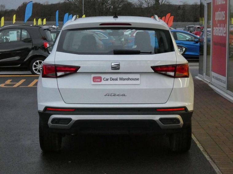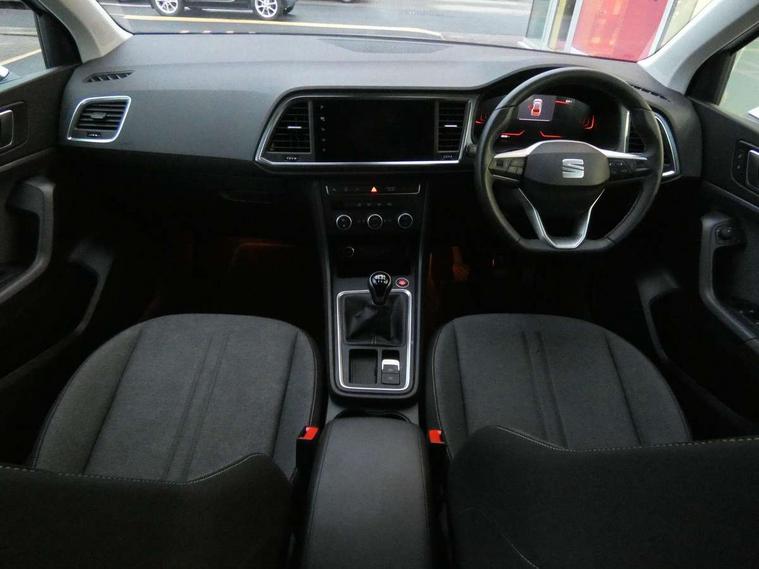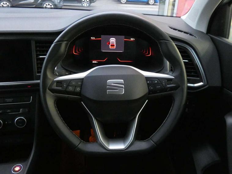 8" Digital cockpit, Colour multi-function on board computer display, Cruise control system with speed limiter, E-call, Outside temperature gauge, PAS, Self parking functionality (includes front and rear parking sensors), Start/stop system, Tailgate, Trip computer, wired and wireless full link smartphone integration, Wireless phone charger, Steering wheel mounted audio/phone controls, Black wheel arch surrounds, Body colour bumpers, Chrome front grille frame, Chrome roof rails, Chrome side window trim, Daytime running lights, Door mirrors with welcome light silhouette, Dynamic headlight range control with self adjusting whilst driving, Electric adjustable/heated/folding door mirrors, Front and rear electric windows, Full LED headlamps with lens and LED front fog lamps with cornering function, LED 3rd brake light, LED rear tail lights, Rear exhaust tailpipe, Rear fog lights, Rear side wing doors, Rear wash/wipe, Variable front intermittent wipers, 12V socket in front, 3 seat bench in 2nd row, 60/40 split folding rear seat, Cloth upholstery with front comfort seats, Drawer under right front seat, Dual zone climate control, Front and rear head restraints, Front centre armrest, Front seat back storage pockets, Height adjustable driver and passenger seat with lumbar adjustment, ISOFIX points in outer rear seats with top tether anchorage points, Leather sports steering wheel and gear knob, Rear armrest and easy back seat release mechanism from boot, Single front passenger seat, Convenience pack - Ateca, Interior lighting pack - Ateca, Navigation system pack with DAB - Ateca, Safety and driving pack with attention and drowsiness assist - Ateca, 3x3 point rear seatbelts, ABS, Traction control system (TCS), Electronic stability control (ESC) and Electronic differential lock system (XDS), Airbags - Driver and front passenger airbag with deactivation, front side, two curtain and driver's knee airbags, Electric parking brake with auto hold function, Front and rear seatbelt reminder, Front assist with autonomous emergency braking, Hill hold control, Manual rear child locks, Single tone horn, Tiredness recognition system, Tyre pressure monitoring system, Alarm, Keyless entry, Locking wheel bolts, Remote central locking, Chrome interior detailing, 18" Performance machined alloy wheels 36/2 in nuclear grey,