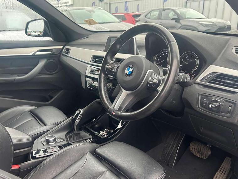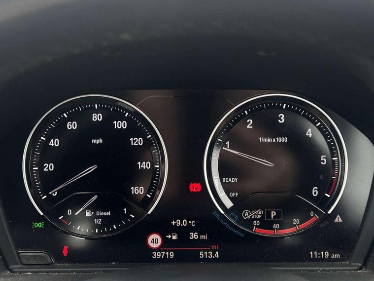 Active Guard incl speed limiting and lane departure functions with auto steering, and front collision warning with brake intervention, Ambient temperature display, Attentiveness assist, Automatic tailgate opening, BMW Online services, BMW remote services, BMW Teleservices, Lights on warning, On board computer, Outside temperature gauge, Real time traffic information, Service interval indicator, Speed limiter, Stop/start button, Tyre puncture warning system, Diesel particulate filter, Electronic differential lock, Performance Control, 2 USB ports in centre console, BMW professional radio with CD player, DAB Digital radio, USB/audio interface, Adaptive LED Headlights, Adjustable headlights, Body colour bumpers, Body colour door handles, Body colour door mirrors, Chrome tailpipe finisher, Electrically adjustable and heated door mirrors, Fingertip control / anti-trap function on electric window, Follow me home headlights, Front and rear electric windows, Front fog lights, Heat insulating tinted glass, Heated windscreen washer jets, kidney grille with high gloss black vertical slats, LED daytime running lights, M door entry sills, Rain sensor including auto headlights activation, Rear window wash/wipe, Twin chrome exhaust tailpipes x2, Welcome home function, 12v power point in centre console, 12V power socket in passenger footwell, 3 rear headrests, 3 spoke sport nappa leather steering wheel, 4 grab handles, Anthracite headlining, Boot light, Centre console with cupholders, Driver/passenger sunvisors with ticket holders, Drivers folding storage compartment, Dual zone automatic air conditioning, Front and rear door armrests, Front centre armrest/sliding cover, Front passenger isofix child seat attachment, Front sports seats, Front/rear adjustable head restraints, Heated front seats, Illuminated glovebox, Isofix rear child seat preparation, Leather gearknob/gaiter/handbrake grip, LED ambient lighting in door trim, Luggage area underfloor compartment, Luggage compartment lighting, Multifunction steering wheel, Rake/reach adjustable steering wheel, Sliding/split/reclining 40/20/40 rear seat with 60/40 split rear seat base, Steering wheel gearshift paddles, Velour floor carpets, Extended storage package - X1, 3 rear 3 point seatbelts, ABS/EBD, Audio/visual collision warning system, Automatic Stability Control (ASC), BMW emergency call, Cornering brake control (CBC), Crash Sensor - activates hazard/interior lighting + unlocks doors, Driver/Front Passenger airbags, Driver/front passenger side airbags, DSC - Dynamic Stability Control, Dynamic brake control, Dynamic Traction Control - DTC, Electronic parking brake, Front and rear head airbags, Front passenger airbag deactivation, Front seatbelt force limiters, Hill start assist, Pyrotechnically pre-tensioned front seatbelts, Rear door child safety locks, Seatbelt warning, Tyre pressure monitor, Warning triangle and first aid kit, Auto door lock when driving, Central locking including boot and fuel flap with deadlocks, Engine immobiliser, Locking wheel nuts, Remote control Thatcham category 1 alarm, High gloss black centre console, Low rolling resistance tyres,