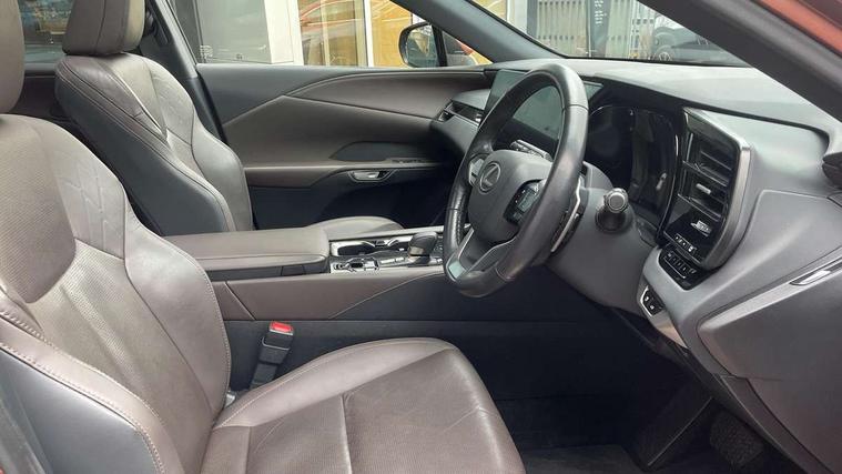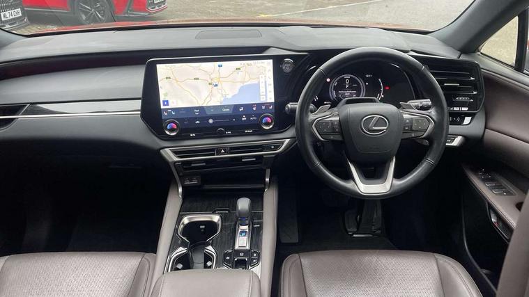 360 degree panoramic view monitor, Bluetooth mobile phone connectivity, BSM - Blind spot monitoring, Drive mode selector, Driver monitoring system, E-call, Head up Display, Intelligent clearance sonar, Lexus link connected services including over the air updates, MM21 Lexus link pro - 14" HD touchscreen with embedded and cloud based navigation, voice assistant, connected services, over the air and always online, Push button starter, Rear cross traffic alert, Speed sensitive electric power assisted steering, Ultrasonic parking sensors, Wireless Apple CarPlay and wired Android Auto, Wireless Smartphone charger, E-Four Automatic transmission, Vehicle Stability Control (VSC), 12 speakers audio, 6 USB ports (3 front USB C, 1 front USB A and 2 rear USB C), DAB Digital radio, 3 projector bi-beam LED headlight with auto high beam, Auto dimming rear view mirror, Auto headlights, Front and rear one touch power windows with voice command, Front and rear silver window frame mouldings, Headlight washers, Heated, auto-folding door mirrors, auto dimming with rerverse tilt, turn indicators and panoramic view sensors, L-shaped rear light bar, LED brake lights and rear lights with emergency brake signal, LED cornering headlights, LED daytime running lights, LED front and rear fog lights, LED Indicators, Power back door with kick sensor, Privacy UV glass, rear doors and tailgate, Rain sensor windscreen wipers, Rear side wing doors, Rear wash/wipe, Roof rails, Variable front intermittent wipers, 12V accessory port centre console and luggage compartment, 2 cup holders in centre console, 2 way electric lumbar support for driver and front passenger, 2 x Sunvisors with vanity mirror and lamp, 3 rear headrests, 3 seat bench in 2nd row, 40:20:40 split folding rear seats, 64 colour LED ambient interior illumination with 14 pre-set themed colour tones, 8 way electrically adjustable front seats, Driver seat memory function, Easy access driver seat, Easy access steering wheel, Front aluminium scuff plates, Front headrests, Front tray in front of centre console, Glovebox, Heated and ventilated front seats, Heated steering wheel, Leather steering wheel, Lever type shft control, Manually adjustable rear seats, Power adjustable steering wheel, Rear resin scuff plates, Single front passenger seat, Smooth leather upholstery, Textile carpet mats, Three zone climate control air conditioning system, Two way opening centre armrest with storage, 2 x Isofix child rear seat restraints, 3 point ELR front and rear seatbelts with pretensioners, ABS, Curtain shield airbags (front and rear), Driver and front passenger 2 stage airbag, Driver/front passenger side airbags, Drivers knee airbag, E-Latch with safe exit assist, EBD + Brake Assist, Electronic parking brake, Electronically controlled braking, Extended lexus safety system+ 3 - lane change assist, front cross traffic assist, Front and rear left/right force limiters and tension reducers, Front and rear left/right seatbelt reminders, Front centre airbag, Hill assist control, Lexus safety system+ 3 - dynamic radar cruise control, pre collision system day and night, lane tracing assist, road sign, Manual child lock in rear doors, Passenger airbag cut-off device, Traction control, Tyre pressure warning, 2 x remote key fobs, Customisable auto door lock, Motion sensor key, Smart keyless entry, Thatcham category 1 alarm + immobiliser, VIN etching, Black Inlay,