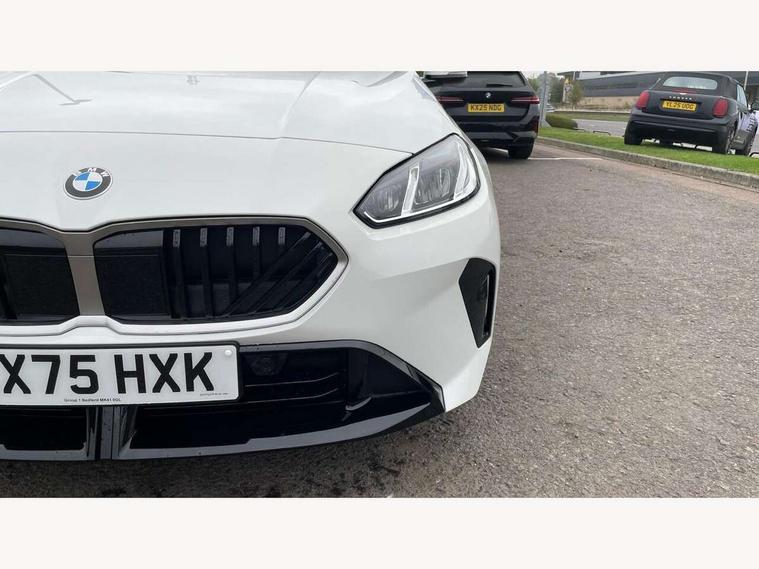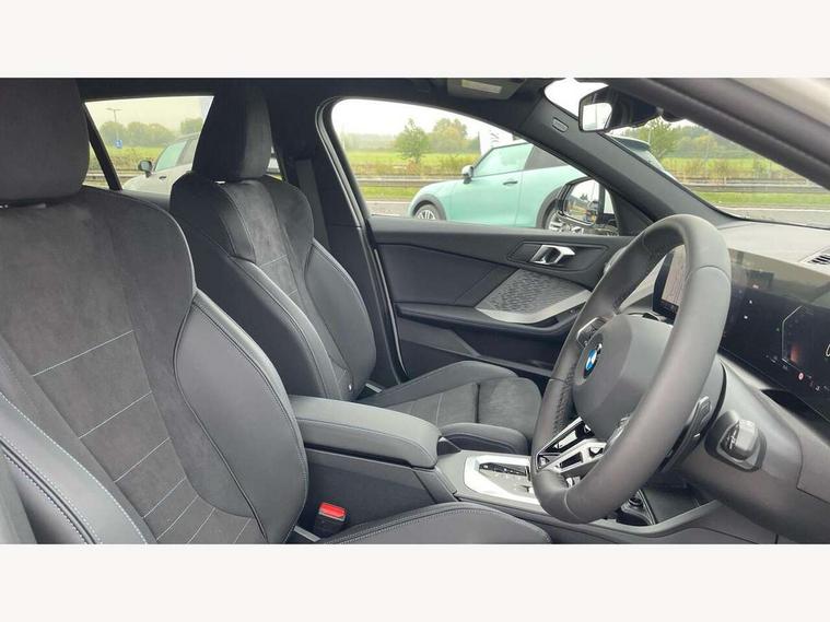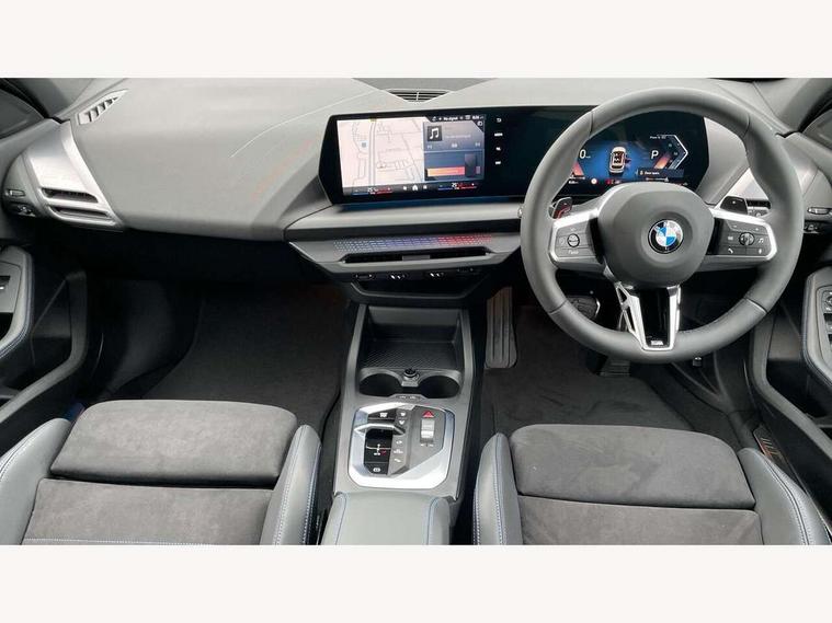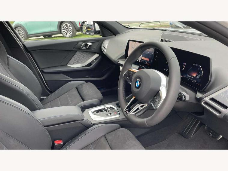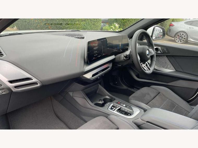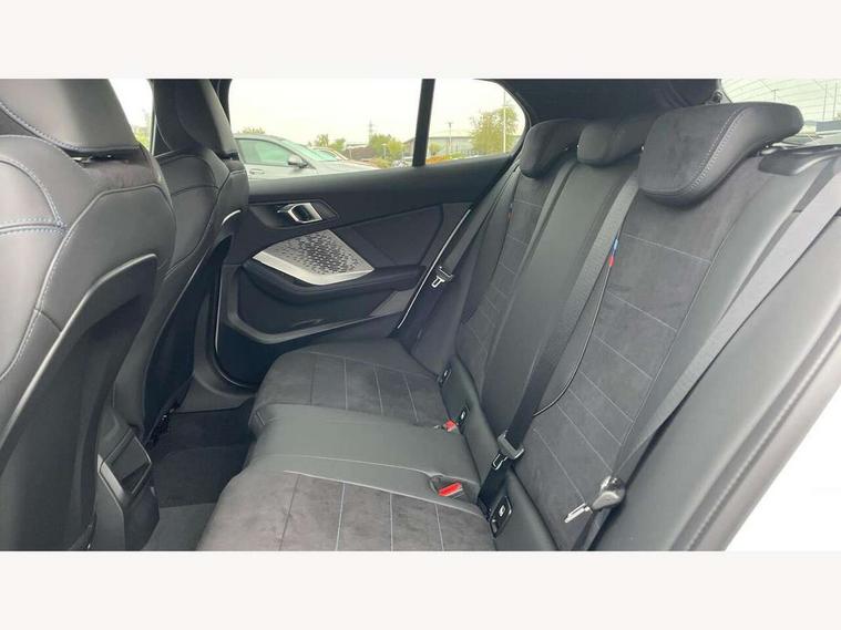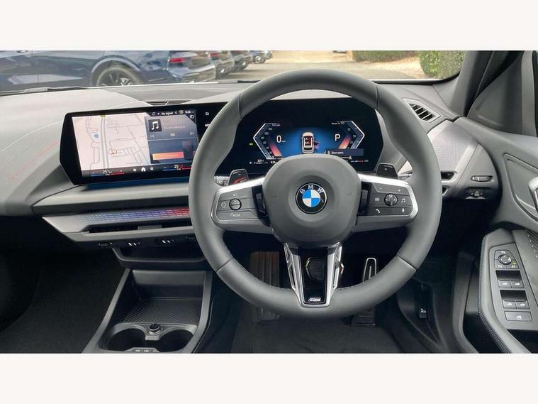Active guard plus, Attentiveness assist, Bluetooth / WiFi interface for wireless connection of mobile terminal devices and audio streaming, BMW ConnectedDrive online services, BMW Live cockpit plus, BMW Teleservices, Check Control warning system for monitoring of lights and door/luggage compartment open warning, Eco pro mode, Electric power steering with Servotronic steering optimised at all speed ranges, Evasion assistant, Flat airvents in instrument panel with adjustable slats, Front and rear parking sensors, Front axle single joint with specific axle kinematics to minimise drive influences on steering + provide increased rigidity agile driving behaviour, Gearshift time display in manual mode, Integrated owners handbook, Left turn warning with brake function, My modes (Personal / Efficient / Sport), Oil sensor for level and grade, On board computer, Optimum shift indicator, Park assist including reversing assistant, lateral parking aid and reversing assist camera, Personal e-SIM, Personal Profile, Pull away assistant, Rigidly mounted rear subframe - Multi link construction with separate spring / damper configuration and excellent driving characteristics, Speed limit Info including no-overtaking indicator, Speed limiter, 49 litre fuel tank, Aluminium lightweight construction, Anti roll bar front and rear, Balancer shaft, Double VANOS twin scroll turbocharging system, Drive Performance Control, Electronic differential lock, Electronic selector lever, High precision injection, M Adaptive suspension, Petrol Particulate Filter, Steptronic transmission with double clutch, Twin tube gas filled shock absorbers with degressive characteristic curve, VALVETRONIC engine management, DAB Digital radio, Auto dimming rear view mirror, Automatic windscreen wipers and automatic headlight, Body colour door handles, Body colour roof trims, Chrome 'M' logo side designation, Chrome exhaust twin tailpipes round 90mm in left, Chrome kidney grille frame with Satin Aluminium struts, Direction indicator side lights in exterior mirrors, Electrically adjustable exterior mirror with mirror adjustment switch on drivers armrest and aspheric on driver side, convex on passenger side, Exterior M sport design elements, Fading support, Folding side mirrors with auto dimming/folding wing mirrors with auto dimming, Follow me home headlights, Front and rear bumper system with replaceable deformation elements, Front and rear electric windows with open and close fingertip control, anti trap facility and comfort closing, Front bumper panel with M specific design in vehicle colour with inserts in black high gloss, Front door sill finishers in black plastic with M designation in metallic look, Green tinted heat protection glazing, Heated rear window, High gloss black exterior mirrors, High gloss shadowline window frame, Recess cover mirror frames and B/C pillar embelisher trim, High level third brake light, Integrated front windscreen with washer jets, LED daytime running lights, LED eyebrow turn indicators, LED front fog lights, LED Headlights, Lightweight engineering, Matt black air guide grilles, Matt black wheel arch trim, Model badge on tailgate right, Nearside reverse light in rear light cluster, Preparation for high beam assistant, Rain sensor, Rear bumper panel with M-specific design in vehicle colour with inserts in black high gloss, Rear fog lights, Rear side wing doors, Rear window wiper, Shark fin antenna, Side sill covers with M specific design in body colour, Trailer stabilisation logic, Visible VIN plate, Welcome lighting, 12V power socket in front centre console with blanking plug, 3 rear seat head restraints, 3 seat bench in 2nd row, 3 spoke sports leather steering wheel with black leather and stitching, pearl chrome decorative finish, specific M Badge, Anthracite front and rear floor mats, Anthracite headlining, Black boot net with lashing eyes, Cargo function on 2nd seat row, Child seat ISOFIX attachment for two outer rear seats and front passenger seat with anchorage points, Conditioned based service, Driver and front passenger backrest net on rear, Driver and front passenger seat heating, Driver side folding compartment in instrument panel, Folding rear clothes hook, Footrest and pedals in black plastic, Four grab handles integrated in roof lining, Front and rear door pockets with bottle holders, Front and rear side armrest integrated into door trim, Front armrest with storage compartment, Gearshift paddles on steering wheel, Glove compartment, Height adjustable front head restraints, Luggage compartment for bag hooks on left and right, foldable luggage compartment liner and four lashing eyelets, Manual adjust steering wheel, Multi-function controls for steering wheel, Rear seat backrest with manual 60:40 split folding with 3 top tether clips integrated on rear of seat panels, Single front passenger seat, Storage compartment in centre console, Storage compartment in luggage compartment, Stowage of the parcel shelf in luggage compartment trim, Sun visors with vanity mirrors and insert tab, Two front centre console cupholders, Type C two USB ports in rear centre console, Upper retaining strap integrated into backrest rear panels, Connected pack professional - 1 Series, Interior lights pack - 1 Series, M Sport exterior styling aerodynamics pack - 1 Series, 2 tone horn, 3 point seatbelts on all seats, front pyrotechnic belt tensioners, stopper and belt force limiters, rear coded belt buckles, Airbags - Front driver/passenger, front and rear curtain head protection, front side, manual deactivation of front passenger airbag, Anti lock braking system (ABS) with brake assist, BMW emergency call, Brake drying, Braking readiness, Child proof locking system in rear door, Comfort modes, Cornering brake control, Crash sensor activating of airbags, Unlocking doors, hazard warning lights, interior light, safety battery terminal, Driver and front passenger seat belt security check, Dynamic stability control + (DSC+), Dynamic