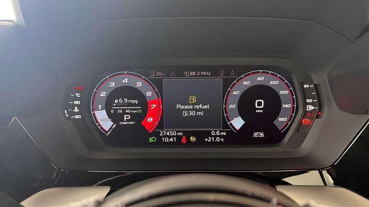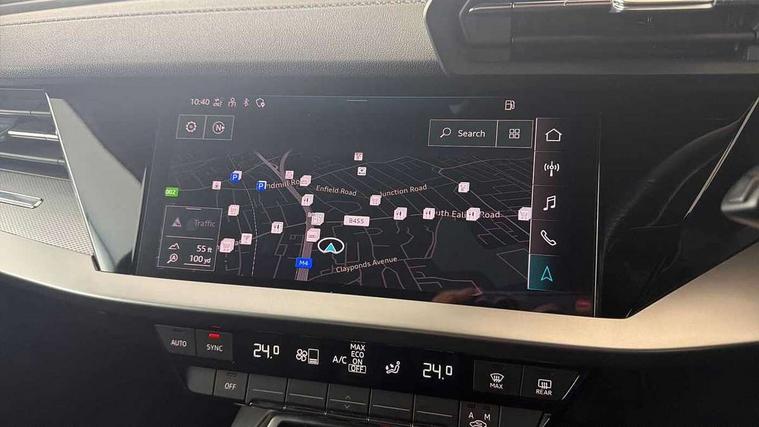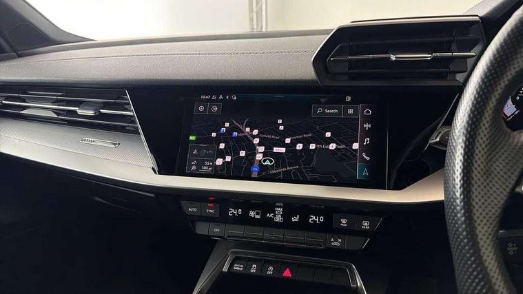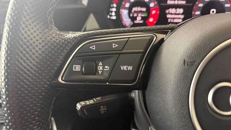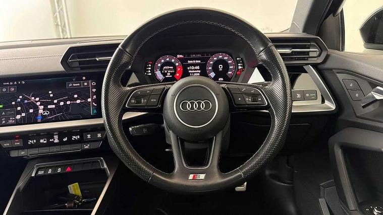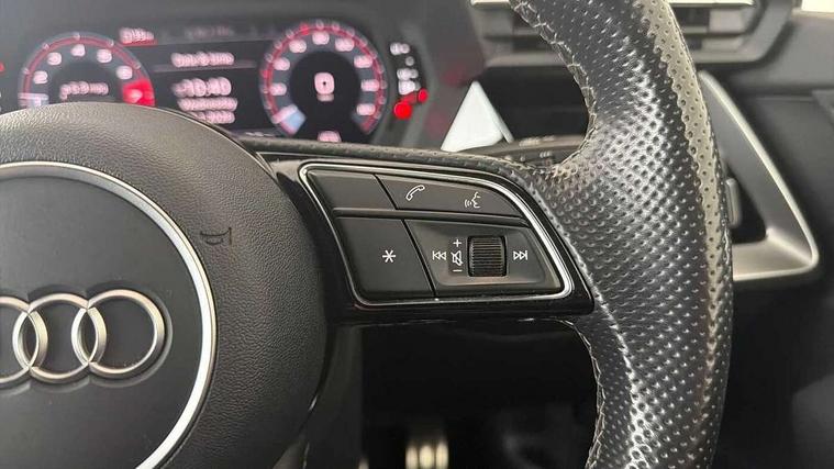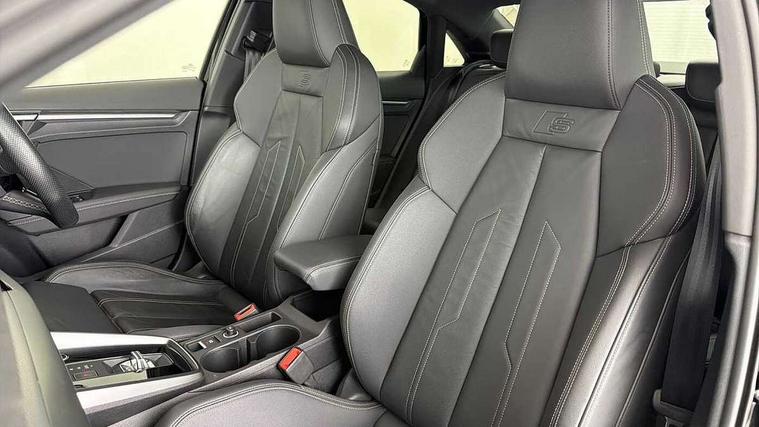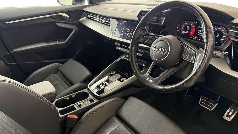 Audi connect emergency call and service, Audi drive select (Auto, Comfort, Dynamic, Efficiency and Individual), Audi smartphone interface, Audi Virtual Cockpit - 10.25" digital and colour instrument cluster, Automatic start/stop system with recuperation, Bluetooth interface, Collision avoidance assistant, Electromechanical power speed sensitive steering, Lane departure warning system, MMI Navigation Plus with high resolution 10.1" colour touch screen display, Service indicator, Voice control system with natural language interaction, 2x USB Type C ports (for charging and data transfer), 6 passive loudspeakers, CD player, DAB Digital radio, 3rd brake light, Acoustic glass windscreen, Aluminium window trim, Auto dimming frameless rear view mirror, Electrically adjustable/heated/folding/dimming door mirrors with kerb view includes integrated LED indications + kerb view function for passenger side, Front electric windows, Illuminated door sills with aluminium inserts at the front with S logo, LED daytime running lights, LED headlights with LED rear lights and dynamic rear indicators, Light and rain sensors, Model and engine designation badges at rear, Privacy glass - dark tinted rear window, rear door and side windows, Rear electric windows, S line bumpers, S roof spoiler, 12V socket and storage compartment in front centre console, 40/20/40 split folding rear seat bench with cupholder, Black cloth headlining, Dual zone electronic climate control, Front and rear centre armrest in leather, Front and rear headrests, Front/rear floor mats, Height and reach adjustable steering wheel, Interior lighting - glove compartment light and right hand side, Luggage compartment floor covering, Manual boot compartment lid, Manually adjustable front sport seats, Seat side bolsters, Stainless steel pedals and front footrest, Twin leather upholstery with front sports seats S embossed logo, Aluminium interior elements pack - A3 Saloon, S line styling pack - A3 Saloon, 3x3 point rear seat belts, Driver and front passenger airbag with passenger airbag deactivation, Electronic Stabilisation Control (ESC) including ABS, ASR and EDL, First aid kit with warning triangle and 2 safety vests, Front side airbags with head airbags and interaction airbag, Hill hold assist, Pre-sense front with pedestrian and cyclist detection, Seatbelt monitoring, Tyre pressure loss indicator, Anti theft alarm, Anti-theft wheel bolts, Electronically operated child lock, Immobiliser, Remote control central locking, Aluminium air vent surrounds, Aluminium trim elements, Dark spectrum aluminium inlays, accent surfaces in the dashboard and centre console in platinum grey silk effect paint finish,