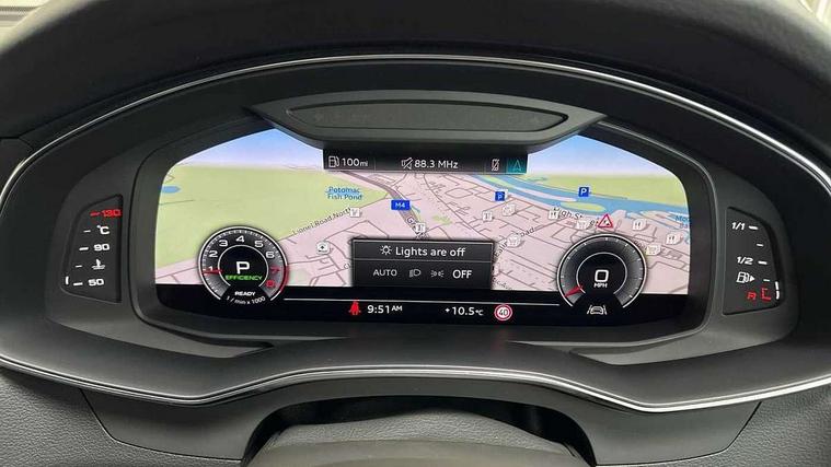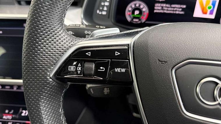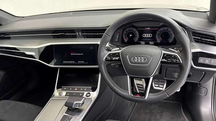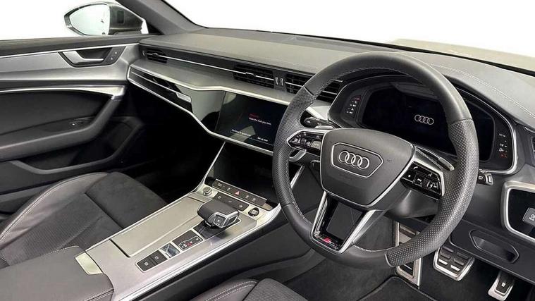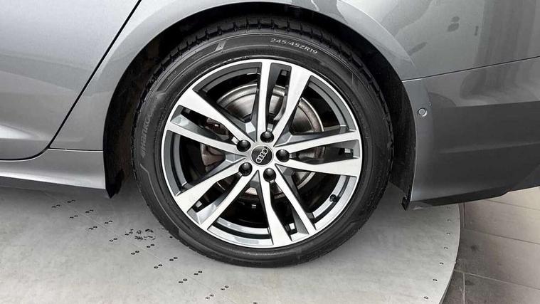 Audi connect safety and service (e-call), Audi connect with Amazon Alexa Integration, Audi drive select, Audi parking system plus - acoustic and visual park assist system for front and rear, Audi virtual cockpit, Automatic start/stop system with coasting functionality, Bluetooth interface, Camera based traffic sign recognition, Lane departure warning system, MMI navigation plus with 10.1" and 8.6" touch screens, Power operated tailgate, Progressive steering, Rear view camera, Service interval indicator, Smartphone interface includes wireless Apple carplay/Android Auto, Voice control system, Sports suspension, Audi front music interface, Audi sound system, Auxiliary input socket, DAB Digital radio, USB connection, Aluminium roof rails, Body colour rear roof spoiler, Body coloured door mirrors, Electric front/rear windows, Electrically adjustable heated and folding + automatically dimming exterior mirrors with memory function, Frameless auto dimming interior rear view mirror, Front intermittent wipers, Heat insulating darkened glass in side and rear windows, Heat insulating glass in windshield, LED rear lights with dynamic indicators, LED signature front daytime running light, LED third brake light, Matrix LED headlights, Matt black rear diffuser with diffuser strip and tailpipes in chrome, Matt black side air intake grille with inlay in matt aluminium, Privacy glass, Radiator grille in anthracite black matt, single frame in chrome and horizontal struts in matt aluminium silver, Rain and light sensors, Rear side wing doors, Rear wiper, 2 zone deluxe electronic climate control, 3 spoke high multi-function perforated leather steering wheel with contrast stitching and shift paddles, 40/20/40 split folding 3 rear seat bench in 3 parts with rear centre armrest, Audi phone box light, Black cloth headlining, Electrically adjustable front seats including seat height, fore/aft position, backrest angle and 4-way lumbar with memory for driver's seat, Front and rear floor mats, Front centre armrest, Front head restraints, Heated front seats, Height/reach adjust steering wheel, Illuminated door sill trims with S logo, Illuminated sun visors with vanity mirrors, Leather gear knob, Luggage compartment system, Rear headrests, Single front passenger seat, Stainless steel pedals and foot rest, Tool kit and car jack, LED Interior Ambient Lighting Pack - A6, Non smoking pack - A6, S line exterior style pack - A6, 3 point seatbelts on all seats, Airbags - Front side, front and rear including head, Audi pre-sense front, EBD - Electronic brakeforce distribution, Electromechanical parking brake, Electronic Stability Control (ESC) including ABS, ASR and EDL, Extended pedestrian protection measures, ISOFIX child seat mounting for front passenger seat and ISOFIX child seat mounting with Top Tether for outer rear seats, Manual child proof rear door locks, Seatbelt monitoring, Tyre pressure warning light, Warning triangle and first aid kit, Anti theft alarm with tow away protection, Anti-theft wheel bolts and wheel loosening detection, Immobiliser, Keyless Go, Remote central locking, Matt brushed aluminium inlays,