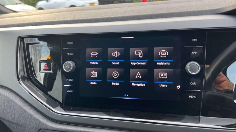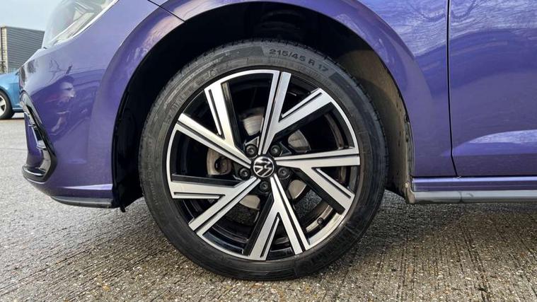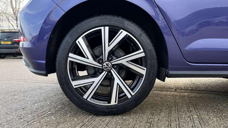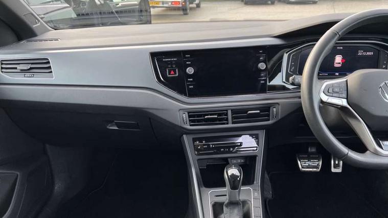 Adaptive cruise control with follow-to-stop and speed limiter, Bluetooth mobile phone interface, Digital Cockpit Pro with 10.25" Display, Driver alert system, Dynamic road sign display, Emergency call service, Power assisted speed sensitive steering, Preparation for We connect and We connect plus, Speedo and rev counter, electronic odometer, trip, service interval display and fuel gauge, Standard rear axle, Travel Assist - Lane keeping system and traffic jam assist, Travel assist including emergency assist, Trip computer, Warning signal and warning light for front and rear seatbelts not fastened, Washer fluid level indicator, Wireless app connect, Front wheel drive, Rear shock absorpion, Start-stop system with battery regeneration (recuperation - energy recovery during braking), DAB Digital radio, Diversity antenna for FM reception, Front and rear 6 speakers, Body colour bumpers, Body colour door handles, Body colour door mirrors, Electric front windows, Front scuff plates with R-Line logo, Heat insulating darkened glass in side and rear windows, Heat insulating glass windscreen, Power folding adjustable/heated exterior mirrors and front passenger exterior mirror lowering function, Rear electric windows, Rear fog light, Rear side wing doors, Rear tinted glass from B-pillar backwards approx 65% tinted, Rear windscreen washer and wiper with interval delay, Third brake light, 12V power socket in centre console, 2 USB-C ports in the front, 2 USB-C charging sockets on the center console in the rear, 3 rear head restraints, 60/40 split folding rear seat and rear seat bench not split, Air care climatronic air conditoning system with active combination filter and 2-zone temperature control, Black roof lining, Chrome plated radiator grille inserts, air vent surrounds and light switch surrounds, Door and side trim panel, Driver and front passenger seat height adjustment, Driver/passenger sunvisors with illuminated vanity mirrors, Front + rear carpet mats in recycled material, Front centre armrest, Front footwell illumination, Front seat backrest storage pockets, Front sports comfort seats, Handbrake lever handle in leather, Headliner in recycled material, Isofix child seat preparation easy-fit (for two outer rear seats, and front passenger seat) compatible with I-size, Karoso artvelours cloth upholstery, Leather trimmed gear knob, LED interior light with switch off delay and dimmer, 2 reading lights front and rear, Luggage compartment cover, Luggage compartment floor, Luggage compartment lighting, Lumbar adjustment for front seats, Single front passenger seat, Stainless steel pedals, Standard pedal cluster, Three spoke leather wrapped multifunction steering wheel with shifting paddles, Light and sight pack - Polo R-Line/Black Edition, 3 point height adj front seatbelts + pretensioners, 3x3 point rear seatbelts, ABS, Driver and front passenger airbag with front passenger airbag deactivation, Drivers and front passengers safety optimised head restraints, ESC (Electronic stability control) + EDL (Electronic Differntial lock) and ASR (Traction control), Extended and predictive pedestrian/ cyclist protection, Front curtain and side airbags with center airbag, Hill hold control, Manual child lock in rear doors, Single tone horn, Tyre pressure loss indicator, Alarm with interior protection, Anti-theft alarm system with interior monitoring, backup horn, and towing protection, Anti-theft wheel bolts, Electronic engine immobiliser, Chrome applications on rotary light, mirror adjustment, window regulator switches, outlet with frame in black, Dark grey anodised matt decorative inserts in dash and front door panels, Low rolling resistance tyres,