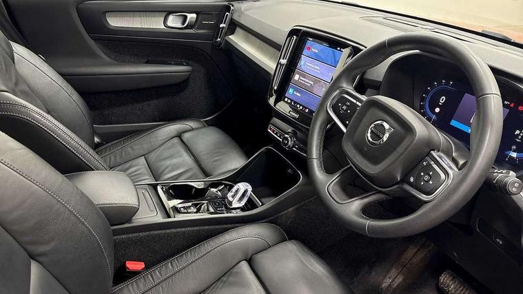 12.3" Progressive Driver Display, 360 degree surround view parking camera with side proximity sensors, 9" centre console portrait touch screen, Adjustable steering wheel force, Bluetooth hands free telephone kit, E-call, Front park assist, Google automatic services - Nav with google maps, apple carplay/android auto, voice recognition with google assistant, Hands free power tailgate, Lane keep assist with driver alert control, Oncoming Lane Mitigation, Rear park assist, Speed limiter, Speed sensitive steering, Wireless/Inductive Mobile Phone Charging, Dynamic chassis, DAB Digital radio, Premium Sound by Harman Kardon, Dolby Pro Logic II Surround Sound, Dirac Unison, 12 speakers/600W and subwoofer, Steering wheel mounted remote controls, Active bending pixel LED headlights with adaptive shadow technology, Active high beam incorporating daytime running lights, Adaptive brake lights with high level LED brake lights, Auto dimming interior mirror, Automatic headlamp levelling, Dark tinted windows for rear door side windows and cargo compartment, Front aluminium tread plates, Front and rear electric windows, Headlight cleaning system, High gloss black front and rear skid plate, High gloss black mesh front grille with high gloss black surround, High gloss black window trim, Home safe and approach lighting, Integrated roof rails in high gloss black, LED front fog lights, Power glass tilt and slide panoramic sunroof with sun curtain, Puddle lights, Rain sensor with automatic windscreen wiper activation, Rear side wing doors, Rear wiper, Roof antenna, Roof spoiler, Visible VIN plate, 12V socket in front tunnel console and luggage compartment, 2-Zone electronic climate control with CleanZone air quality system and pollen filter, 3 seat bench in 2nd row, 3 Spoke tailored steering wheel with chrome trim, 60/40 versatile split folding rear seat, A-pillar parking ticket holder, Ambient front door and instrumental panel lighting, Centre console cupholders and storage, Flexible load floor and grocery bag holder, Floor mats, Front door pocket and front cupholder illumination, Front footwell illumination, Front headrests, Front reading light and theatre lighting, Front seat cushion extensions, Front tunnel pocket, Glovebox bag hook, Heated front seats, Height adjustable passenger seat, Height/reach adjustable steering column, High gloss centre tunnel deco, Illuminated glovebox, Illuminated luggage compartment, Illuminated tailgate, Illuminated vanity mirrors, Integrated waste bin, Isofix attachments on outer rear seats, Load protection net, Multi directional lumbar support, Power driver seat with memory + exterior mirrors memory, Power folding rear headrests, Power passenger seat, Rear armrest / integral cup holders / storage tray, Rear reading and courtesy lights, Single front passenger seat, Underfloor cargo storage, Climate pack without heated front seats - XC40, Driver assist pack - XC40, 3x3 point rear seatbelts, City safety with steering support with Pedestrian + cyclist + front collision warning with full auto brake and rear auto brake, Drivers knee airbag, Dual stage driver/passenger airbags, Electronic parking brake with auto hold, First aid kit, Front and outer rear seatbelt reminder and pretensioners, Front seats SIPS airbags, Hill descent control, Hill start assist, Inflatable curtain, Passenger airbag cut-off device, Power child locks on rear doors, Road sign information display, Run off Road Mitigation, Run off Road Protection, SIPS (Side Impact Protection System), Slippery road and hazard light alert, Stability and Traction Control with Spin control, Engine Drag Control and Corner Traction Control, Tyre pressure monitoring system, Vehicle deceleration control with Anti-lock Brake System, Electronic Brake Distribution and Emergency Brake Assist, Warning triangle, WHIPS whiplash protection system - front, Anti-theft alarm including immobiliser/volume sensor + level sensor, Key integrated remote control central locking + fuel flap with deadlocking system and auto open/close power windows, Keyless drive includes keyless entry and keyless start, Locking wheel nuts,