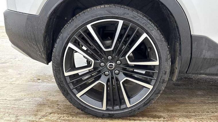 12.3" Progressive Driver Display, 360 degree surround view parking camera with side proximity sensors, 9" centre console portrait touch screen, Adjustable steering wheel force, Android auto (Wired), Apple carplay (wired), Bluetooth handsfree system, Driver alert control, Driver assistance (pilot assist and adaptive cruise control), Driver awareness - Blind spot information system with steer assist, cross traffic alert with autobrake and rear collision warning and mitigation, E-call, Front park assist, Google automotive services - Enabled entertainment apps, navigation with google maps, voice recognition with google assistant, Hands free power tailgate, Intelligent speed assistance, Lane keeping aid, Oncoming Lane Mitigation, Rear park assist, Speed sensitive steering, Volvo cars services with app - Driving journal, emergency and breakdown call, engine remote start, remote door locking/unlocking and vehicle dashboard, Wireless/Inductive Mobile Phone Charging, Automatic transmission with start/stop and manual change functions, Dynamic chassis, DAB Digital radio, Premium Sound by Harman Kardon, Dolby Pro Logic II Surround Sound, Dirac Unison, 12 speakers/600W and subwoofer, Steering wheel mounted remote controls, Active bending pixel LED headlights with adaptive shadow technology, Active high beam incorporating daytime running lights, Adaptive brake lights with high level LED brake lights, Auto dimming feature for exterior door mirrors, Auto dimming interior mirror, Automatic headlamp levelling, Dark tinted windows - rear side windows and rear screen, Front aluminium tread plates, Front and rear electric windows, Headlight cleaning system, High gloss black front and rear skid plate, High gloss black front bumper deco, High gloss black mesh front grille with high gloss black surround, High gloss black window trim, Home safe and approach lighting, Integrated roof rails in high gloss black, LED front fog lights with cornering function, Power glass tilt and slide panoramic sunroof with sun curtain, Puddle lights, Rain sensor with automatic windscreen wiper activation, Rear side wing doors, Rear wiper, Roof antenna, Roof spoiler, Visible VIN plate, 12V socket in front tunnel console and luggage compartment, 2-Zone electronic climate control with CleanZone air quality system and pollen filter, 3 seat bench in 2nd row, 3 Spoke tailored steering wheel with chrome trim, 60/40 versatile split folding rear seat, Centre console cupholders and storage, Flexible load floor and grocery bag holder, Floor mats, Front cabin courtesy lights, Front door pocket, front cupholder, ambient front door, rear reading, rear courtesy, instrument panel and tailgate lighting, Front footwell illumination, Front headrests, Front reading lights, Front seat cushion extensions, Front side step illumination (under door), Glovebox bag hook, Heated front seats, Height/reach adjustable steering column, High gloss centre tunnel deco, Illuminated glovebox, Illuminated luggage compartment, Illuminated vanity mirrors + ticket holder, Integrated waste bin, Isofix attachments on outer rear seats, Load cover, Load protection net, Multi directional lumbar support for driver and passenger seat, Power driver seat with memory + exterior mirrors memory, Power folding rear headrests, Power passenger seat, Rear armrest with cupholders, Single front passenger seat, Underfloor cargo storage, Climate pack without heated front seats - XC40, 3x3 point rear seatbelts, City safety with steering support with Pedestrian + cyclist + front collision warning with full auto brake and rear auto brake, Driver and passenger airbags, Drivers knee airbag, Electronic parking brake with auto hold, First aid kit, Front and outer rear seatbelt reminder and pretensioners, Front seats SIPS airbags, Hill descent control, Hill start assist, Inflatable curtain, Passenger airbag cut-off device, Power child locks on rear doors, Road sign information display, Run off Road Protection, SIPS (Side Impact Protection System), Slippery road and hazard light alert, Stability and Traction Control with Spin control, Engine Drag Control and Corner Traction Control, Tyre pressure monitoring system, Vehicle deceleration control with Anti-lock Brake System, Electronic Brake Distribution and Emergency Brake Assist, Warning triangle, WHIPS whiplash protection system - front, 2 x Key integrated remote control central locking including with deadlocking system and auto open/close windows and sunroof, Anti-theft alarm including immobiliser/volume sensor + level sensor, Keyless drive includes keyless entry and keyless start, Locking wheel nuts,