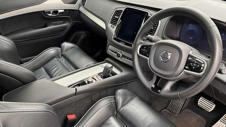 12.3" Active TFT crystal driver's instrument display, 9" centre console portrait touch screen, Adjustable steering wheel force, Bluetooth hands free telephone connection, Drive mode settings, Driver alert control with lane keeping aid, Driver assistance (pilot assist and adaptive cruise control), Driver awareness - Blind spot information system with steer assist, cross traffic alert with autobrake and rear collision warning and mitigation, Emergency call service, Front and rear park assist, Handsfree power tailgate opening and closing, Oncoming Lane Mitigation, Sensus navigation with European mapping and traffic information, Service interval indicator, Speed limiter, Speed sensitive steering, Trip computer, Voice activated control for key functions, Volvo on call, 7m Charge Cable with 3 Pin Plug, 7m Type 2/mode 3 charge cable, 8 speed automatic transmission with start/stop + manual change functions, All wheel drive system, Electric rear axle drive, Lithium-ion battery, Recharging port located in nearside front wing, Touring chassis, DAB Radio (Digital Audio Broadcasting), Steering wheel remote infotainment controls, Adaptive brake lights with high level LED brake lights, Auto dimming interior + exterior mirrors, Automatic headlight levelling system, Automatic LED Headlights + Active high beam incorporating daytime running lights, Body colour bumpers, Dark tinted windows for rear side windows and cargo area, Dual integrated exhaust pipes with high gloss black surround, Electric folding and heated door mirrors, Front and rear power windows, Heated washer nozzles, High gloss black Deco lower front bumper, High gloss black door mirrors, High gloss black lower rear valance, High gloss black mesh front grille with surround, High gloss black window surround, Home safe and approach lighting, Integrated roof rails in high gloss black, Puddle lights, Rain sensor with automatic windscreen wiper activation, Rear side wing doors, Rear wash/wipe with intermittent wipe setting, Roof antenna, Roof spoiler, Visible VIN plate, 12V socket front tunnel console, rear passenger compartment and cargo area, 2 seat bench in 3rd row, 3 seat bench in 2nd row, 4 Zone electronic climate control + cooled glovebox, A-pillar parking ticket holder, Ambient door and instrument panel lighting, B Pillar ventilation, Bright metal luggage threshold, Cargo divider with grocery bag holder, Centre console cupholders and storage, Charcoal headlining, Driver's side lower dashboard storage compartment, Front and rear door pocket and front cupholder illumination, Front footwell and side step illumination, Front headrests, Front seat cushion extensions, Heated front seats, Height/reach adjustable steering column, Illuminated luggage compartment, Illuminated tailgate, Illuminated vanity mirrors + ticket holder, Illumination lockable glovebox compartment, Integrated sun curtains in rear doors, Load protection net, Lower dashboard, tunnel console, Lower door panel in blond, Multicolour theatre lighting, Outboard armrest with cupholder and storage for third row passengers, Power driver seat with multi directional lumbar support and memory for seat and exterior mirrors, Power folding 2nd row headrests, Power passenger seat with multi directional lumbar support and memory, Rear footwell and side step illumination, Rear headrests, Recharge aluminium tread plates, Semi automatic load cover, Single front passenger seat, Sports floor mats, Sports leather gear knob, Sports pedals, Underfloor cargo storage, 7 three point seatbelts, City safety includes pedestrian, cyclist and large animal detection and front collision warning with full auto brake, Drivers knee airbag, Dual stage driver/passenger airbags, First aid kit, Front seats SIPS airbags, Hill descent control, Hill start assist, IC (Inflatable Curtains) - Full Length, Passenger airbag cut-off switch, Power parking brake with auto hold function, Road sign information display, Run off Road Mitigation, Run off Road Protection, Seatbelt reminder and pretensioners for all seats, SIPS (Side Impact Protection System), Slippery road and hazard light alert, Stability and Traction Control with Spin control, Engine Drag Control and Corner Traction Control, Tyre pressure monitoring system, Vehicle deceleration control with Anti-lock Brake System, Electronic Brake Distribution and Emergency Brake Assist, Warning triangle, WHIPS whiplash protection system - front, Anti-theft alarm including immobiliser/volume sensor + level sensor, Care key with user defined top speed, Key integrated remote control central locking + fuel flap with deadlocking system and auto open/close power windows, Keyless drive (includes keyless entry and keyless start) with remote tag, Locking wheel nuts, Private locking for glovebox and tailgate, Metal mesh inlays, Tailored Instrument Panel and Door Tops with Contrast Stitching, Tyre sealant kit + 12v compressor,