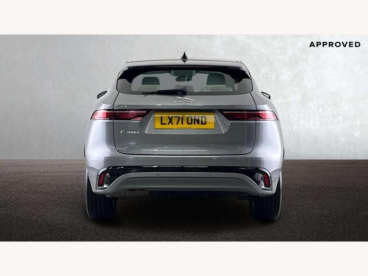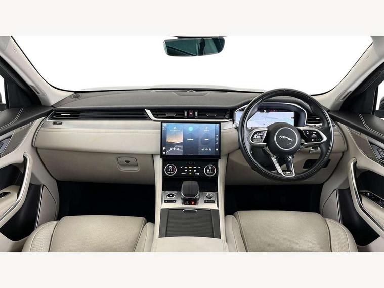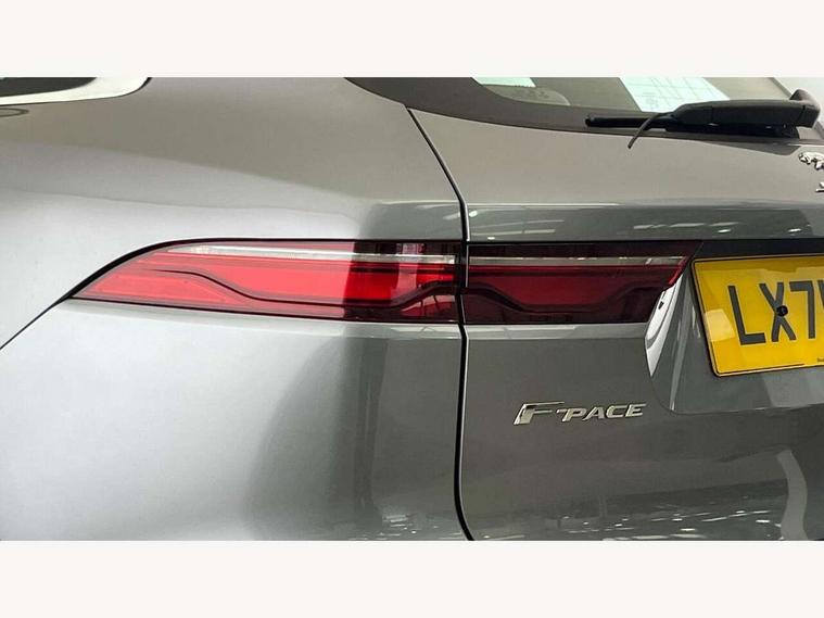 11.4" touchscreen, Android Auto, Apple car play, Blind spot assist, Bluetooth connectivity, Clear exit monitor, Driver alert system, Driver condition monitor, Eco driving style assistant, Electric power assisted steering, InControl remote, Interactive Driver display instrument cluster, Jaguar Toggle shift selector, Lane departure warning system, Lane keep assist, Outside temperature gauge, Personalisation profile management, Pivi pro connected navigation system with app interface and media storage, Pro services and wifi hotspot, Push button starter, Rear traffic monitor, Service interval indicator, Speed proportional steering, Start up sequence with movement in dials and lighting, Traffic sign recognition with adaptive speed limiter, Trip computer, Voice control system, 8 speed automatic transmission, All terrain progress control, All Wheel Drive (AWD), Open differential with torque vectoring by braking, AM/FM radio, Bluetooth streaming, DAB Radio (Digital Audio Broadcasting), Dynamic volume control, InControl apps, InControl protect, iPod integration, 3 flash lane change indicators, Animated directional indicators, Approach Illumination, Auto dimming rear view mirror, Automatic headlights, Body colour door mirrors, Electric heated/power fold memory door mirrors with approach lights and auto dimming driver side, Electric windows with one touch open/close and anti trap, F-Pace badge, Green tinted glass, Heated front windscreen + heated washer jets, Heated rear window with timer, Illuminated metal tread plates with Jaguar script, Jaguar script and leaper, LED tail lights, Non acoustic front windscreen, R Dynamic badge on side door, Rain sensor windscreen wipers, Rear fog lights, Rear metal tread plates, Rear wiper, Trailer stability assist, Variable front intermittent wipers, 12V power point front, 3 rear headrests, Air distribution speed, Bright metal foot pedals, Centre armrest console, Centre console with side storage, Door sill tread plates, Electrically adjustable steering column, Fold flat front seats, Front centre armrest with storage compartment, Front door storage space, Glovebox finisher with jaguar script, Heated steering wheel, Hooks in loadspace, Illuminated glovebox, Interior front door handles with separate locking switches, ISOFIX on outer rear seats, Jaguar sense, Luggage tie downs in loadspace, Mist sensing, Multifunction steering wheel, Overhead lighting console, Overhead stowage for sunglasses, Passive front head restraints, Premium cabin lighting, Premium carpet mats, R-Dynamic branded leather steering wheel, Rear air vents, Rear armrest with twin cupholders, Rear centre headrest, Rear door storage space, Reversible boot floor, Satin chrome gearshift paddles, Shopping bag hook, Sunvisors with illuminated vanity mirrors, Twin front cupholders with cover, Online Pack with data plan - F-Pace, 355mm front brakes and 325mm rear brakes, 3x3 point rear seatbelts, ABS, All surface progress control (ASPC), Brake pad warning light, DSC - Dynamic Stability Control, Electric parking brake (EPB), Emergency brake assist, Front airbags with passenger seat occupant detector, Front and rear seatbelt reminder, Front side airbags, Full length side window curtain airbag, Hill launch assist, Power operated child locks, Torque vectoring brake, Traction control, Tyre pressure monitoring system, Immobiliser, Keyless entry, Keyless Start, Locking wheel nuts, Perimeter alarm, Remote central locking, Valet mode,